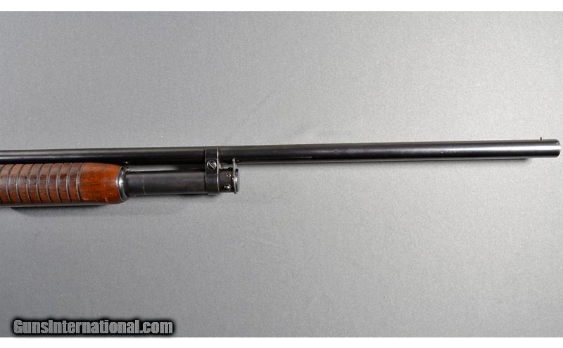 Description: The Model 1912 (shortened to Model 12 in 1919) was the next step from the Winchester Model 1897 hammer-fired shotgun, which in turn had evolved from the earlier Winchester Model 1893 shotgun. The Model 12 was designed by Winchester engineer T.C. Johnson, and was based in part on the M1893/97 design by John M. Browning, in that it used a sliding forearm or "pump action" to cycle the mechanism. It was initially available in 20 gauge only (12 and 16 gauge guns were not sold until late 1913). The Model 12 was a very successful internal hammer pump-action shotgun. 20 Gauge SOLD Metal Condition: "Very Good, Normal Wear Wood Condition: "Very Good, Normal Wear, No Cracks Bore Condition: "Very Good, Full Choke Barrels: 28 Weight: 6lbs Item Location: Lacey, WA |