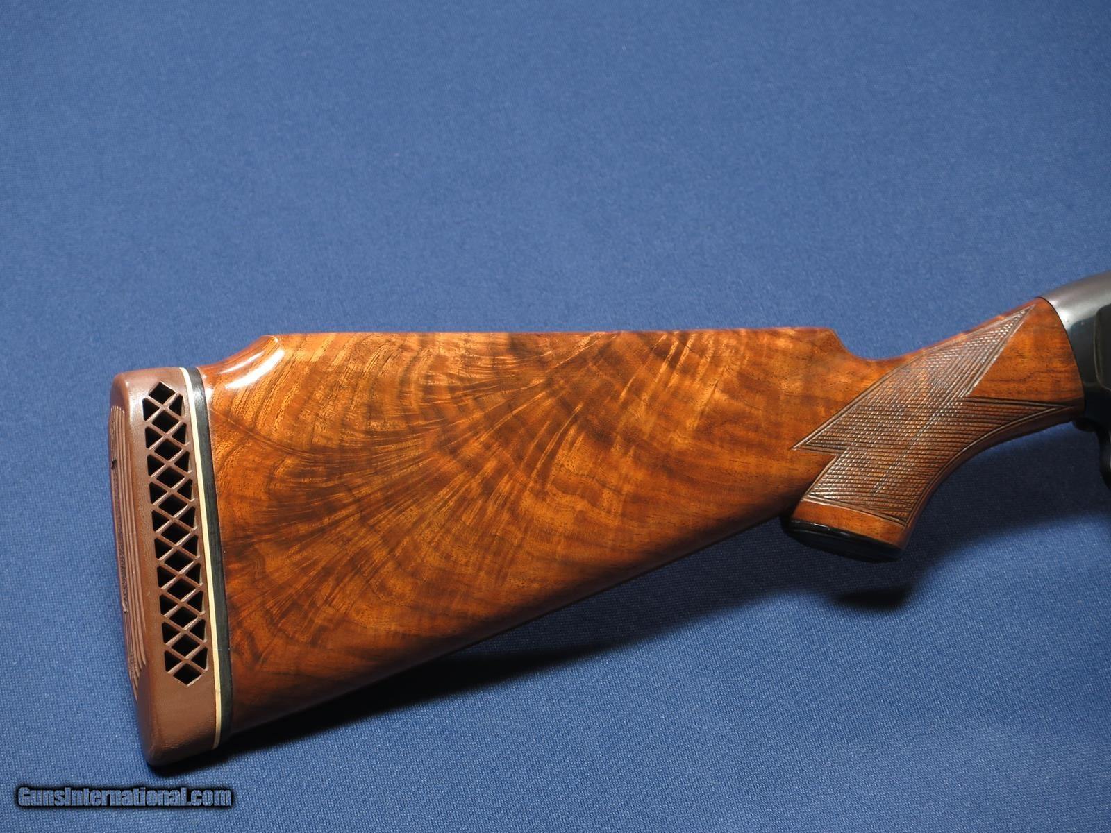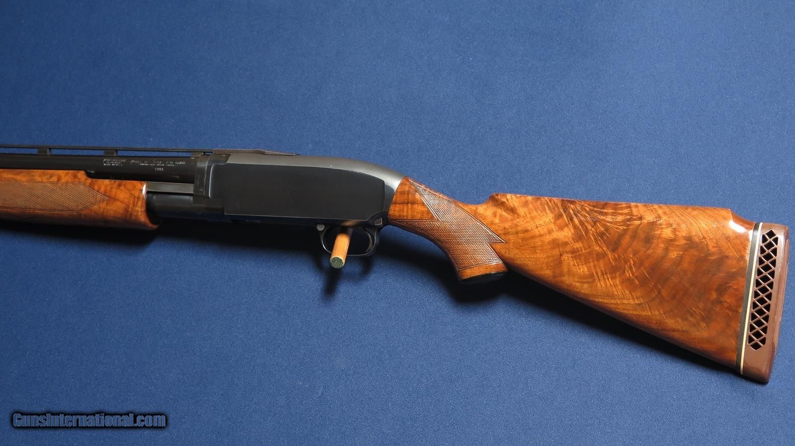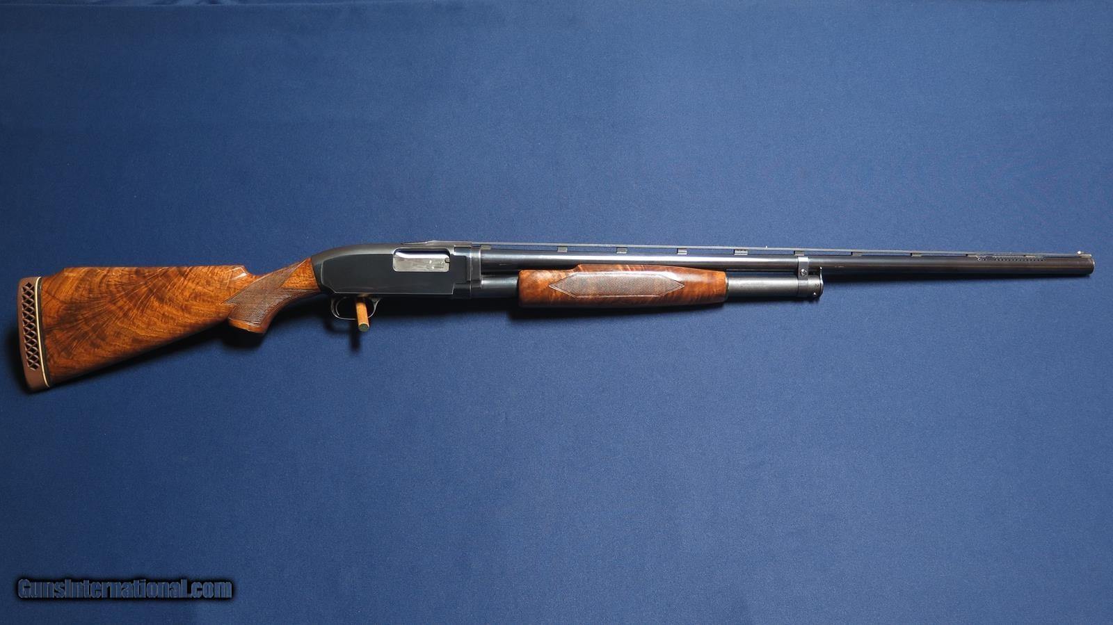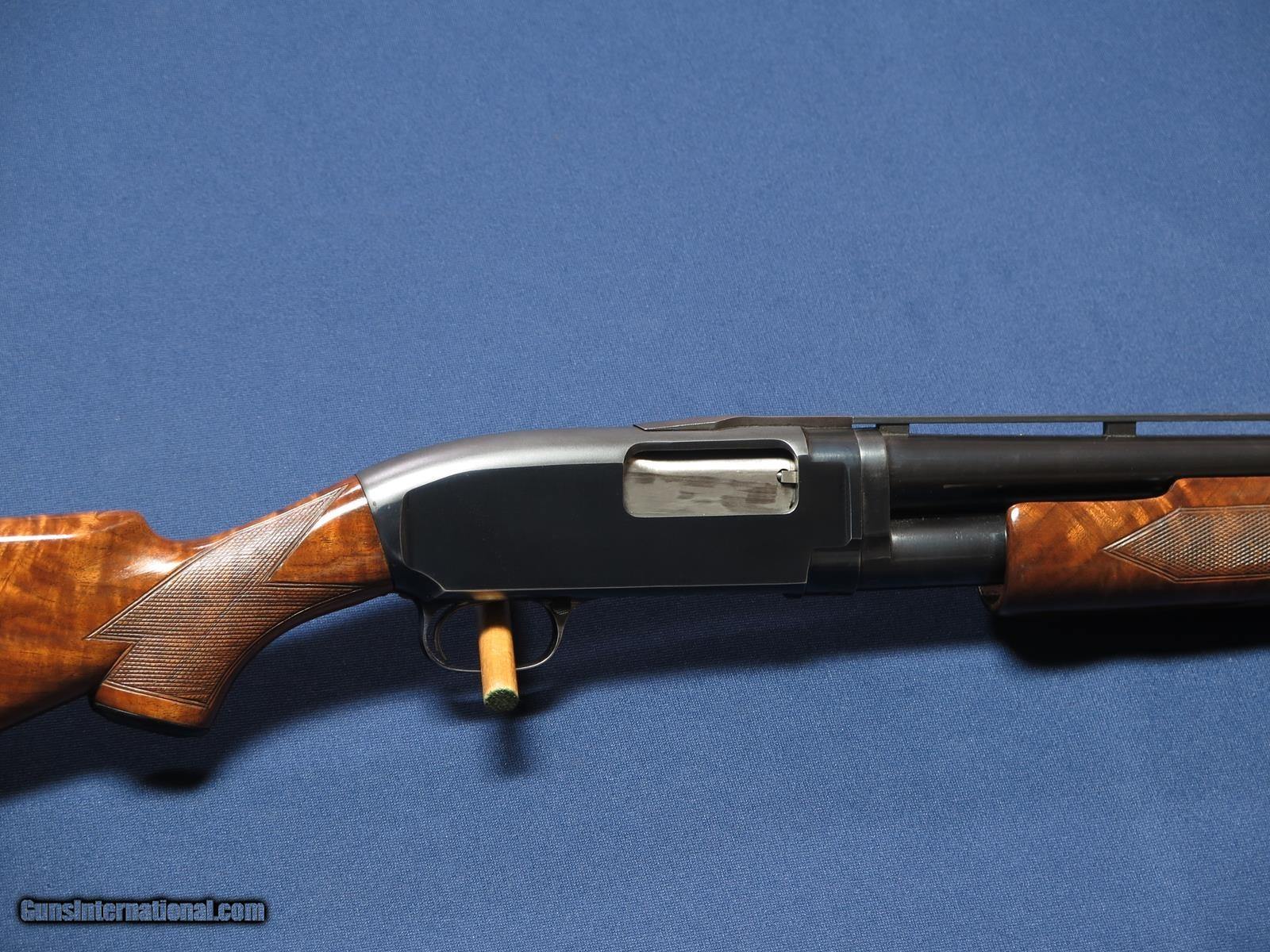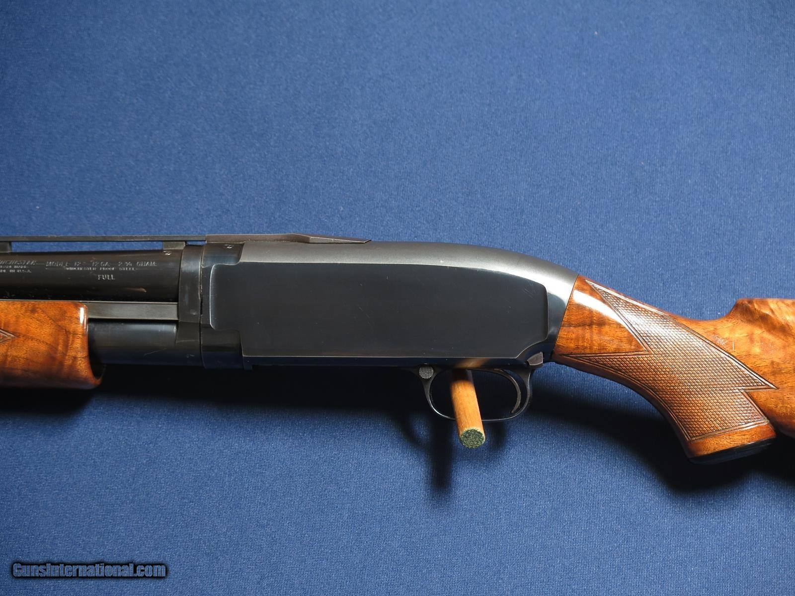 Description: Winchester 12 Trap 12ga. SN 1,968,66X. 30 inch factory duckbill 3 pin vent rib ported barrels. Full choke. 14 1/4 LOP Pachmayr recoil pad. Beautiful grain in wood. 96-97% condition. Excellent bore. SOLD Curio/Relic: Yes Shotgun Gauge: 12 Gauge |