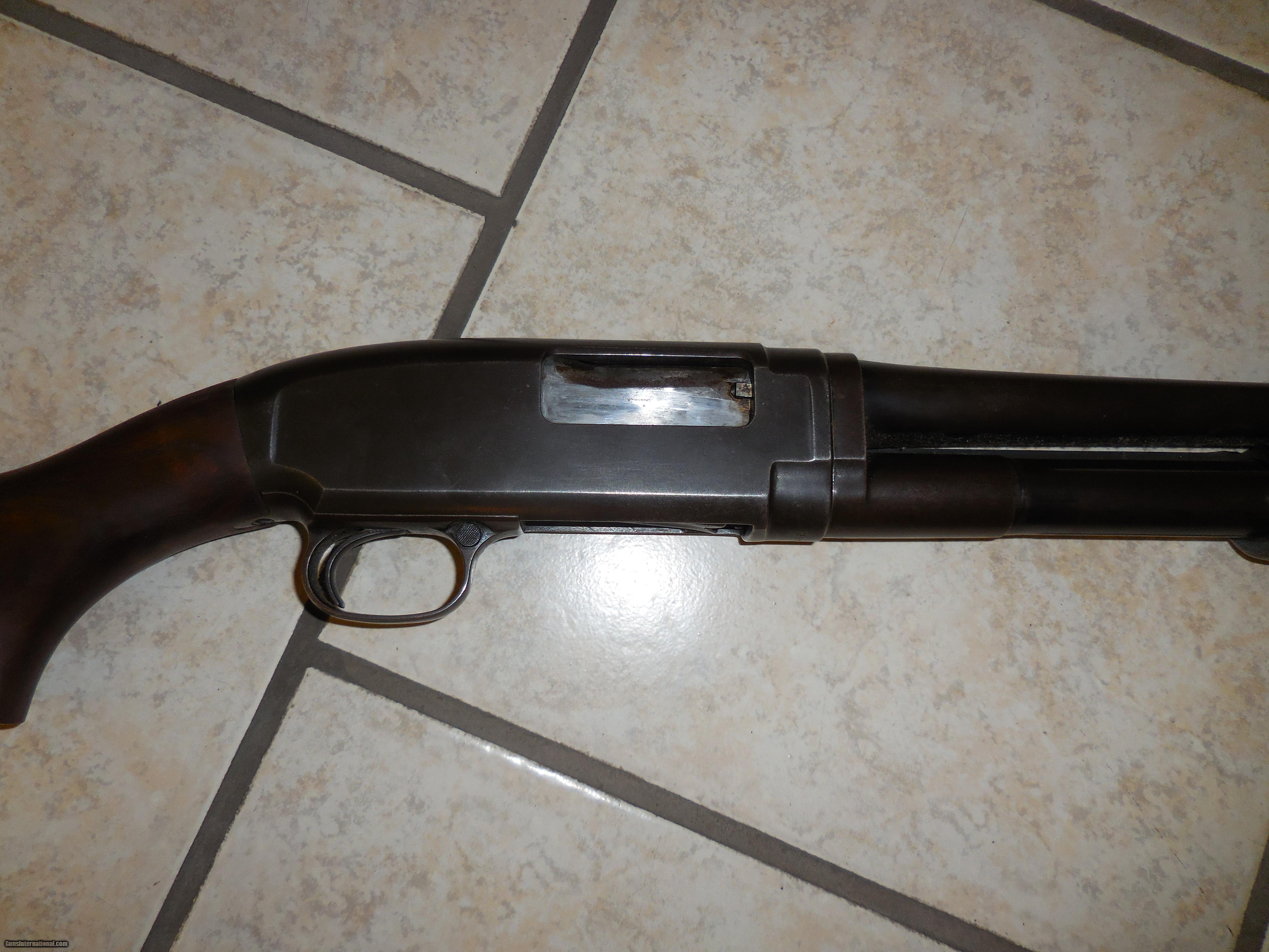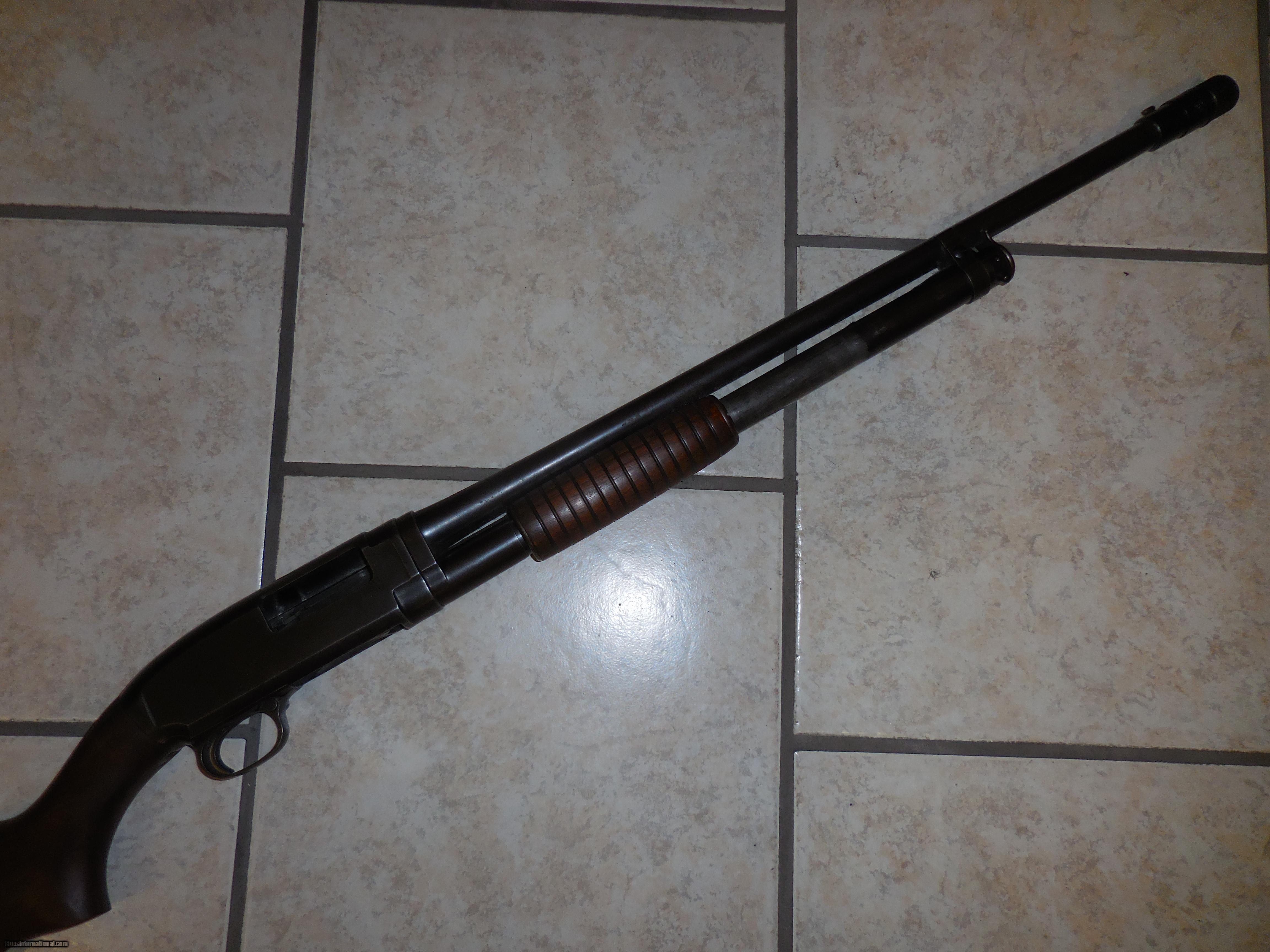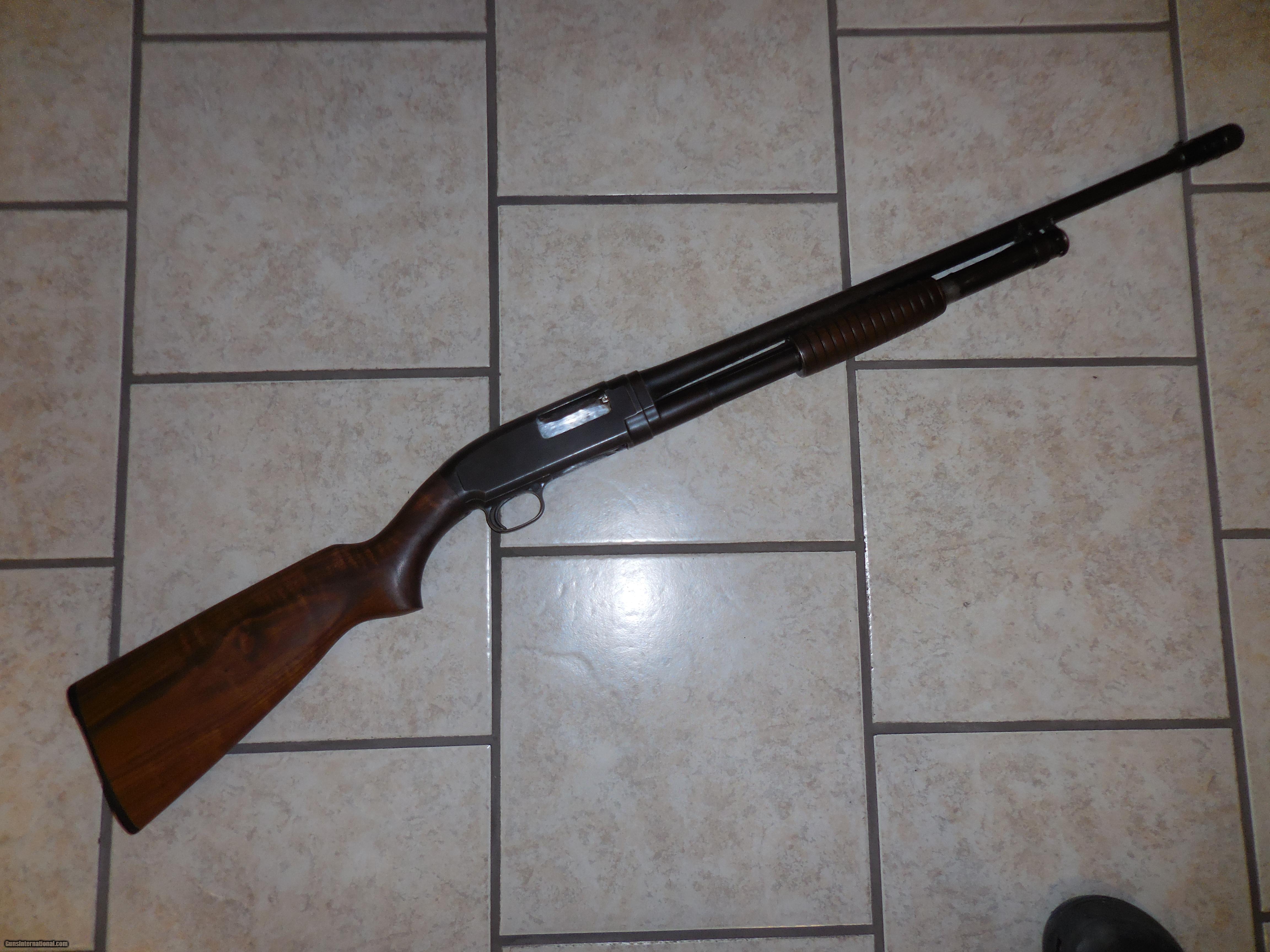 Description: This is a Winchester mod. 12 pump shotgun chambered in 20 gage and fitted with a poly choke system. The gun is in good working order with a stock that shows no cracks. The barrel is clean, blueing is worn of bot there is no rust.. Gun is in good working order. Barrel lenth 22 inches Overall length 42 inches SOLD |
