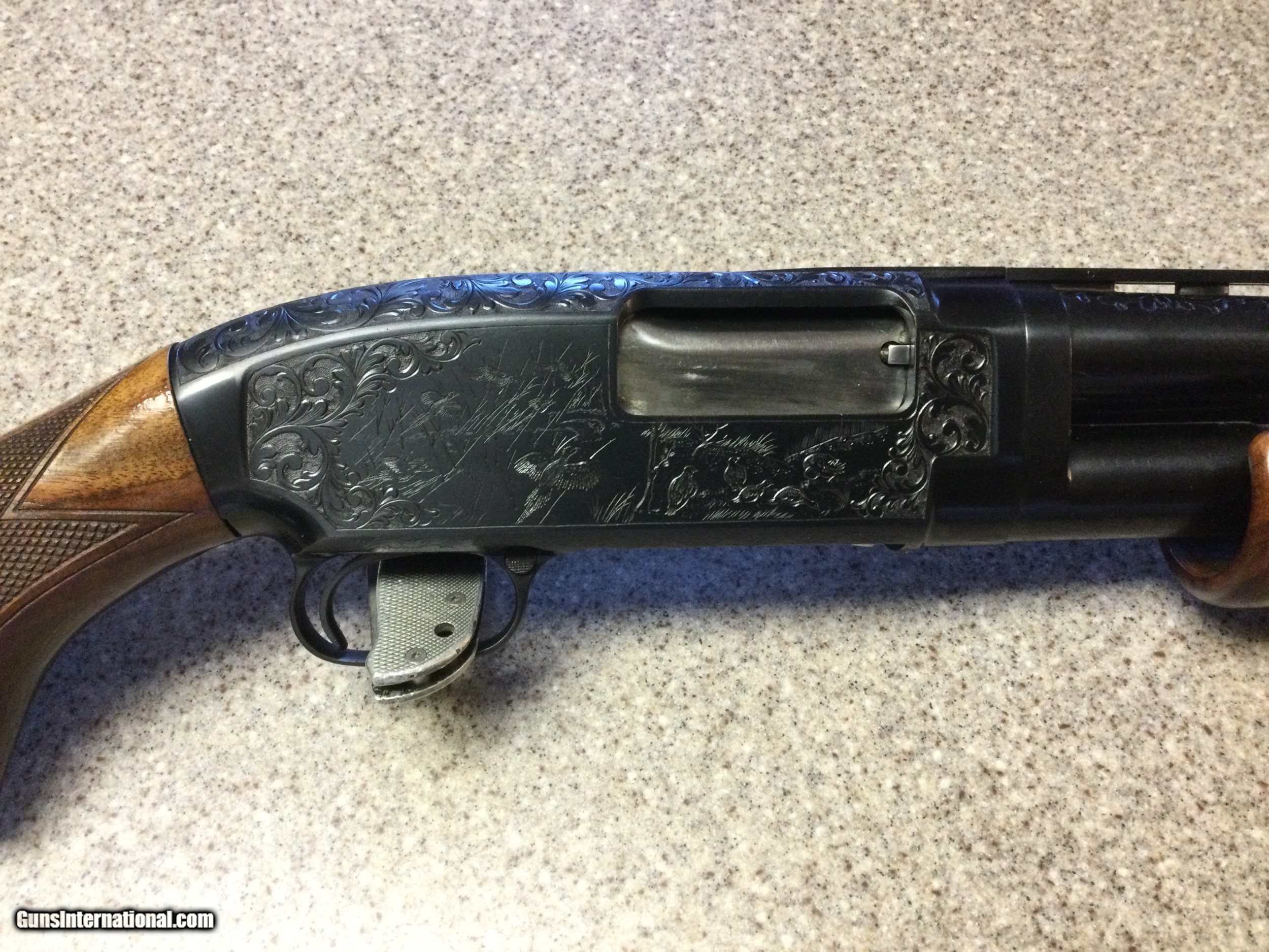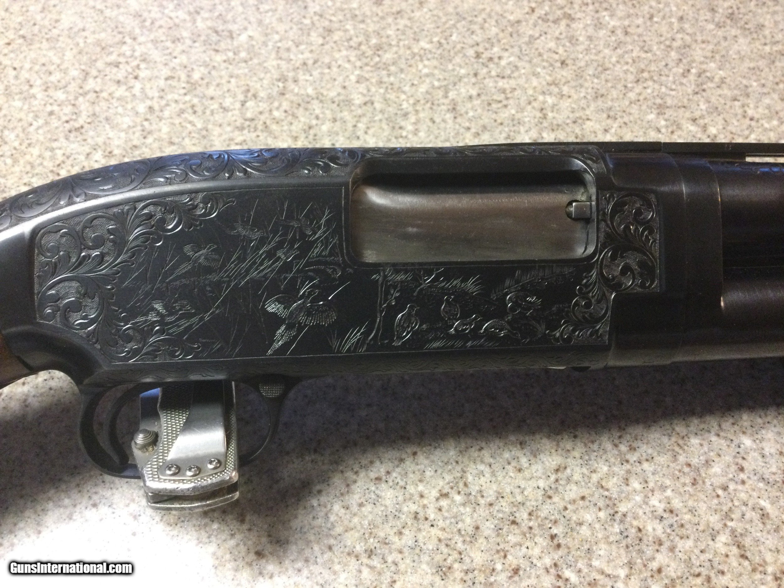 Description: Beautiful upgrade mod12 made in 1955,has been upgraded with extra nice wood and game scene's on receiver . A Lyman adjustable choke was added at some point. A few light handling marks on wood SOLD Shotgun Gauge: 12 Gauge Manufacturer: Winchester Model: 12 Condition: Ex Metal Condition: Ex Wood Condition: Ex Bore Condition: Ex Stock Comb: 1 1/2 Stock Heel: 1 3/4 LOP: 14 3/4 Rib: VR Manufacture Date: 1955 |