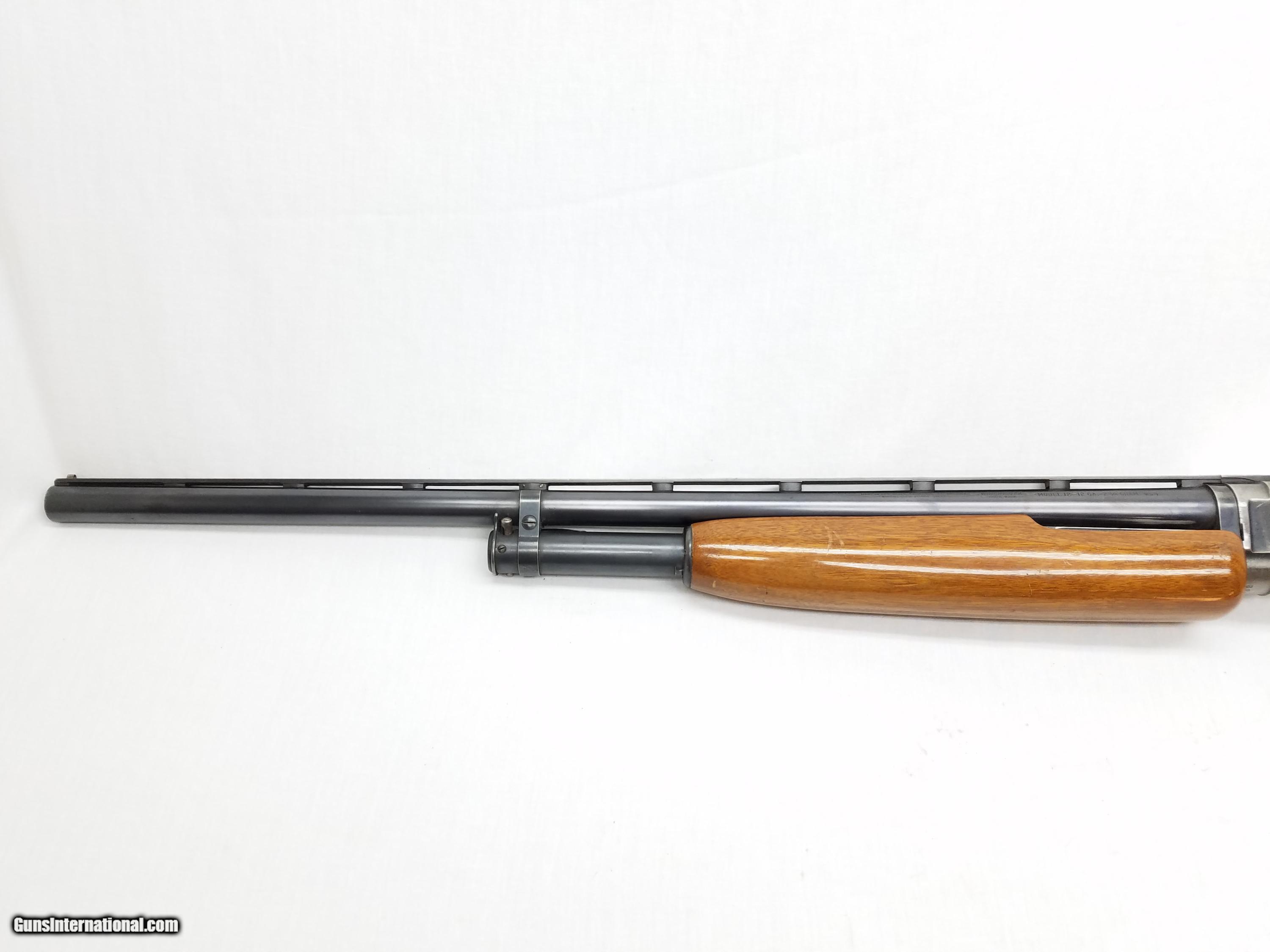Description: This is a Winchester Model 12 chambered for 2-¾” 12 gauge shotshells. This shotgun comes with 2 barrels that are serial numbered to the receiver. The 26” blued vent rib barrel is in good condition with no finish wear or corrosion. The bore is smooth and uncorroded and has a modified choke. The blued magazine tube has some finish wear but is otherwise undamaged. The Walnut forend has some scattered scrapes and a few scratches. The other barrel is a 22” blued vent rib barrel with a 5” muzzle brake. There is some finish wear and the bore has some scratches. The magazine tube has a worn finish but is not corroded. The Walnut forend is checkered and in good condition. The blued receiver has some finish wear around the edges and a couple scattered scratches. The P++ Walnut buttstock has a few light dings but none disturb the finish. The buttstock is fitted with a 1” Locator recoil pad and a plastic grip cap. Length of pull is 13-½”, overall length is 46”, and weight is 8.2 lbs. Our stock number is #A538. Willing to ship anywhere in the US to your FFL, buyer pays freight and insurance. SOLD Manufacturer: Winchester Model: 12 Metal Condition: Good Wood Condition: Good Bore Condition: Good Action: Pump Gauge Info: 12 Stock: P++ Walnut Fore End: walnut Butt Pad: 1 LOP: 13-1/2 Finish: blued Weight: 8.2 lbs Chokes: Mod |
