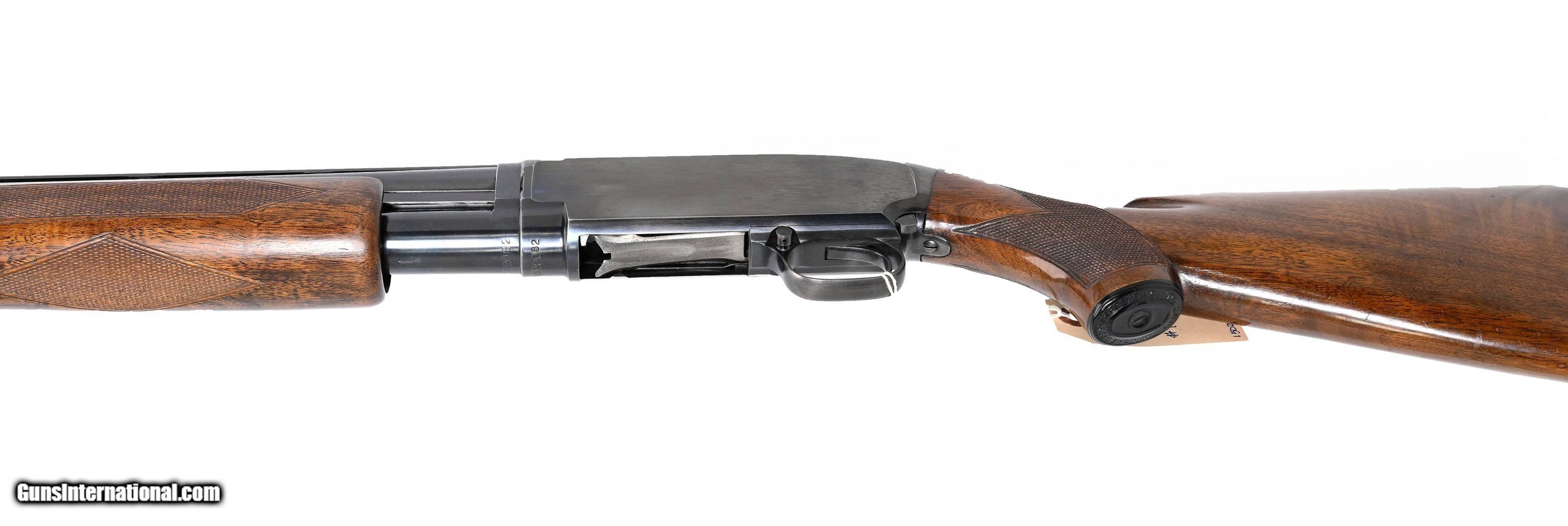 Description: Winchester Model 12 Trap. Iconic, mid 1950's manufacture, duck-bill vent rib ramp with milled receiver. This is an untouched, original Model 12 trap in nice condition. Metal is 95% with some light surface rust showing on the receiver. Wood is 95-97% and no damage. SOLD |
