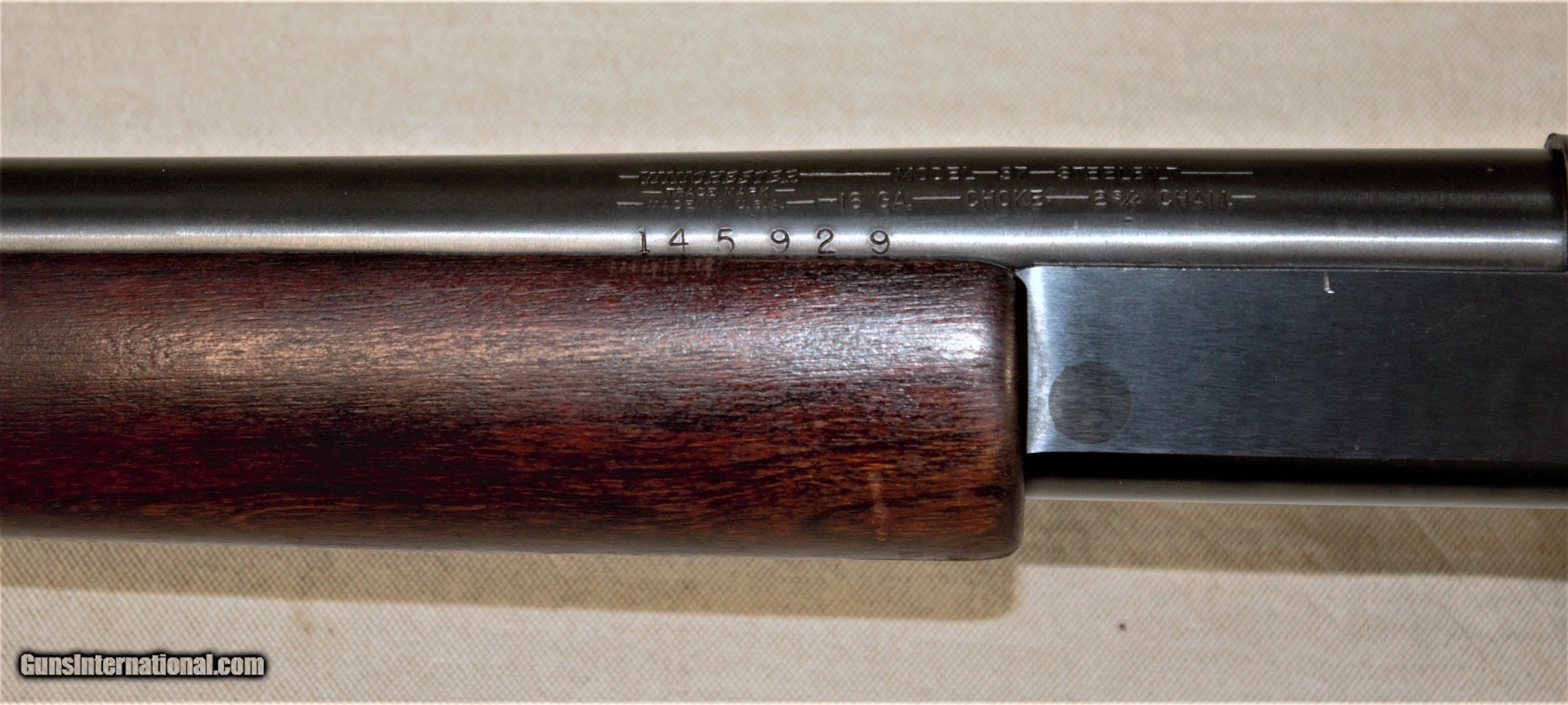 Description: Winchester Model 37, 16 GA that has the less common 30 inch barrel. The combination of being a 16GA and having a 30 barrel is rare. This example has a serial number stamped on the barrel underneath the "Winchester" logo. These guns weren't serial for sale in the U.S. The serial number was only applied to the guns that were going to be exported. This is a rare and sought after variation. This shotgun has been used. However the finish on the barrel looks really good with a few, small imperfections. The receiver shows a small area of blue loss below the release lever. And a couple of small scratches on the bottom of the receiver. The wood has some small handling marks, nothing that detracts from the overall appearance of this shotgun. This rare Winchester will compliment any Winchester collection!! We are Antique & Modern Firearms in Lexington, KY, dealer of fine firearms since 1974. PH. 859-276-1419 We Buy, Sell and Trade Firearms & Knives. Have a Individual Firearm, Firearms Collection, or Firearms Estate to sell, let us know, we can buy or consignment sell it for you. NOTE: No additional fee for a Credit Card payment. SOLD Shotgun Gauge: 16 Gauge Manufacturer: WINCHESTER Model: 37 Serial Number: 145929 (ADDED FOR EXPORT) Barrel Length: 30 Bore: Excellent Condition: Very Good Metal Condition: Very Good Wood Condition: Very Good Bore Condition: Excellent Action: single |
