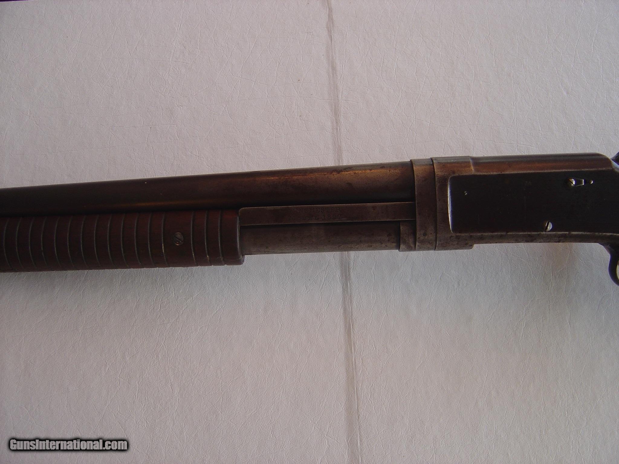 Description: Very early Winchester Model 1897 C 12 Ga. Pump shotgun manufactured in 1900. Gun is fully functional, shoots well and the action is tight. There is corrosion on the metal and the bluing is either gone or turned brown. The forend has a visible crack and there is a very small crack at the wrist which may or may not be visible. Gun is a takedown model and has the original domed magazine plug and steel butt plate. Gun would make a good hunting gun or Cowboy Action shooter. SOLD Curio/Relic: Yes Manufacturer: Winchester Repeating Repeating Arms Co. Model: Model 1897 C Serial Number: 113609 Caliber Info: 12 Ga Chambers: 2 3/4 Metal Condition: Fair Wood Condition: Fair Bore Condition: Some pitting Barrels: Single Barrel Type: Steel 30 Action: Pump Gauge Info: 12 Stock: Walnut Fore End: Ribbed Walnut Butt Pad: Steel LOP: 13 ½ Finish: Poor Weight: 7 lbs. 13 ozs. Sights: Single bead Manufacture Date: 1900 Chokes: Full Item Location: Pennsylvaniga Proof:Nitro: Yes |