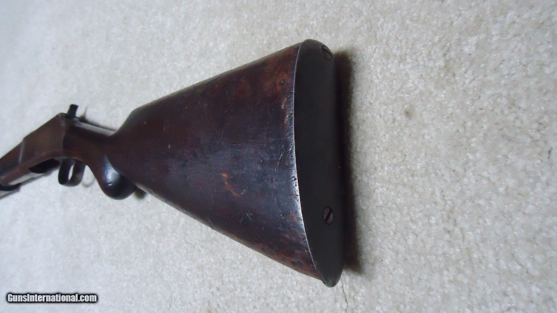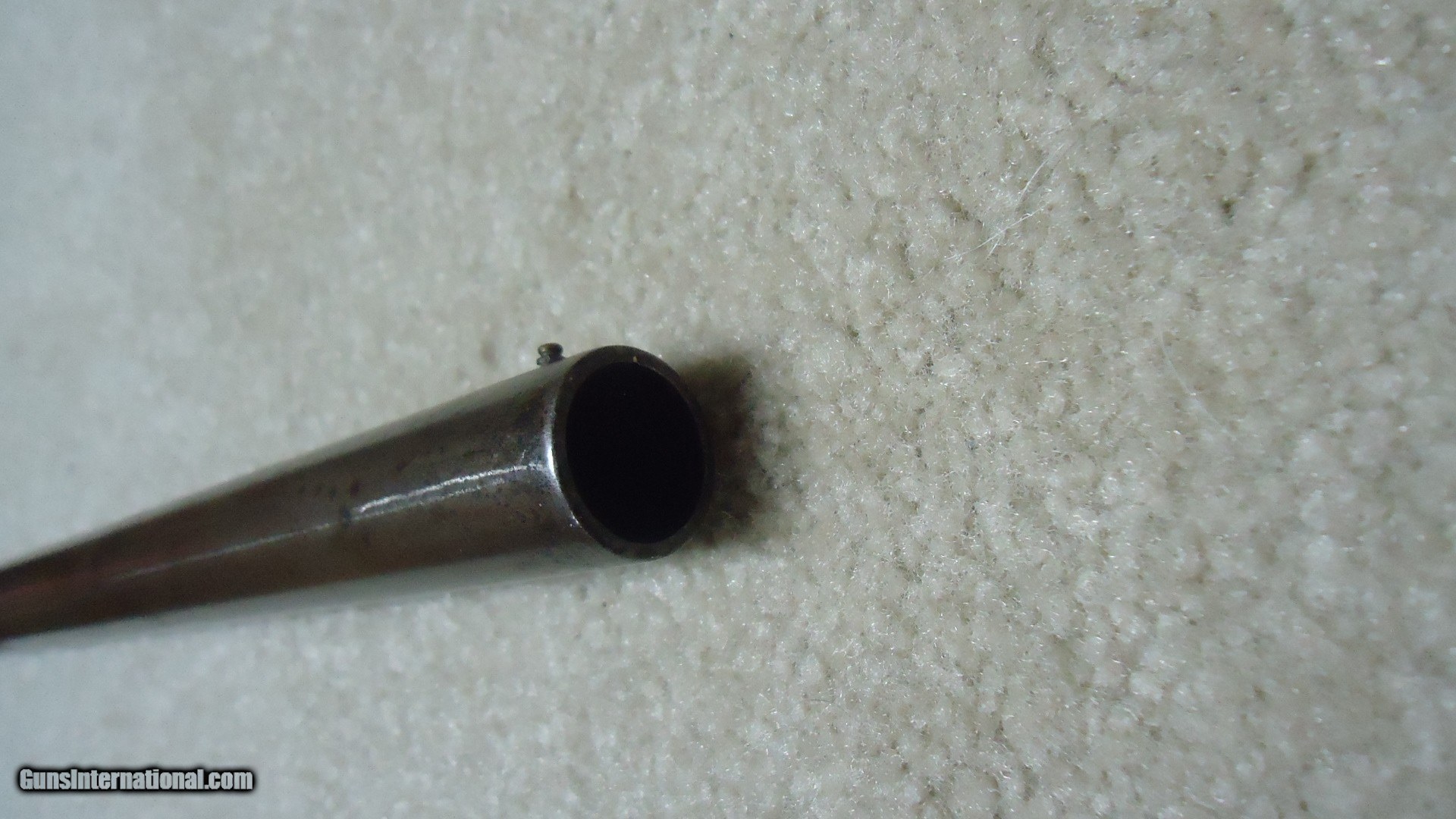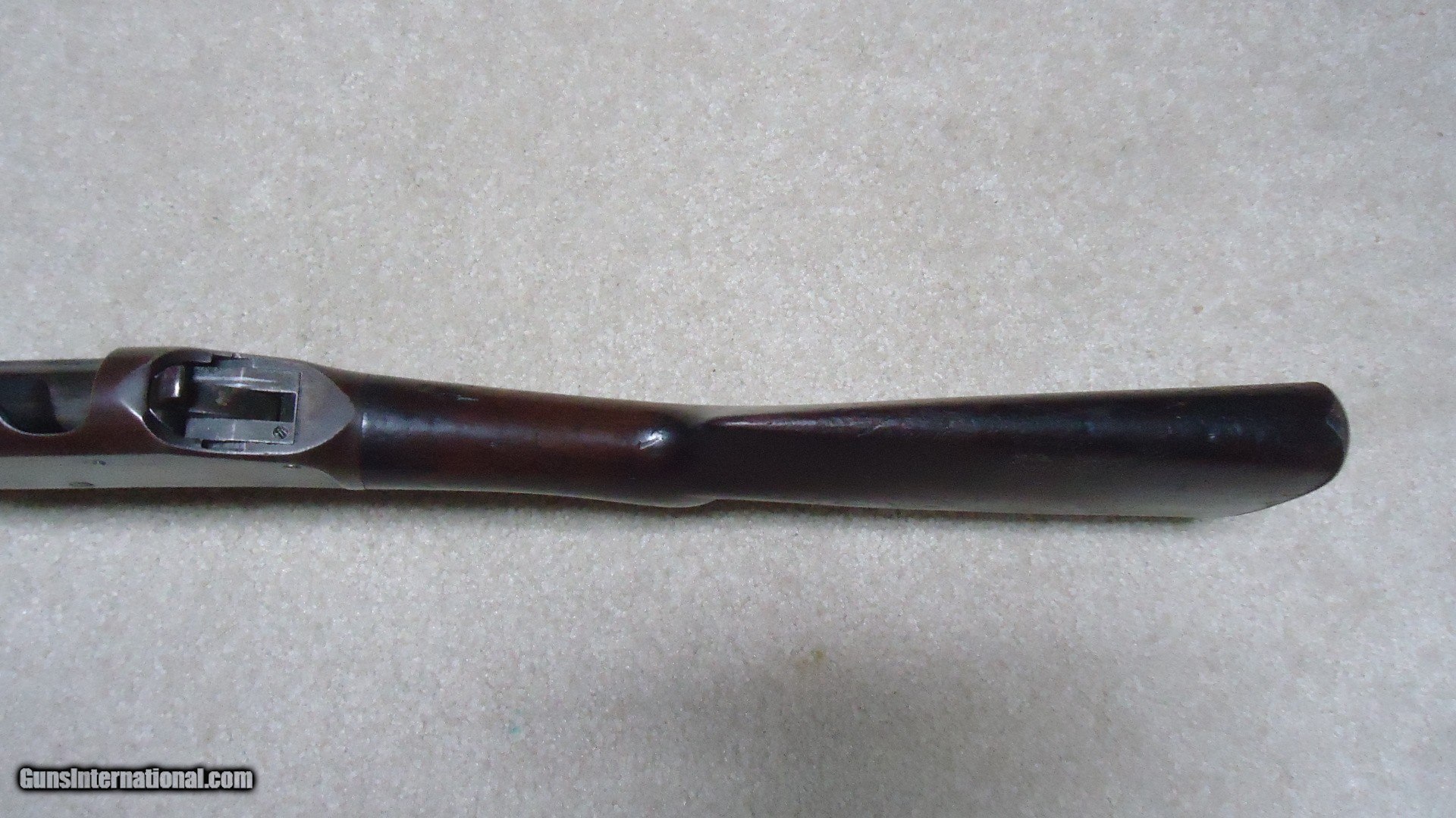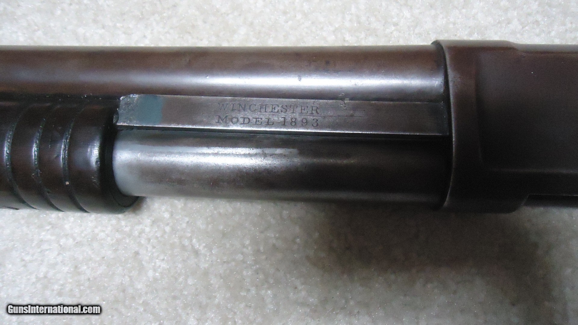 Description: ALMOST NEVER SEEN, WINCHESTER'S FIRST PUMP SHOTGUN, MODEL 1893 12 GA., #25XXX, MADE 1896! This was Jonathan Brownings initial design that a few years later was improved into the Model 1897 that was made well into the 1950s. The 1893 was made for the 2 5/8" black powder shells of the day and is easily identified by the cut out in the ejection port on the right side of the receiver- the Model 1897 has a straight rectangular cut out without the open area over the top of the receiver of the 1893. The Model 1893s rarely turn up these days and when they do are almost universally in very poor and frequently damaged condition. Finding one with any blue is a rarity indeed and just finding one that is unaltered with solid wood is remarkable. This example retains the original smooth steel butt plate and the wood to metal fit is tight with only a hint or a stress crack coming back from the receiver in a couple of places- these cracks usually end up with chipping etc as the stock is held to the receiver with a long cross bolt running from the butt plate through the stock to the receiver. Like on Savage 1899s with the same arrangement, as the wood swells and shrinks with temperature and humidity changes, the stock pressure against the receiver can change causing these little cracks to form. Excellent forearm, overall metal on barrel, mag tube and barrel is an uncleaned very aged blue to plum/brown with some gray mixing. Excellent early markings. The action is tight and the bore shows usual black powder corrosion/light pitting, but still decent. An historic 126 year old example of Winchester's first pump shotgun! SOLD Antique: Yes Shotgun Gauge: 12 Gauge Manufacturer: WINCHESTER Model: 1893 Serial Number: 25XXX Barrel Length: 30 Condition: VG Bore Condition: VG |