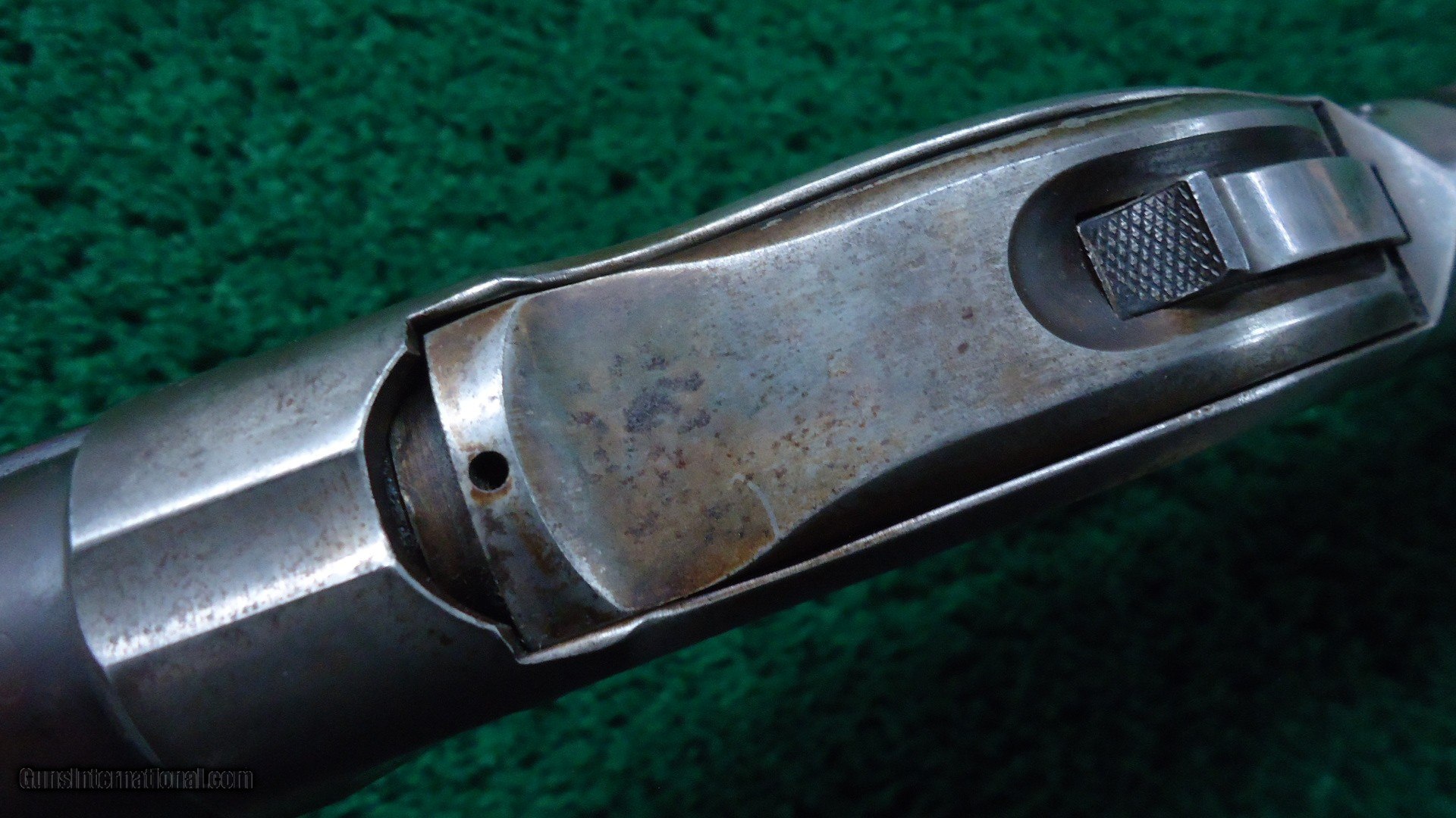 Description: 30 inch round barrel with a partially bright good bore with scattered light roughness throughout. Barrel is a plum/brown patina while the mag has blue that turns to a plum/gray. Receiver is a silvery case hardened patina with traces of color showing through. Nice crisp Winchester monogram on the left side of the frame. The pistolgrip and forearm have been checkered long ago. Butt stock still retains traces of original varnish. Hard rubber buttplate is in good condition as well. Nice functioning action on this old 1889 made 10 Gauge Leroy Merz Antique Firearms specializes in antique and vintage Winchesters and other fine American firearms. Since 1965 Mr. Merz has taken part in the world of firearms and has been a contributor to many well known reference books. We have hundreds of additional guns in every price range at our home online. Search for Merz Antiques in google. SOLD Antique: Yes Shotgun Gauge: 10 Gauge |