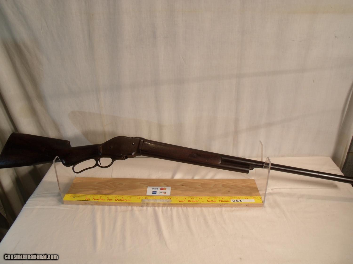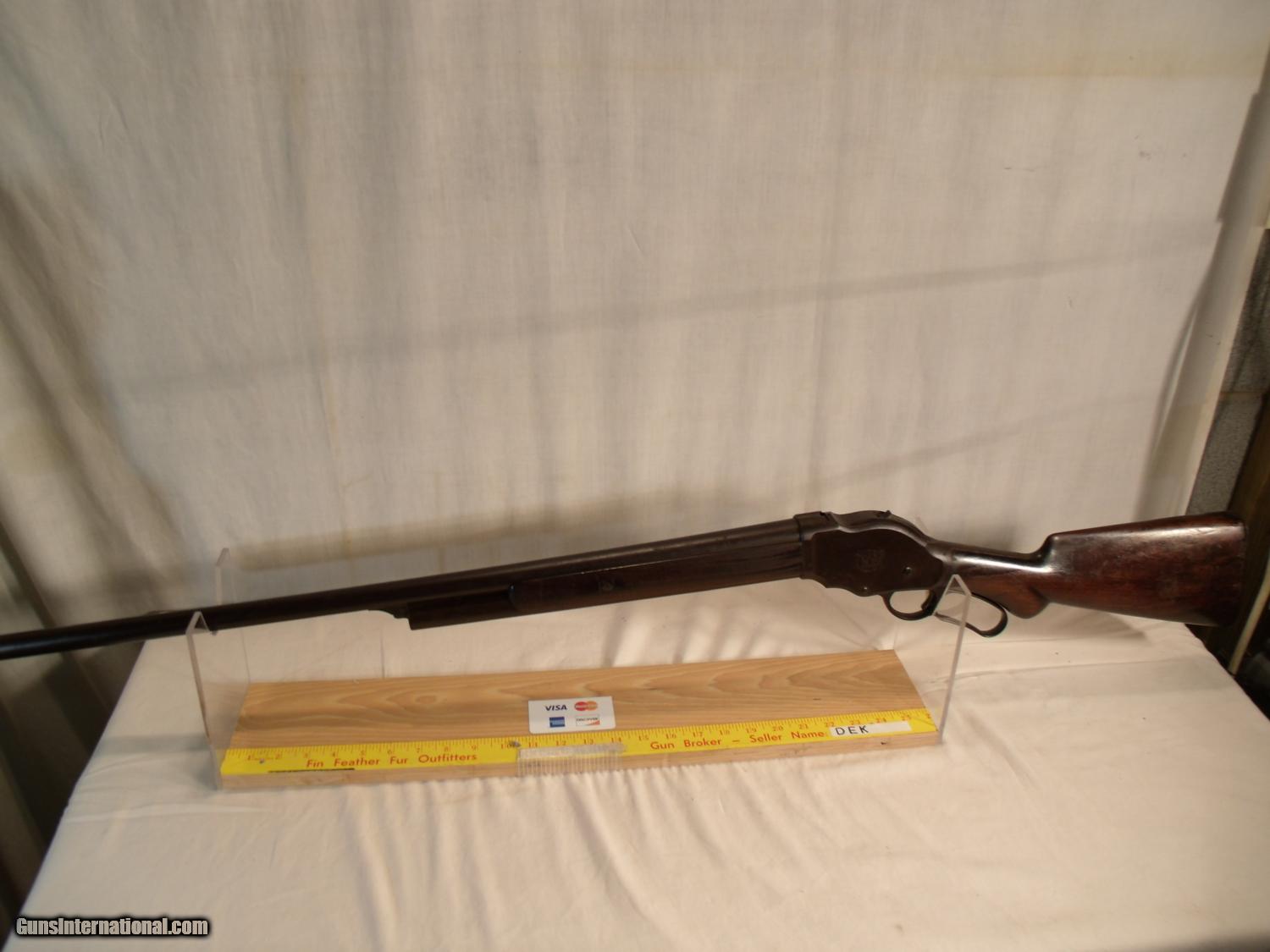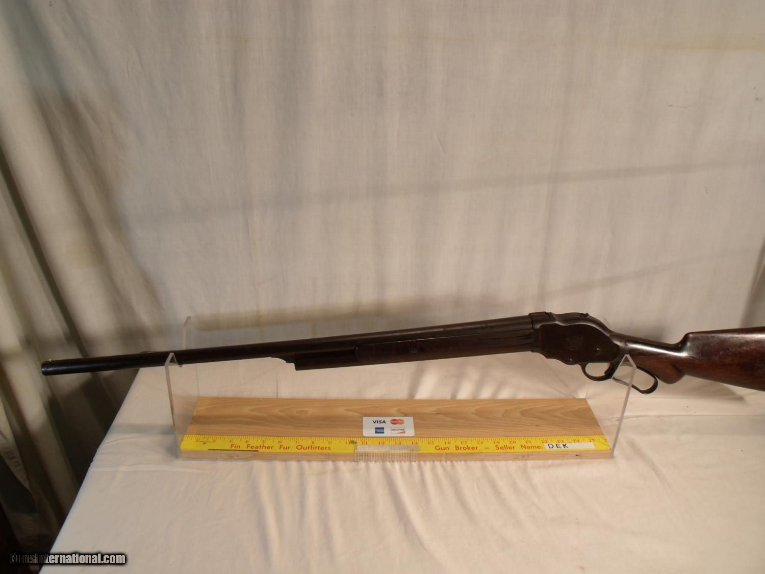 Description: Model 1887 Winchester Shotgun 12 gauge. 30 inche barrel. Made from 1887 to 1901. Approximately 65,000 made. This gun is serial number 8XXX so it would be an early model. Good working order with a lightly pitted bore. This is a non-gun by ATF rules. No paper work required. A nice gun in all respects. SOLD Curio/Relic: Yes Antique: Yes |
