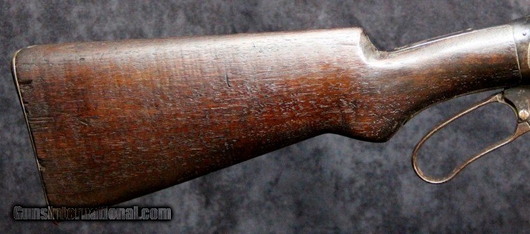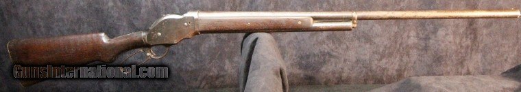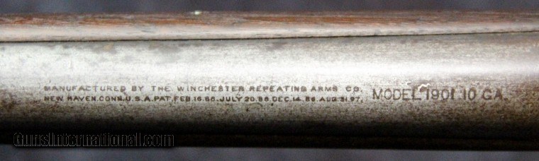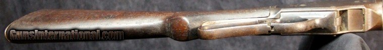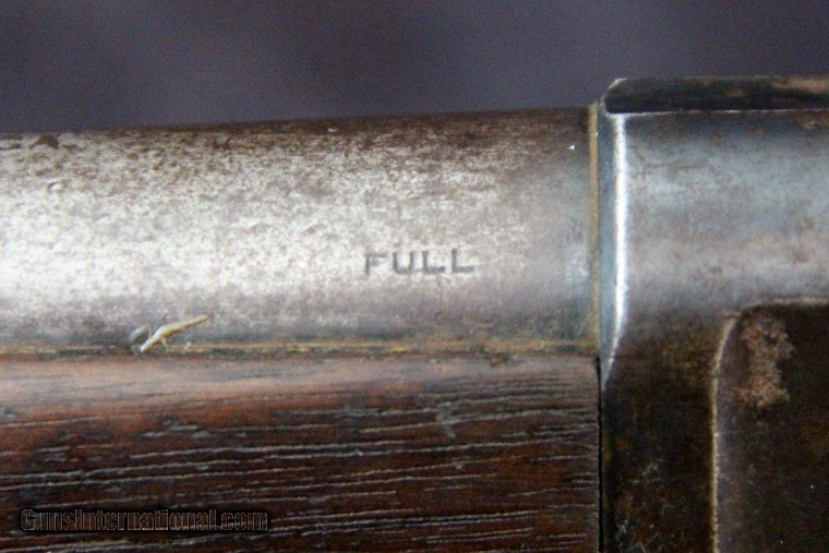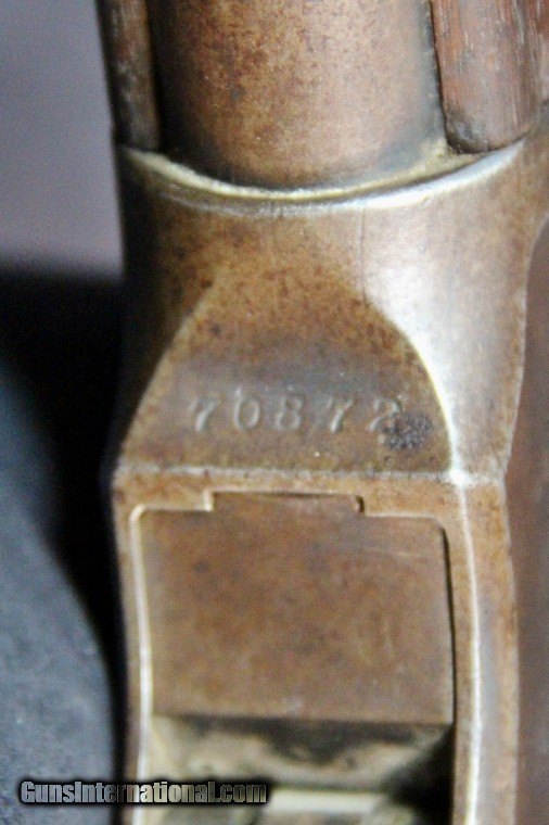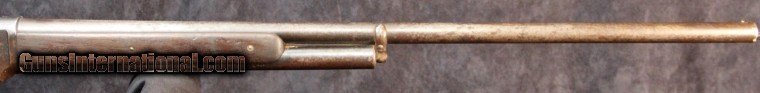 Description: 10ga, #70872, 32 inch barrel, blue finish, walnut stock and forearm, steel butt plate, 1906. Condition: very good bore, mottled silver-plum metal, solid wood has shrunk, lever junction screw replaced, shell carrier does not rise all the way.. SOLD Curio/Relic: Yes |