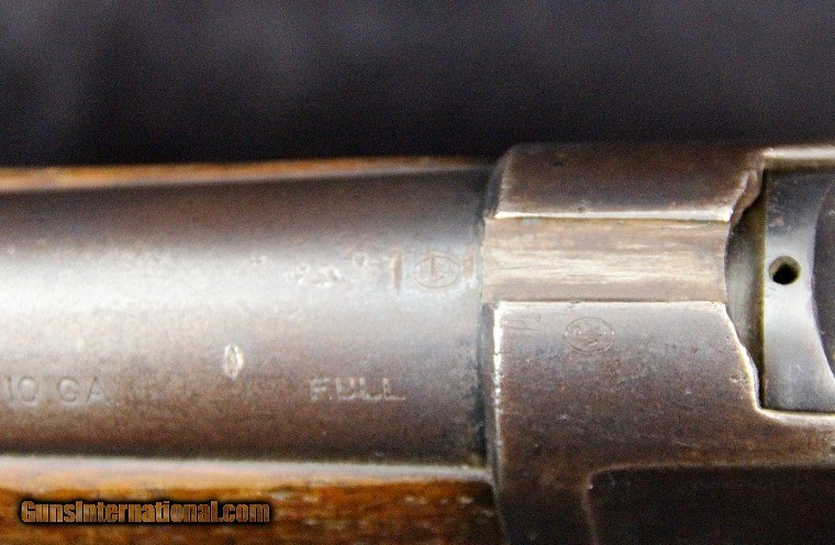 Description: 10ga, #75476, 32 inch barrel, full choke, blue finish, walnut stock and forearm, steel butt plate, 1911. Condition: very good bore, 85% blue overall toning darker, excellent wood, excellent mechanically, excellent marks. SOLD Curio/Relic: Yes |