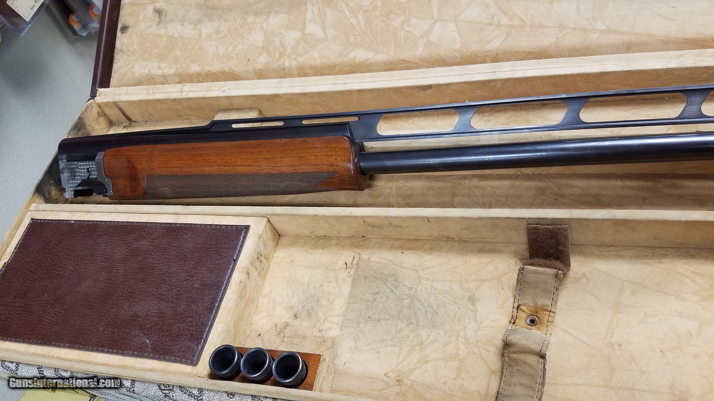 Description: Here is a dandy from the past that still has many miles left on it. It is an undersingle 34" and 30" double. The undersingle is WinChoked and so the bottom barrel of the O/U. Comes with the factory hard case and 5 choke tubes. It has a 14.5" LOP and an adjustable comb. The ejectors do not work. Unsure if they are broken or have been disabled. I am only taking checks on this gun. Please call or email with any questions. WE TAKE CASH, MONEY ORDERS, CASHIER CHECKS, OR EVEN PERSONAL CHECKS.........AS LONG AS THEY'RE GOOD! GUNS WILL BE HELD UNTIL PERSONAL CHECKS CLEAR. GUNS SUBJECT TO PRIOR SALE. There is a $50 shipping charge per gun and is NOT refundable. Insurance may be extra. Thank you, Darryl Howard SOLD |