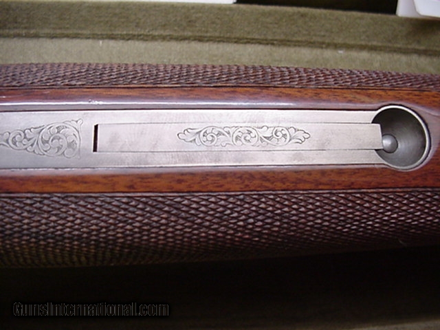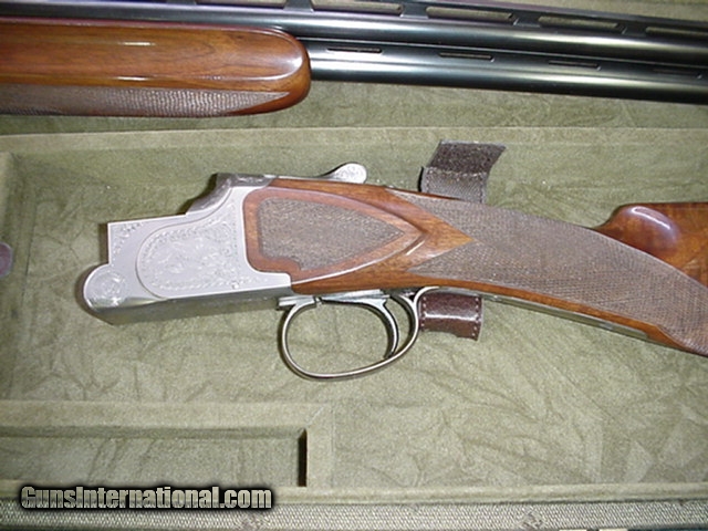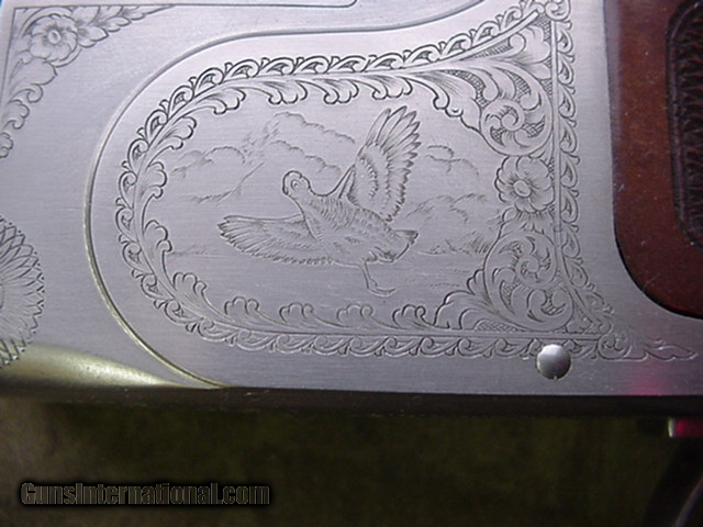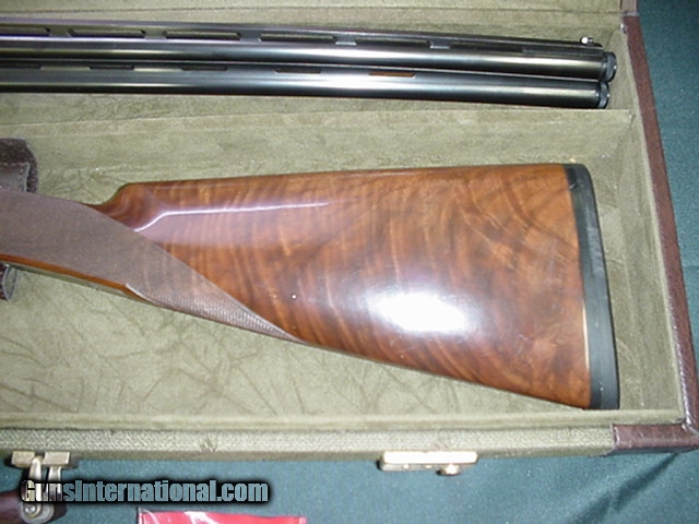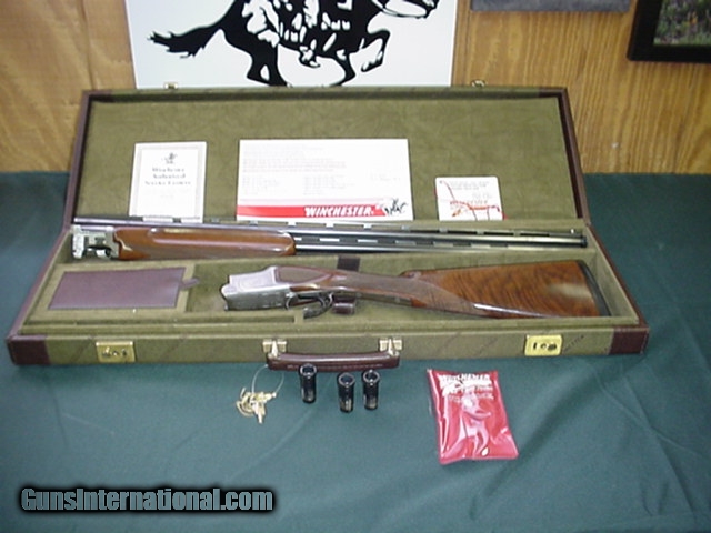 Description: 4685 Winchester Pigeon Lightweight 28 gauge 28 inch barrels, 5 chokes, 2 sk, 2 ic, mod, BABY FRAME, HANG TAG ALL PAPERS, coin silver engraved game scene receiver, STRAIGHT GRIP, Winchester pad, all original, correct Winchester Case,AA+ Fancy Walnut, As new in Winchester case. SOLD |