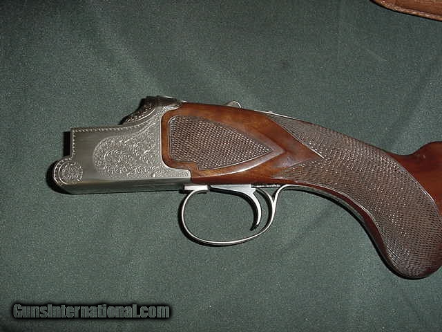 Description: 4850 Winchester 101 Pigeon 20 gauge, 28 inch barrels mod/full,vent rib, ejectors, rose and scroll engraved coin silver receiver, round knob,AA Fancy Walnut, bores brite and shiny, this shotgun is 99% condition and comes with the correct Winchester case. none finer.--210 602 6360--we export- SOLD |