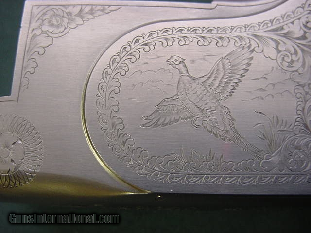 Description: 4980 Winchester 101 Pigeon XTR Lightweight 12 gauge, 27 inch barrels, 7 chokes and wrench, 2 skeet, ic m im f xf,game scene pheasants and quail engraved on coin silver receiver, Winchester butt pad, all original, correct Winchester case.vent rib, ejectors,ready for the field SOLD |