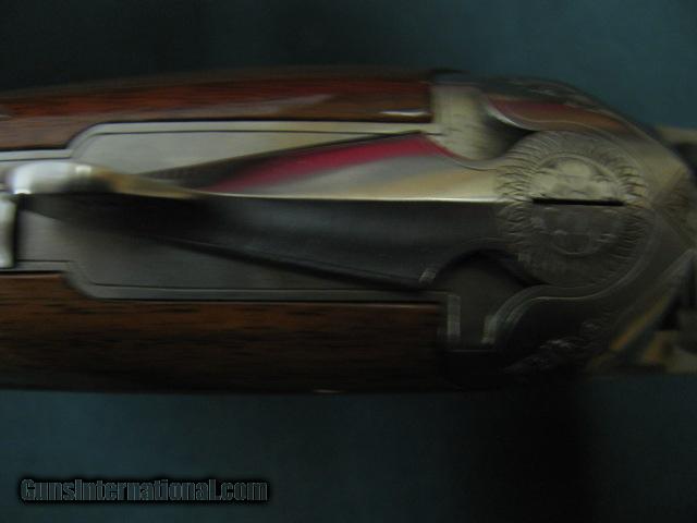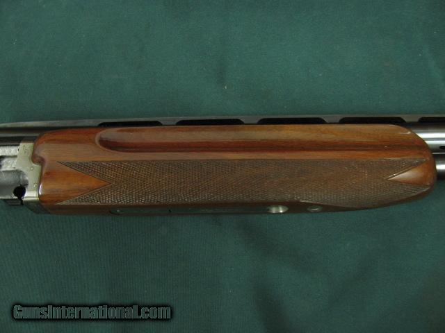 Description: 5113 Winchester 101 Pigeon XTR Lightweight 20 gauge, 27 inch barrels 2 3/4 & 3inch chambers, Winchokes sk ic m f,keys, pouch,wrench all complete, correct Winchester case.coin silver engraved game scene receiver round knob Winchester butt pad,A+Fancy Walnut.97% condition. SOLD |