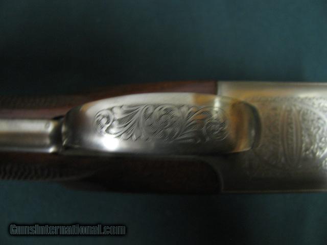 Description: 5176 Winchester 101 XTR Pigeon 12 gauge 28 inch barrels, 2 3/4 and 3 inch chambers, Round Knob, ejectors, vent rib,Game scene engraved coin silver receiver, Winchester butt pad,ALL ORIGINAL, appears unfired,most beautiful heavily figured walnut I have seen AA++Fancy, keys, correct Winchester case, none finer. SOLD |