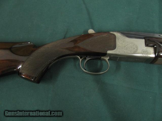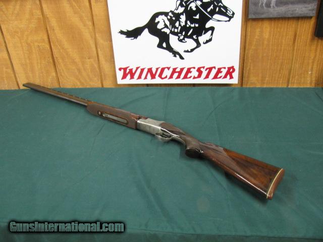 Description: 5834 Winchester 101 Pigeon 410 gauge, 28 inch barrels 2 1/2 inch chambers, sk/sk, 14 3/8 lop Pachmayr pad,minor handling marks if held up to the light,rose and scroll coin silver receiver,93% condition on the dark walnut, one of the early ones.great upland bird gun or for clays SOLD |