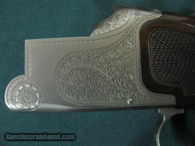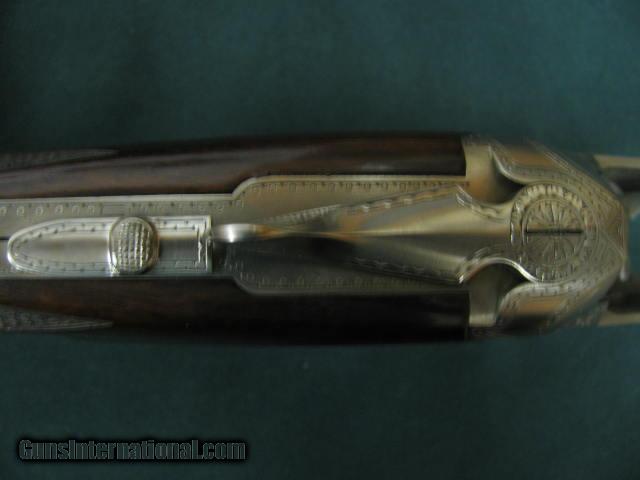 Description: 6098 Winchester 101 Pigeon Grade SKEET SET, 20 gauge, 28 gauge 410 gauge, 28 inch barrels,3 forends, this is the dark early walnut one with diamond tipped tools did the deep engraving.Correct Winchester case,99% condition.Time capsule survivor. SOLD |