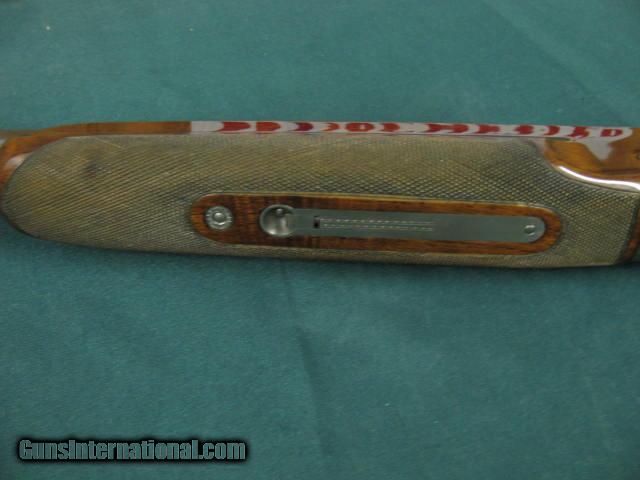 Description: 6162 Winchester 101 Pigeon 12 gauge 32 inch barrels im/f, all original, Winchester butt pad,ejectors, vent rib rose and scroll engraved coin silver receiver,early one with diamond tipped engraved receiver,99% conditon, very very hard to find. SOLD |