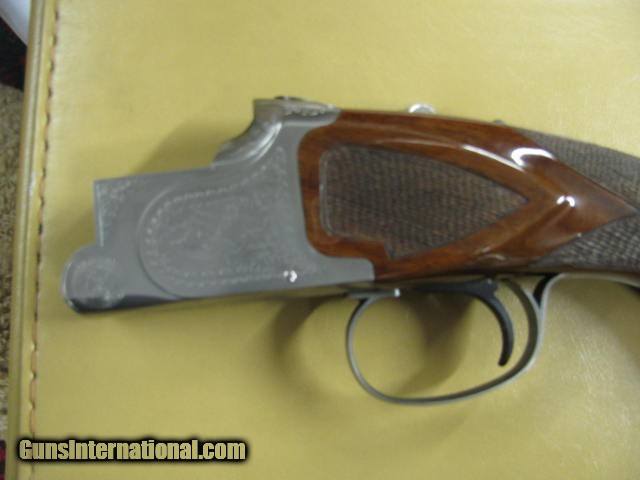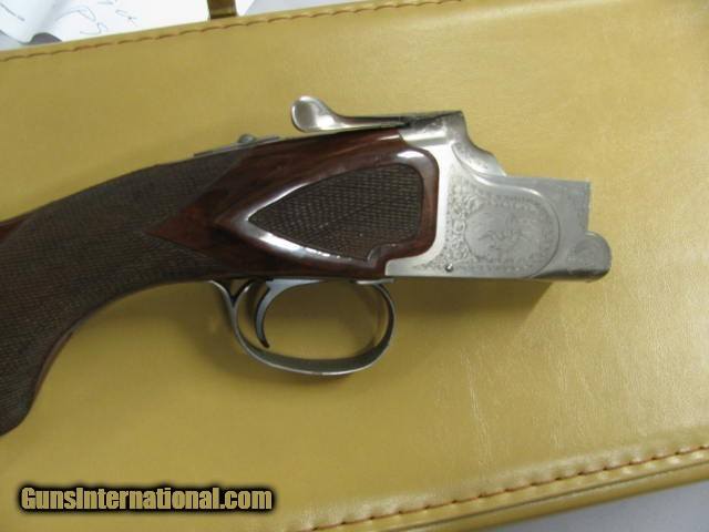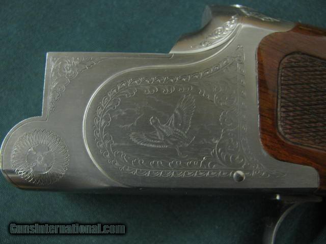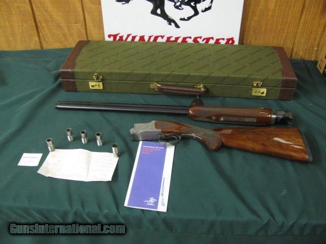 Description: 6621 Winchester 101 Pigeon XTR LIGHTWEIGHT 28 gauge,BABY FRAME,28 inch barrels, vent rib, ejectors, Winchester butt pad, quail/birds engraved coin silver receiver AA++Fancy Walnut,all original, 99% condition,AS NEW IN CASE, PAPERS,KEYS,-BABY FRAME,correct Winchester case. 99% per cent condition, none finer. dont miss this one. SOLD |