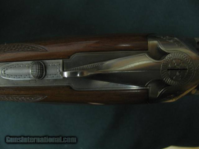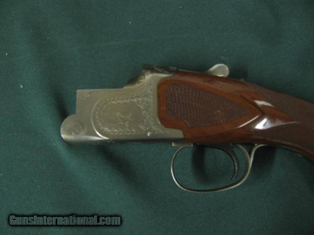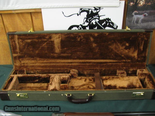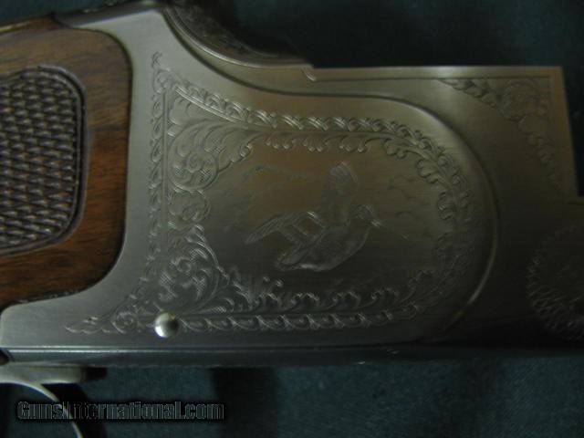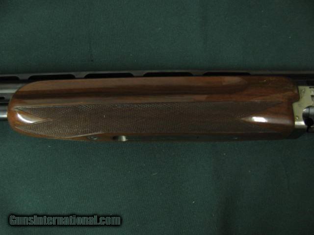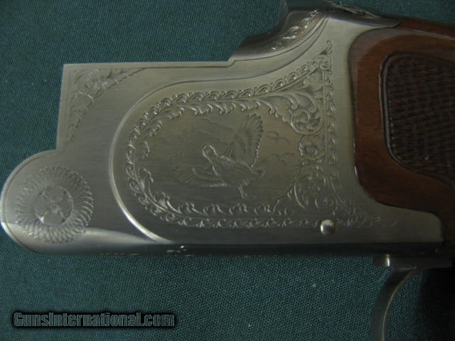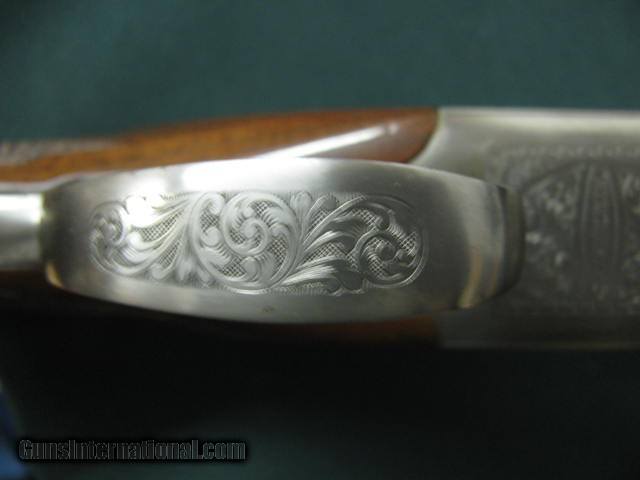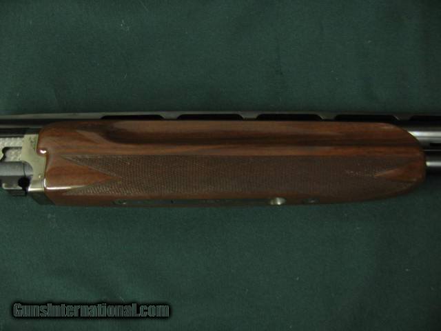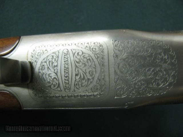 Description: 6631 Winchester 101 Pigeon XTR Lightweight 20 gauge 27 inch barrels 2 3/4 & 3 inch chambers, 6 winchokes 2 sk 2 ic 2 full 2 pouches, 2 wrenches, Cabellas leather trimmed case AA Fancy Walnut, place for sling swivels, engraved Quail/birds on coin silver receiver, ejectors, vent rib round knob, Winchester pad. all original, 99% condition, AA Fancy Walnut. SOLD |
