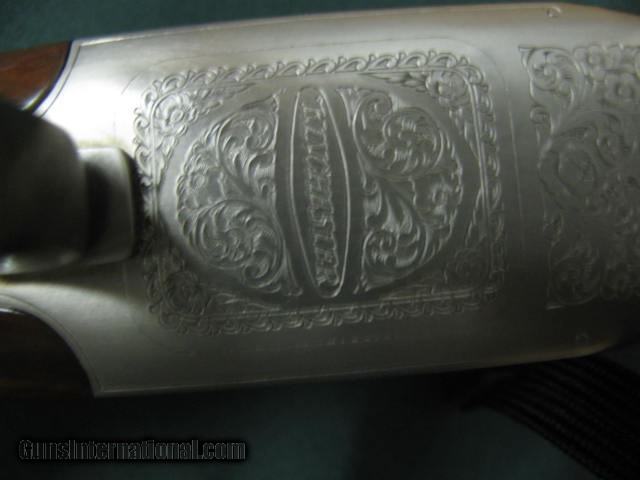 Description: 6640 Winchester 101 Pigeon Lightweight BABY FRAME 28 gauge 28 inch barrels 5 Winchokes 2sk 2icm m wrench Hang tag and All Papers,WINCHESTER CASE,quail/birds engraved coin silver receiver, Winchester butt pad, all original, ejectors vent rib STRAIGHT GRIP,NONE FINER TIME CAPSULE SURVIVOR BABY FRAME 99% CONDITION FASTIDIOUS PREVIOUS COLLECTOR, DONT MISS THIS ONE.BEST AAA= HIGHLY FIGURED TIGER STRIP WALNUT. SOLD |