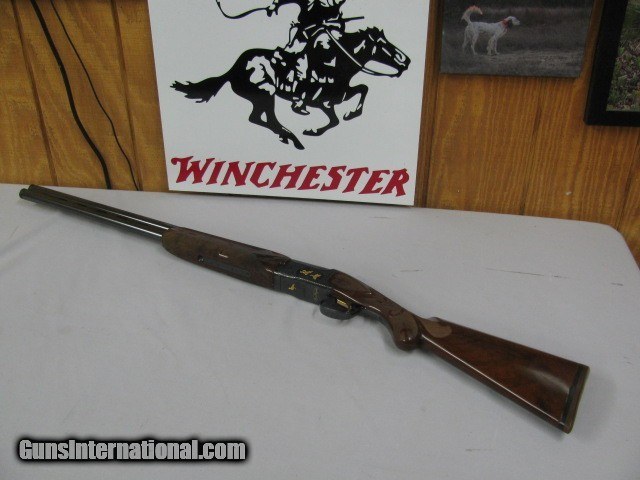 Description: 7466 Winchester 101 SUPER PIGEON 12 gauge WINCHOKES sk/mod (more for $40) 7 GOLD IMAGES, 2 gold ducks left, gold bird dog&3 gold birds right side, GOLD PIGEON ON BOTTOM OF RECEIVER, GOLD "SUPER PIGEON" OVAL, all original 99% condition, AS NEW, EXCELLENT CONDITION, Winchester butt pad 14 1/8 LOP, FLEUR-DE-LIS checkere side panels and wrist, elaborate engraving on lustrous blue receiver, extra select walnut. round knob long tang,2 white beads.gold trigger. AAA++FANCY WALNUT.these were the TOP OF THE LINE WINCHESTER 101'S---NOT A MARK ON IT--SORRY NO CASE. SOLD Shotgun Gauge: 12 Gauge |