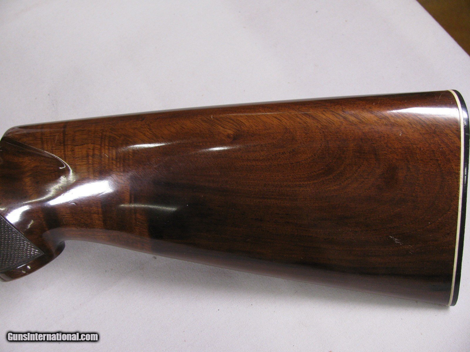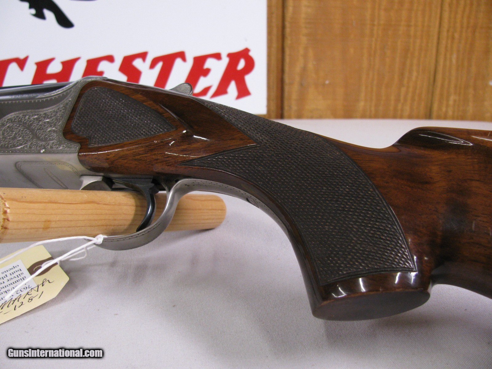 Description: 7632 Winchester 101 Pigeon 12 gauge 27 barrels skeet/skeet, the early one with dark walnut and diamond tipped tools engraved rose and scroll coin silver receiver, 2 white beads 98%, all 100% original, butt plate, ejectors, pistol grip,checkered side panels, opens and closes tite, shot little,--210 602 6360-- SOLD Shotgun Gauge: 12 Gauge |