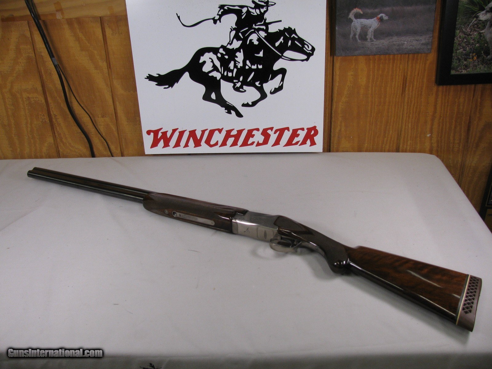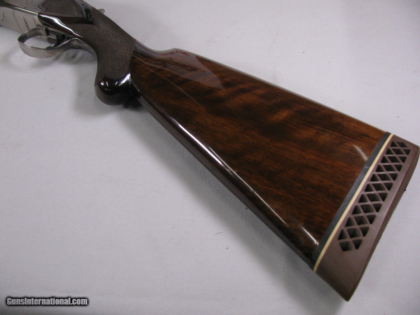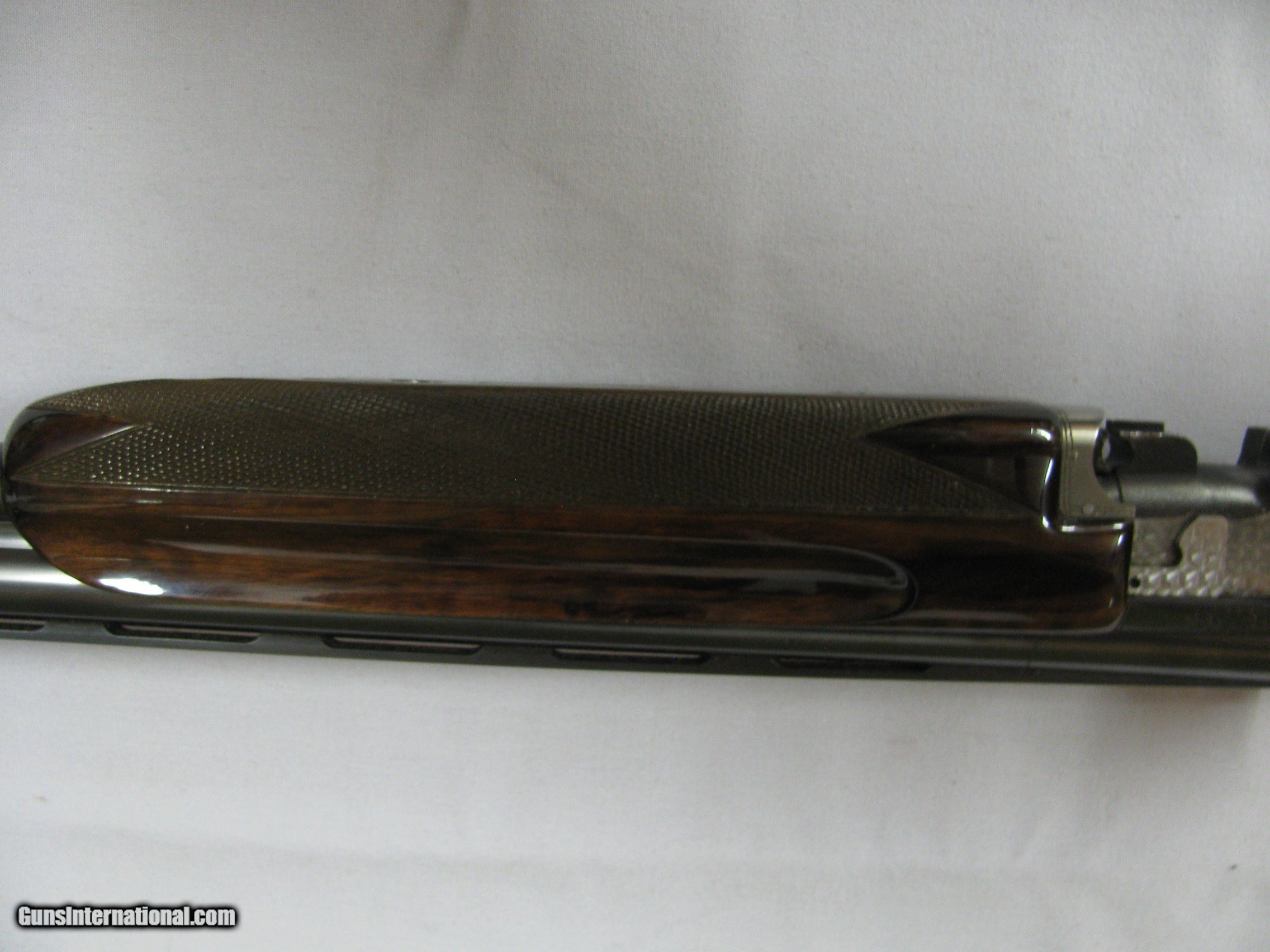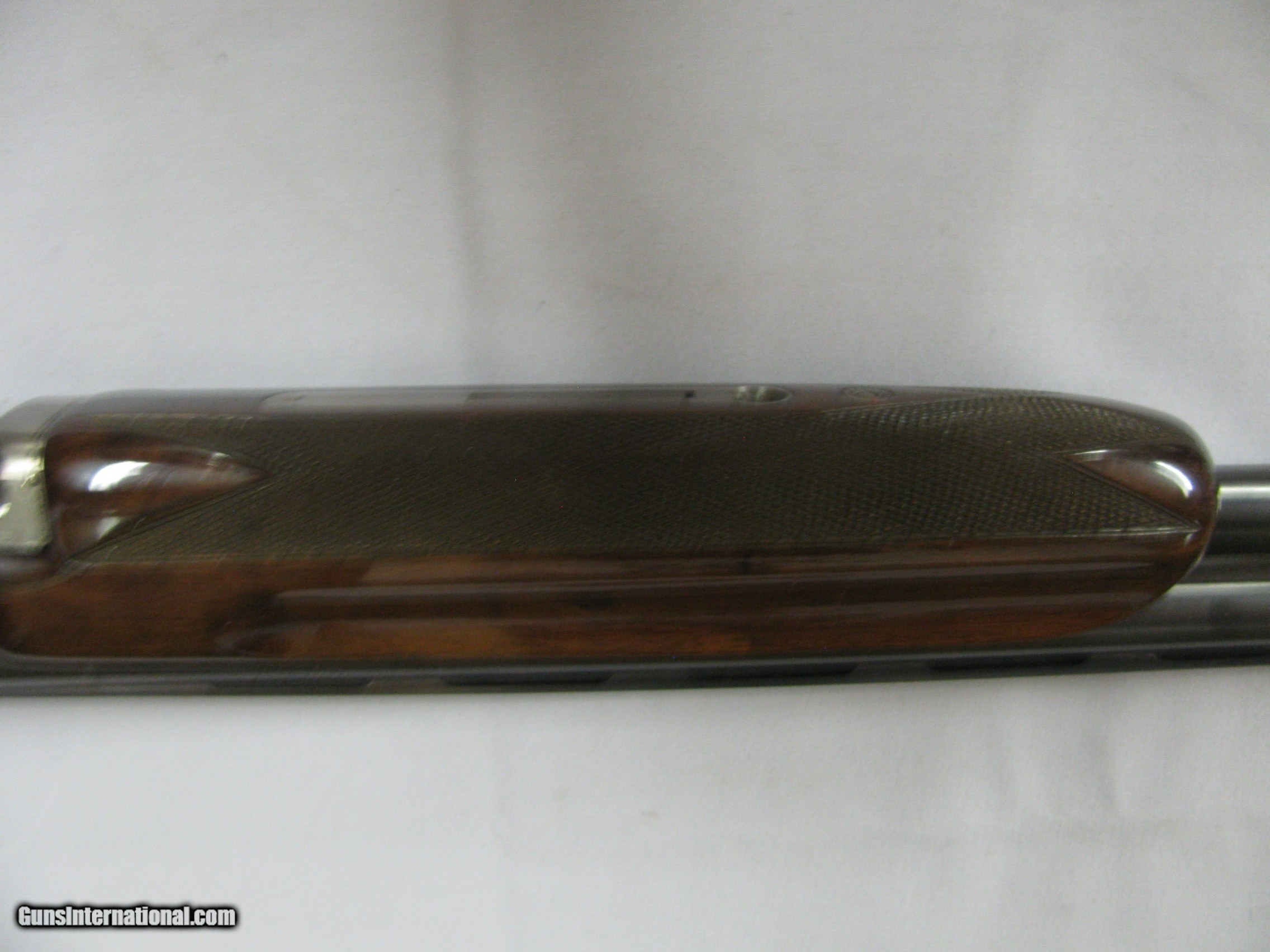 Description: 7736 Winchester 101 Pigeon 12 gauge 28 inch barrels mod/full, AAA++Fancy Walnut tiger striped, ejectors, vent rib, 2 white beads, round knob, rose and scroll engraved coin silver receiver, the early good one with diamond tipped tool engraving, White line pad 14 3/8 lop 98-99% condition, Excellent Winchester case. these are extremely hard to find. SOLD Shotgun Gauge: 12 Gauge |