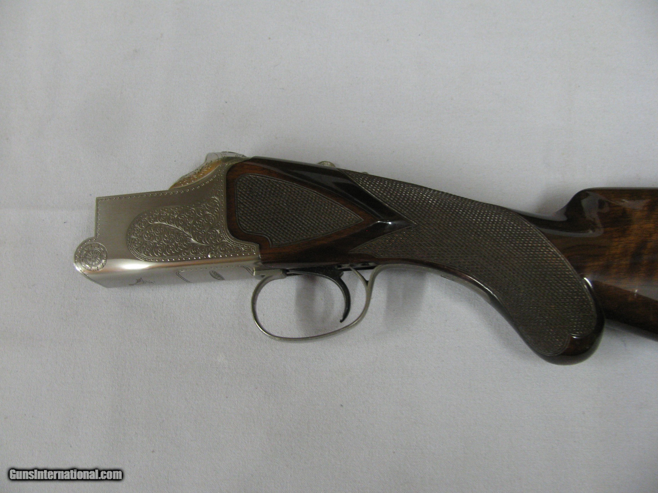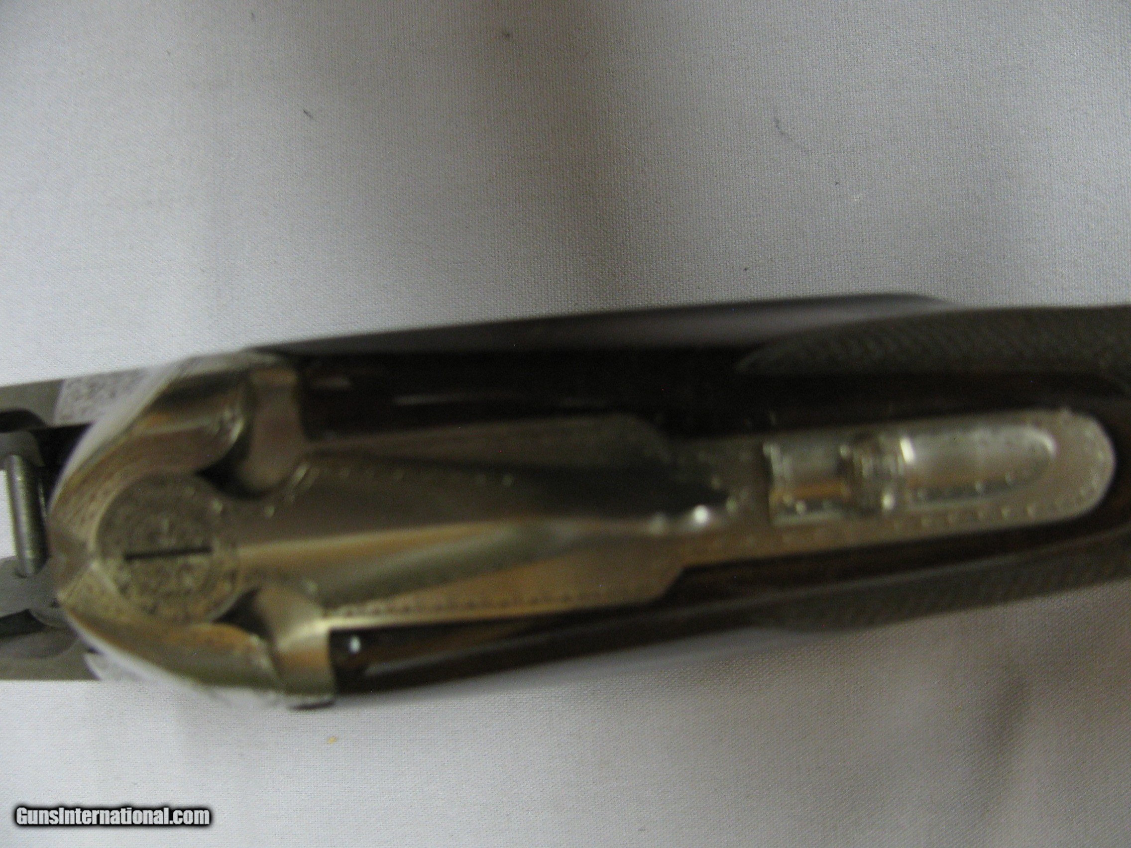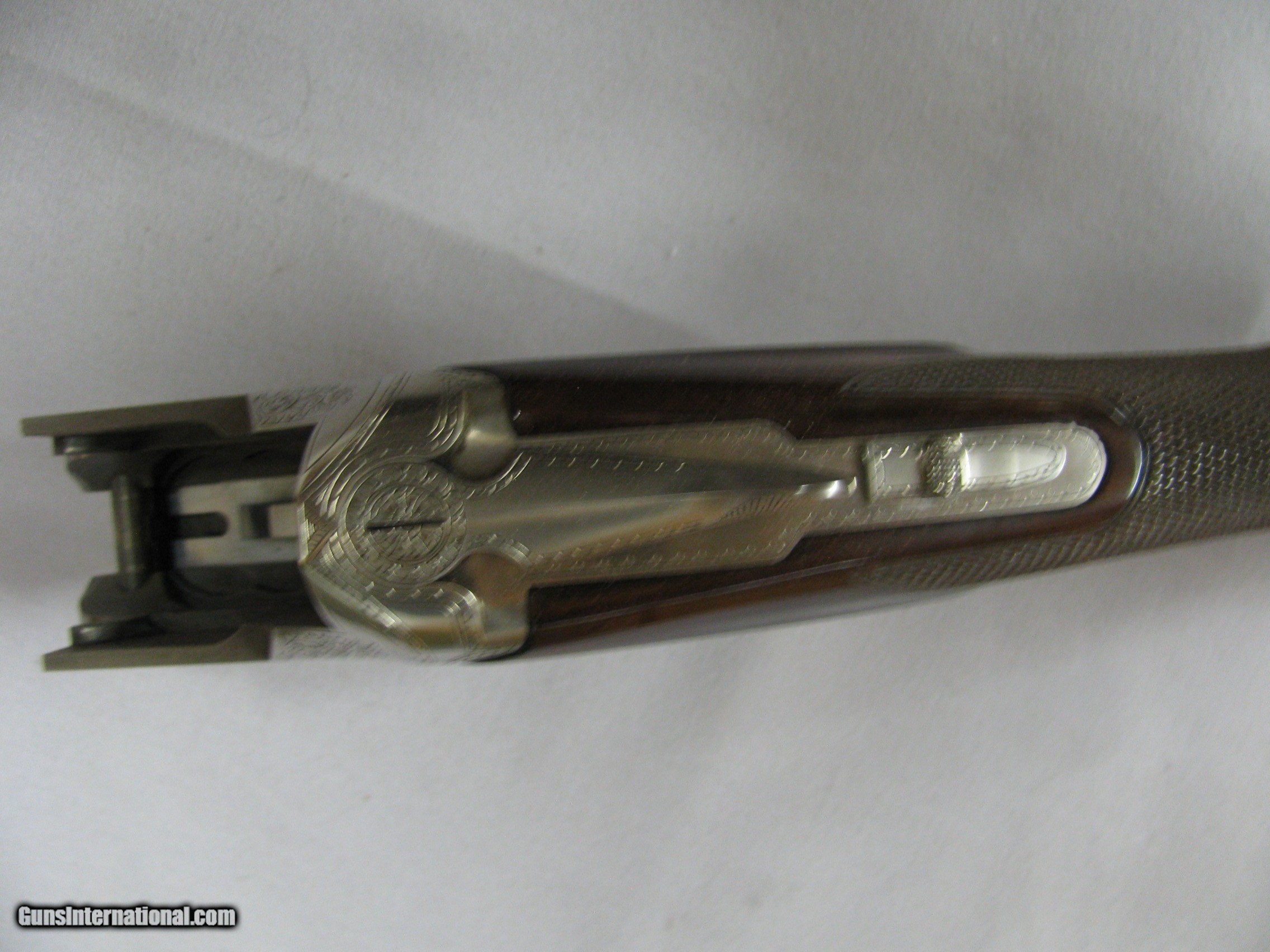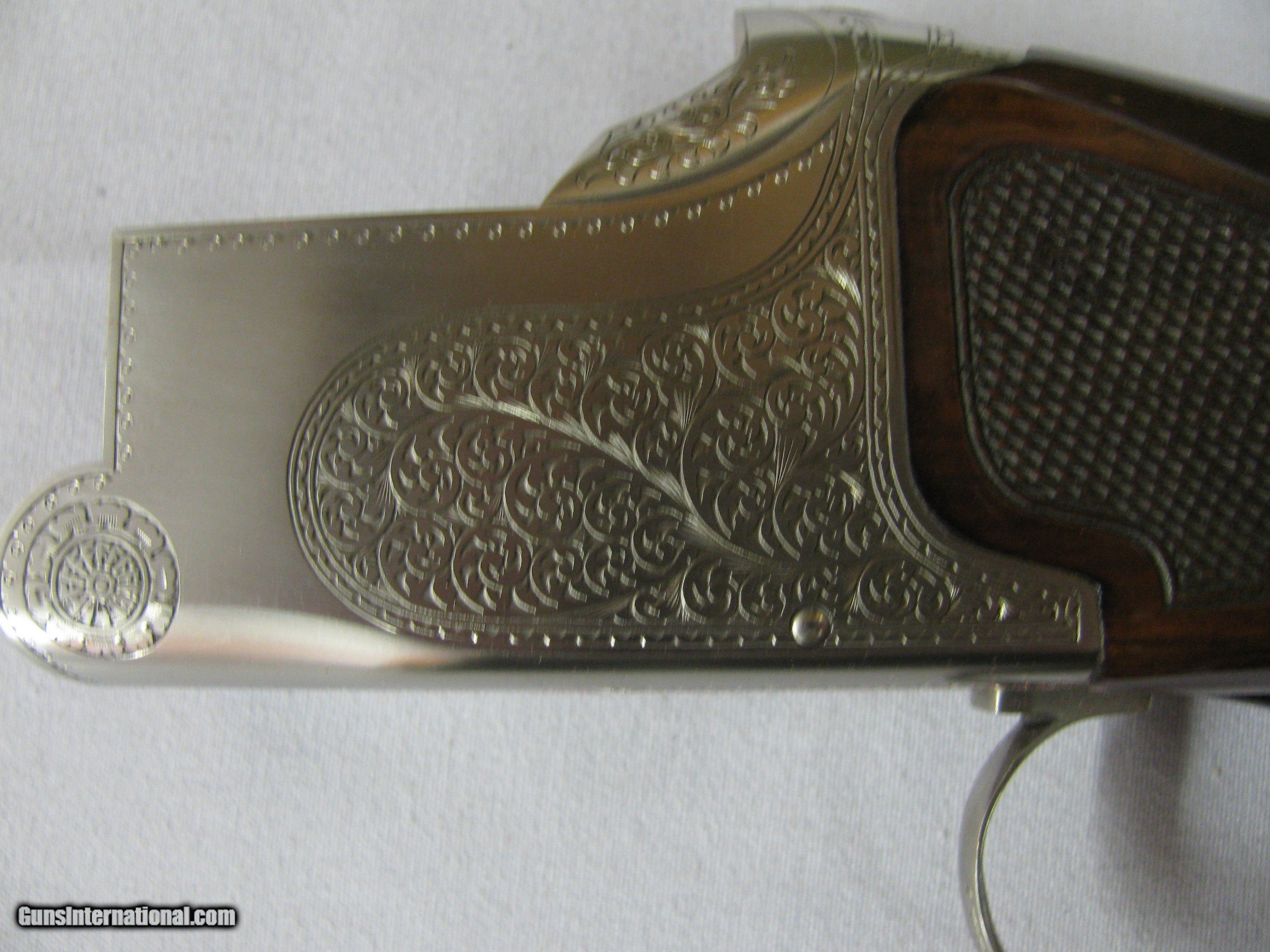 Description: 7736 Winchester 101 Pigeon 12 gauge 28 inch barrels mod/full, AAA++Fancy Walnut tiger striped, ejectors, vent rib, 2 white beads, round knob, rose and scroll engraved coin silver receiver, the early good one with diamond tipped tool engraving, White line pad 14 3/8 lop 98-99% condition, Excellent Winchester case. these are extremely hard to find. SOLD Shotgun Gauge: 12 Gauge |