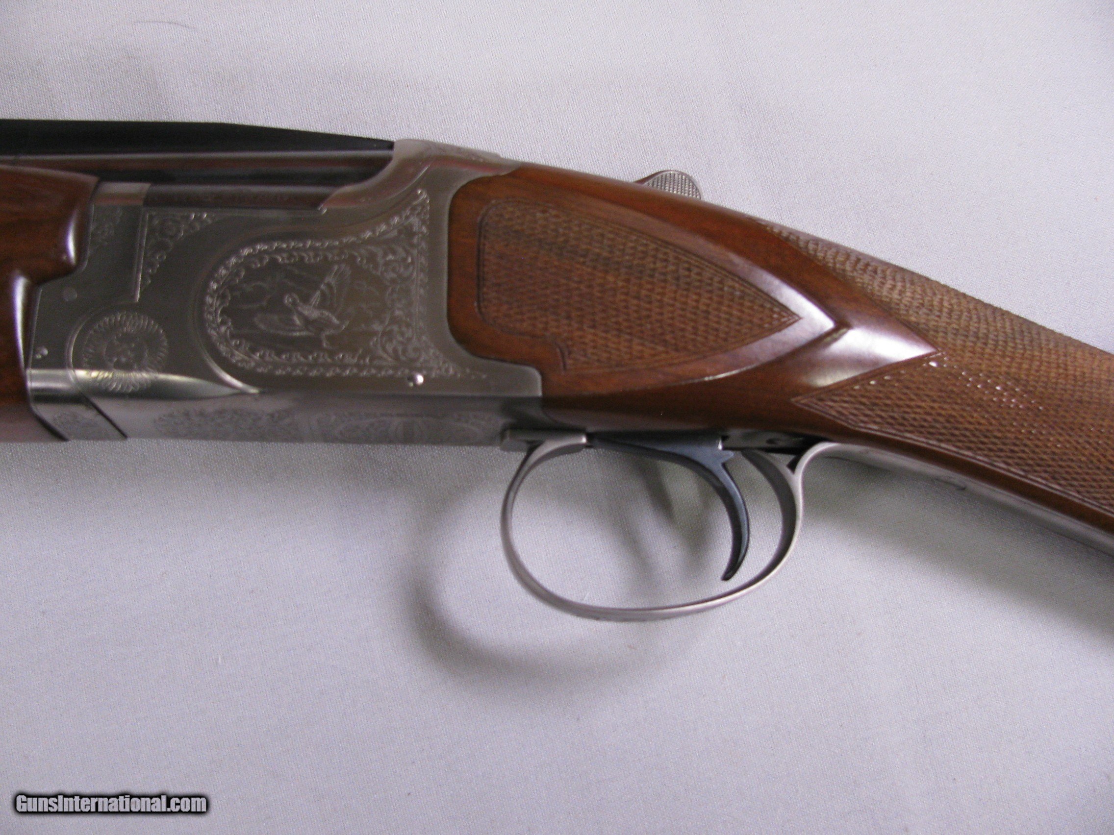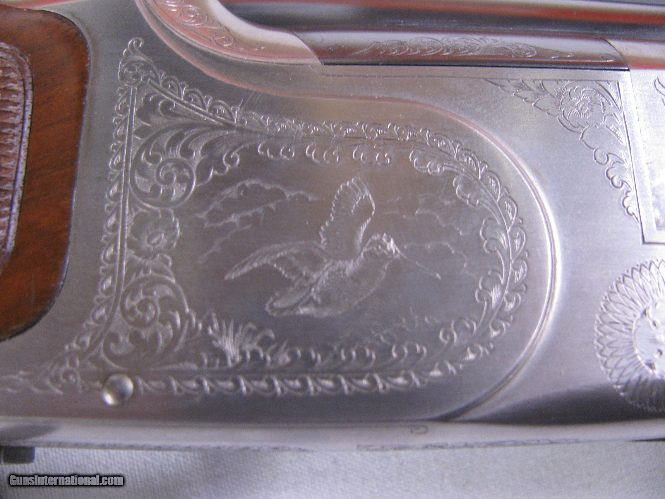 Description: 7754 Winchester 101 Pigeon LIGHTWEIGHT--BABY FRAME-- 28 gauge 28 inch barrels winchokes sk ic m full, wrench, pouch,4 screw chokes, ( very rare) Winchester box serialized to the shotgun.STRAIGHT GRIP, Winchester butt pad, AA+ Fancy Walnut.Quail/Woodcock engraved coin silver receiver,99.9 5 condition. hang tag and pamphlet.one of the rarest configurations, less than 1000 mfg.AS NEW IN BOX NONE FINER. SOLD Shotgun Gauge: 28 Gauge |