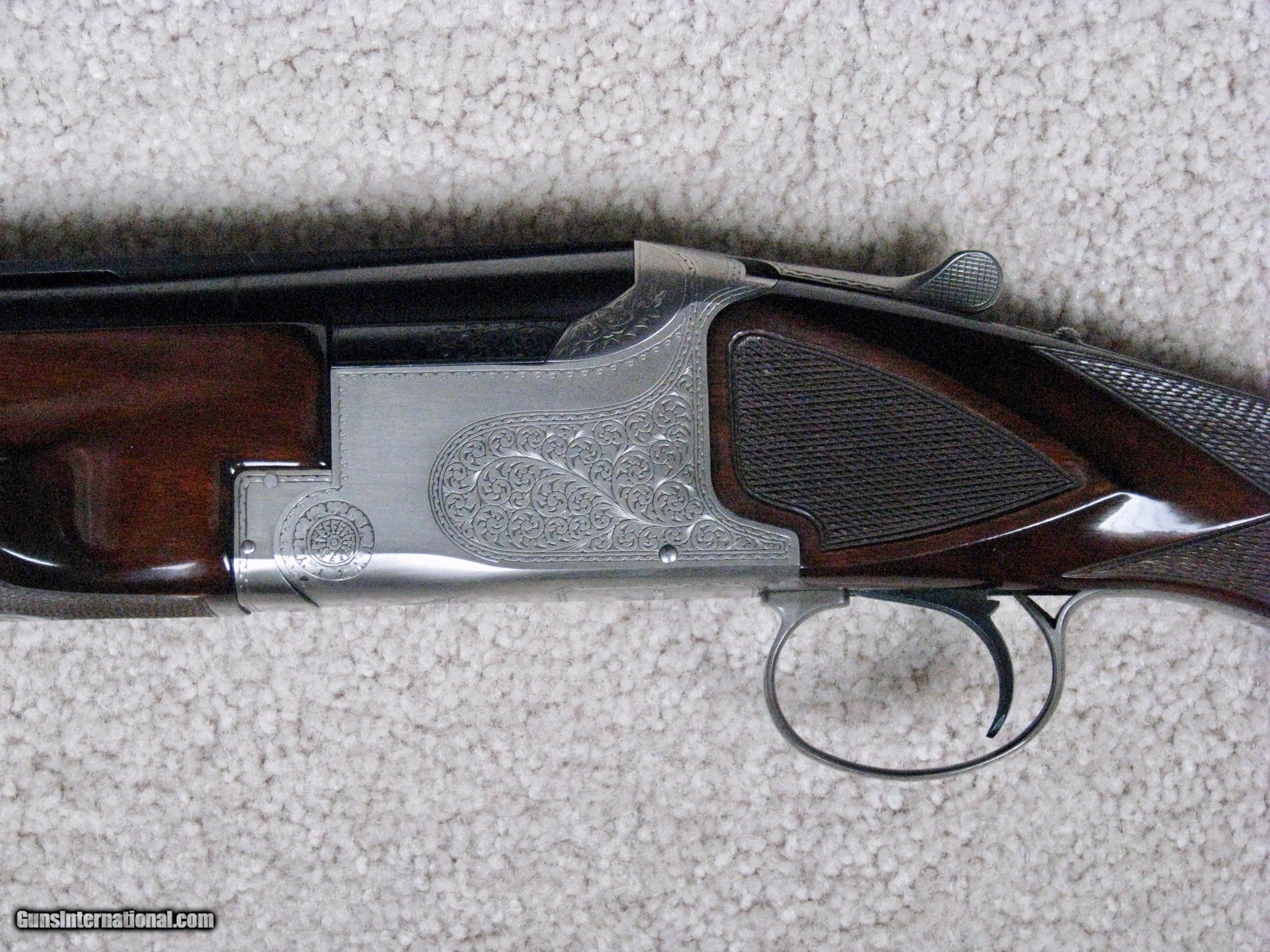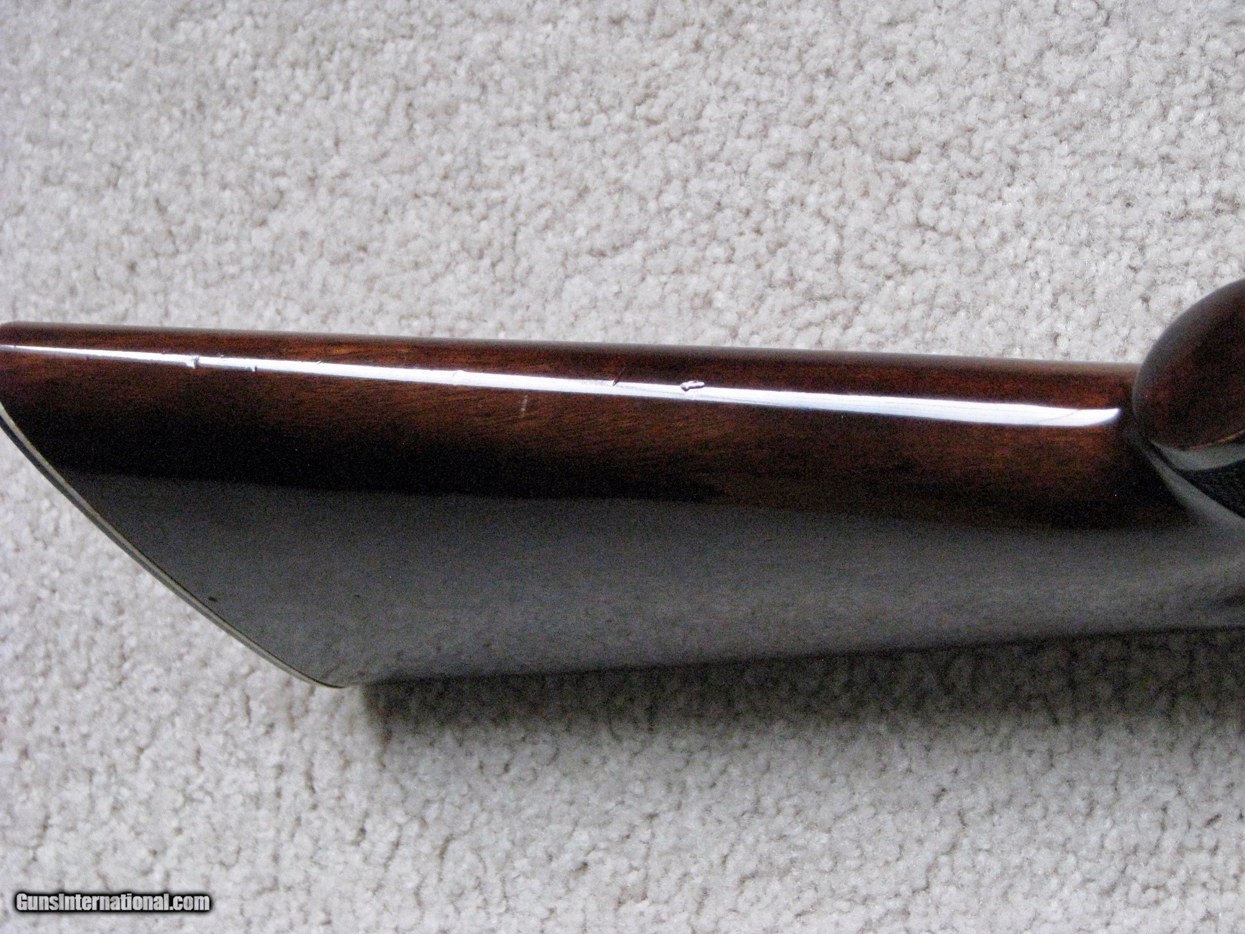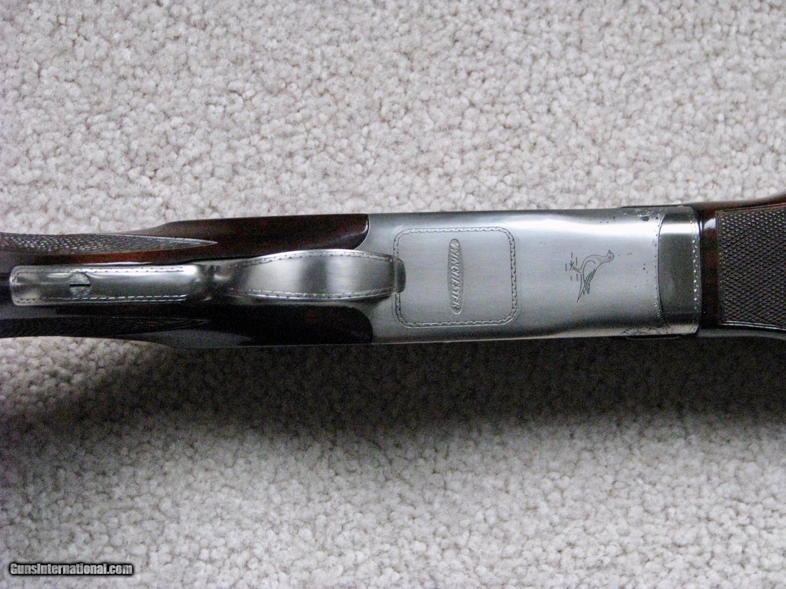 Description: Nice Winchester 101 Pigeon Grade manufactured by Kodensha in Japan around 1980 with a single select mechanical trigger, automatic ejectors, and a vent rib with two beads. Overall condition is 95 percent with some minor handling marks on stock and light rub marks on the right side of the barrels between the muzzle and forend that can only be seen when viewed from the right angle. Rubs don't seem to have penetrated through the blueing. The receiver is silver colored with hand engraving. Winchester 101's are quality shotguns with a reputation for reliability. Stock dimensions are 14 1/4, 1 1/2, 2 1/2 inches and the barrel length is 27 Inches. Shipping and insurance is a flat $40 for lower U S. SOLD Shotgun Gauge: 12 Gauge Manufacturer: Winchester Model: 101 Pigeon Grade Serial Number: PK348XXX Barrel Length: 27 Inches Chambers: 2 3/4 Inches Ejectors: Automatic Condition: 95 Percent Metal Condition: 95 Percent Wood Condition: 95 Percent Bore Condition: Mirror Barrels: Blued Barrel Type: Over & Under Action: Break Open Triggers: Single Select Mechanical Stock: Walnut Stock Comb: 1 1/2 Inches Stock Heel: 2 1/2 Inches Stock Cast: None Fore End: Field Butt Pad: Factory Plastic LOP: 14 1/4 Inches Rib: Ventilated Weight: 7 1/2 Pounds Sights: Twin Beads Manufacture Date: Approx 1980 Chokes: Fixed Skeet Engraving: Hand Engraving Case: No |