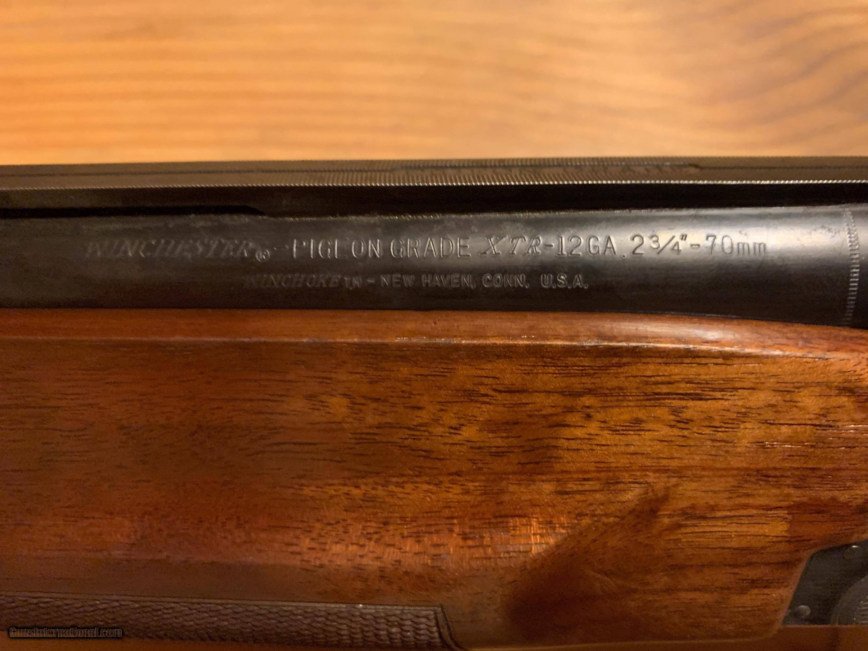 Description: Excellent shooter, beautiful grain, and comes with extra chokes. 30 inch barrel. 2 3/4" chamber. Adjustable cheek riser. Some subtle blemishes in the scrolling on the reciever. Barrel is bright and and exterior is in good to great condition. Comes with 6 chokes, 3 mods, 2 skeet, and 1 full. Recent Nu-line firing pins installed. MUST SHIP TO FFL. ASK YOUR FFL IF THEY WILL ACCEPT SHIPMENT FROM A PRIVATE SELLER BEFORE PURCHASING. SOLD Shotgun Gauge: 12 Gauge Manufacturer: Winchester Model: Pigeon Grade 101 XTR Chambers: 2 3/4” Condition: Good Metal Condition: Good Wood Condition: Excellent Bore Condition: Great Action: Break Triggers: Inertia |