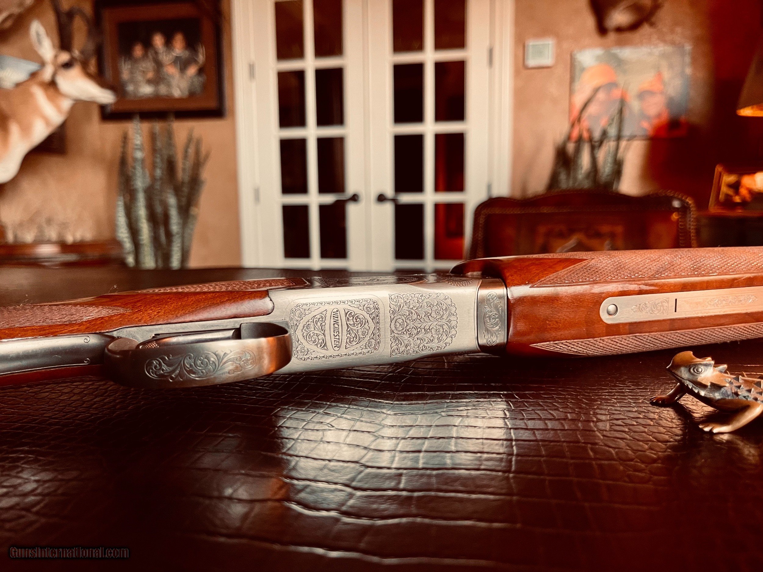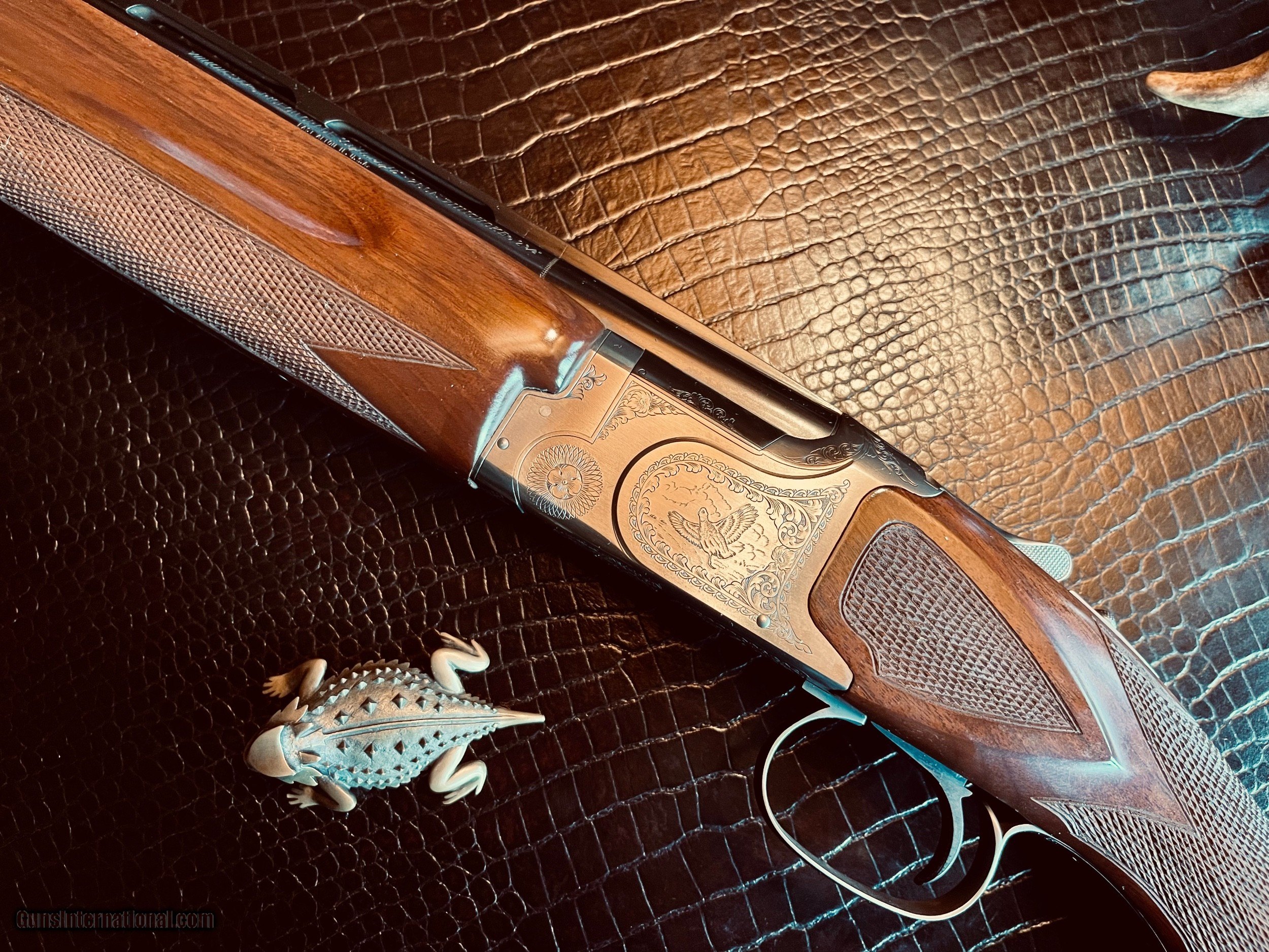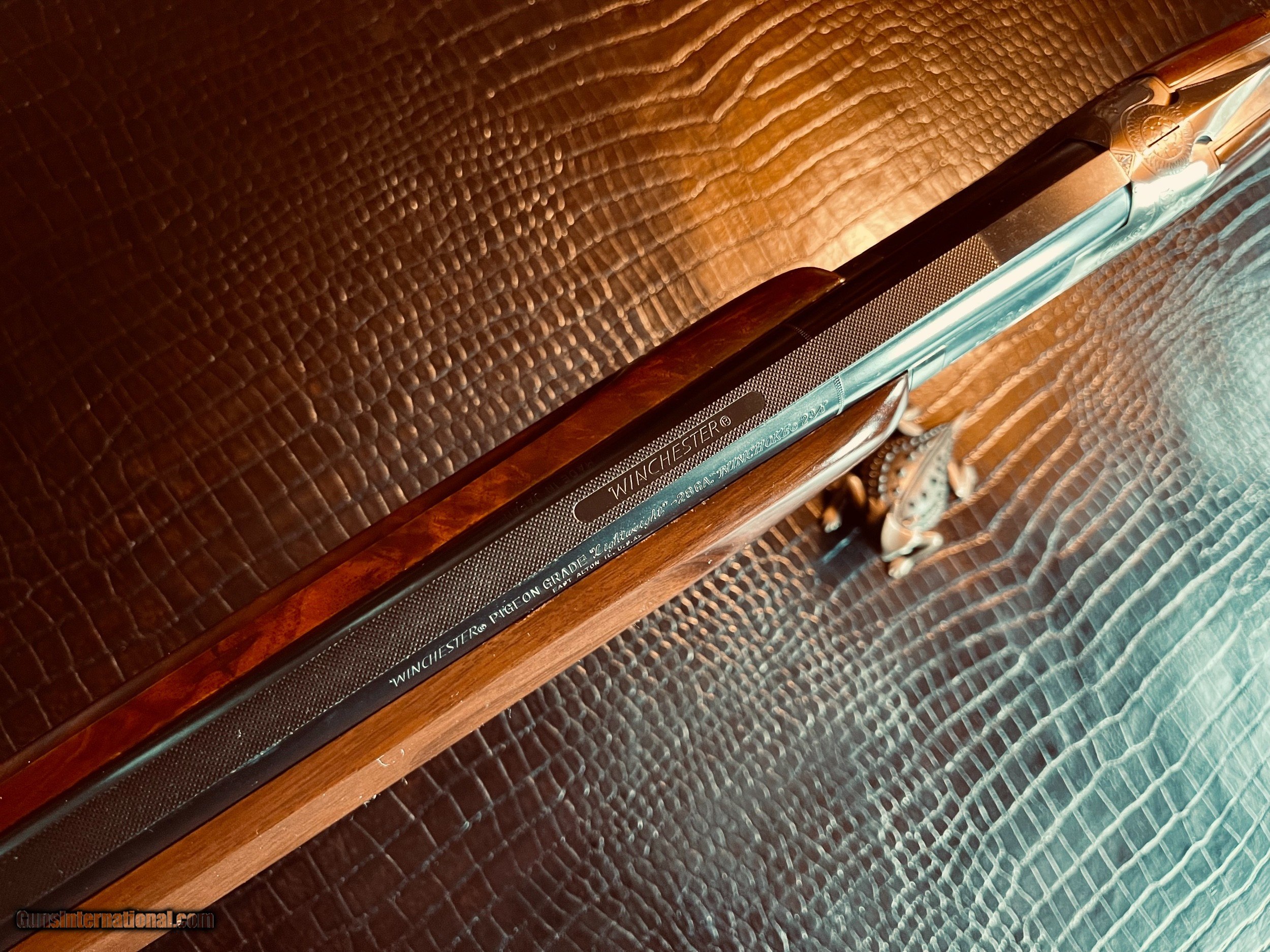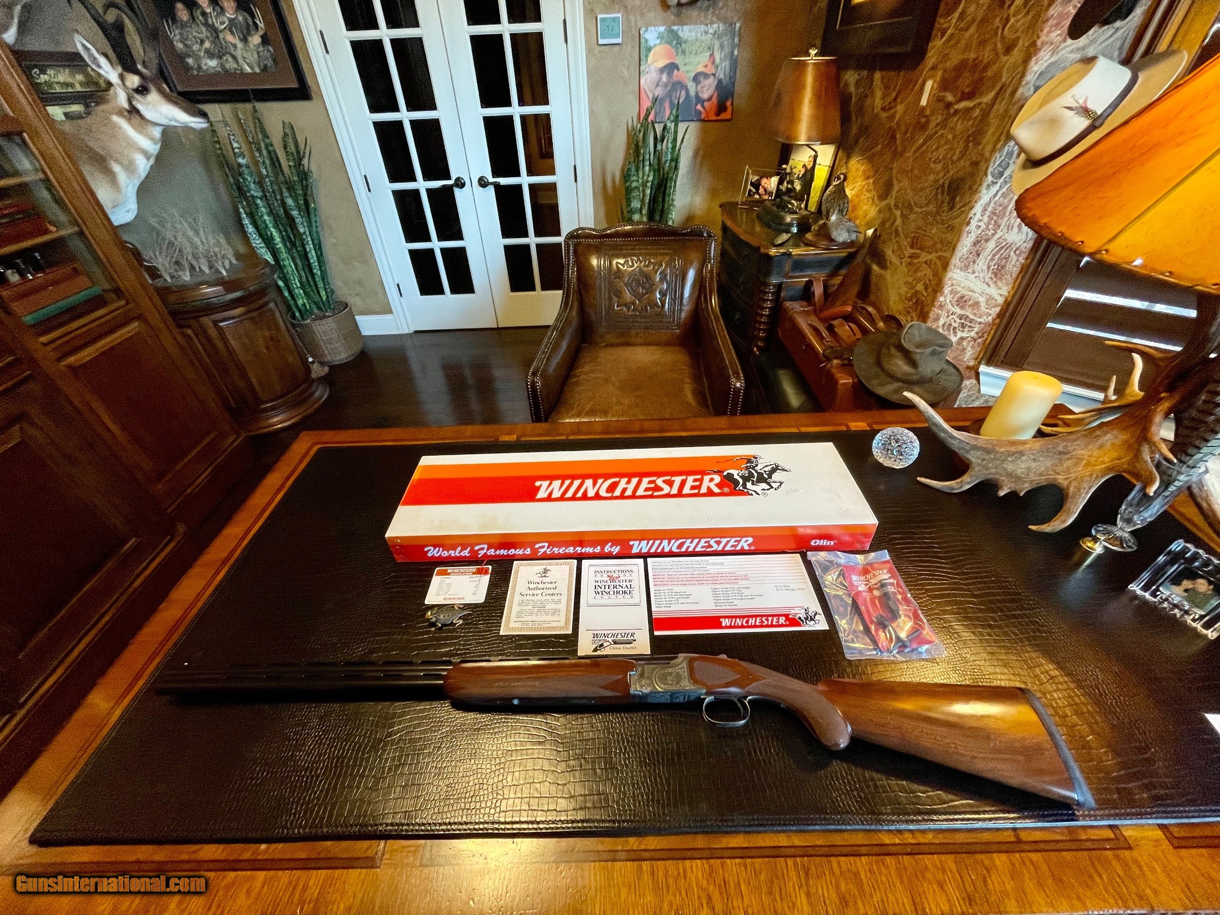 Description: Winchester 101 Pigeon Grade - 28ga - UNFIRED TRUE BABY FRAME NEW IN BOX with proper original matching label - WinChokes - 27” Barrels - WOW! Chokes. Tool. All brochures. Hang tag. Clean original box. This is a treasure for the Winchester Aficionado. Further important notes: the caliper reads 1.225" width of the frame, a proper reading for a baby frame. I cannot find any evidence of this gun being shot, so I consider it to be unfired. Receiver face is clean other than storage marks from being in gun safe assembled. Paperwork is all here. The chokes are all clean and here. The tool is clean. Nothing has been used. The box is 99% condition. This is the COOLEST of the Winchester 101 Pigeon Grades ever made. Slender sleek fast handling gun for the field or a fine collection. Outstanding find! ***SCROLL DOWN FOR SPECS*** Quillen-Worfe Fine Gun Collection & Consignments *****Please read prior to making a purchase*****: