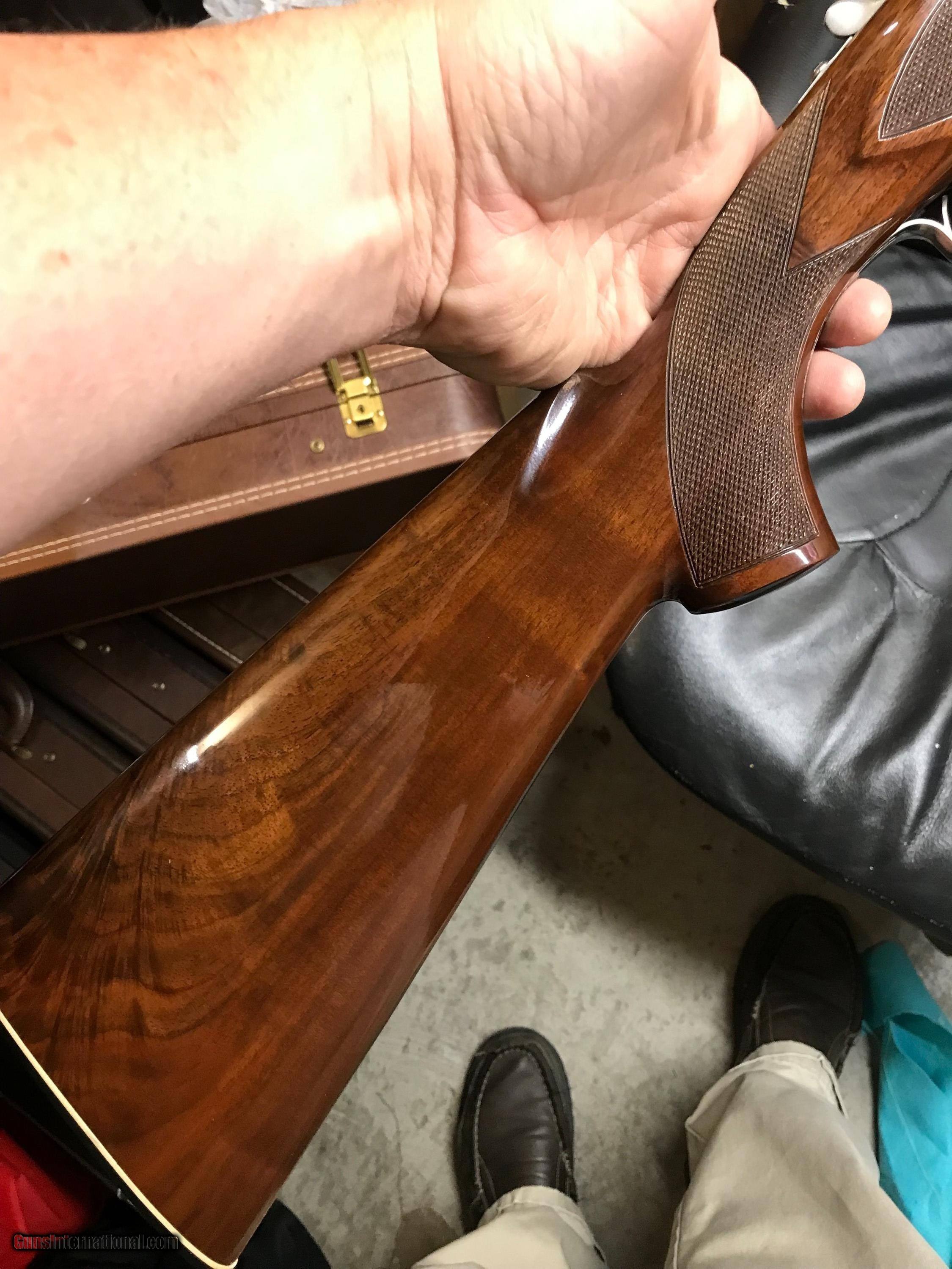 Description: This is one of the most beautiful shotguns I've ever laid my eyes on! This 101 pigeon grade in 20 gauge features ventilated rib skeet barrels, blue finish, high grade wood, and engraving. Comes with a carrying case with Winchester nameplate. An outstanding and stunning piece! Please email with questions. Shipping included. Cards add 3% SOLD Manufacturer: Winchester Model: 101 Pigeon Grade Barrel Length: 27 inch Condition: Used Metal Condition: Excellent Wood Condition: Excellent Bore Condition: Excellent Rib: Ventilated Finish: Blue Sights: Bead Item Location: 37075 |