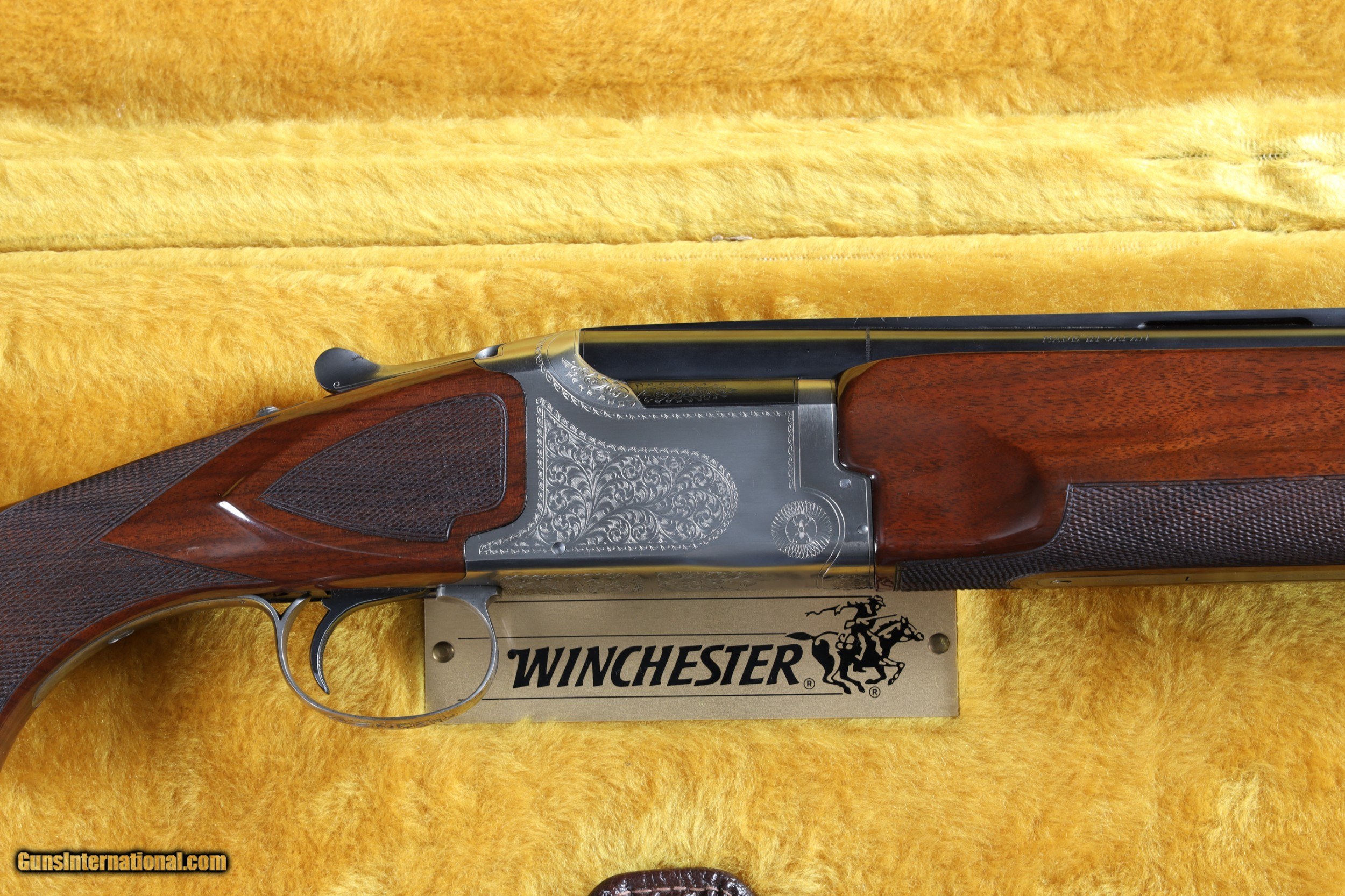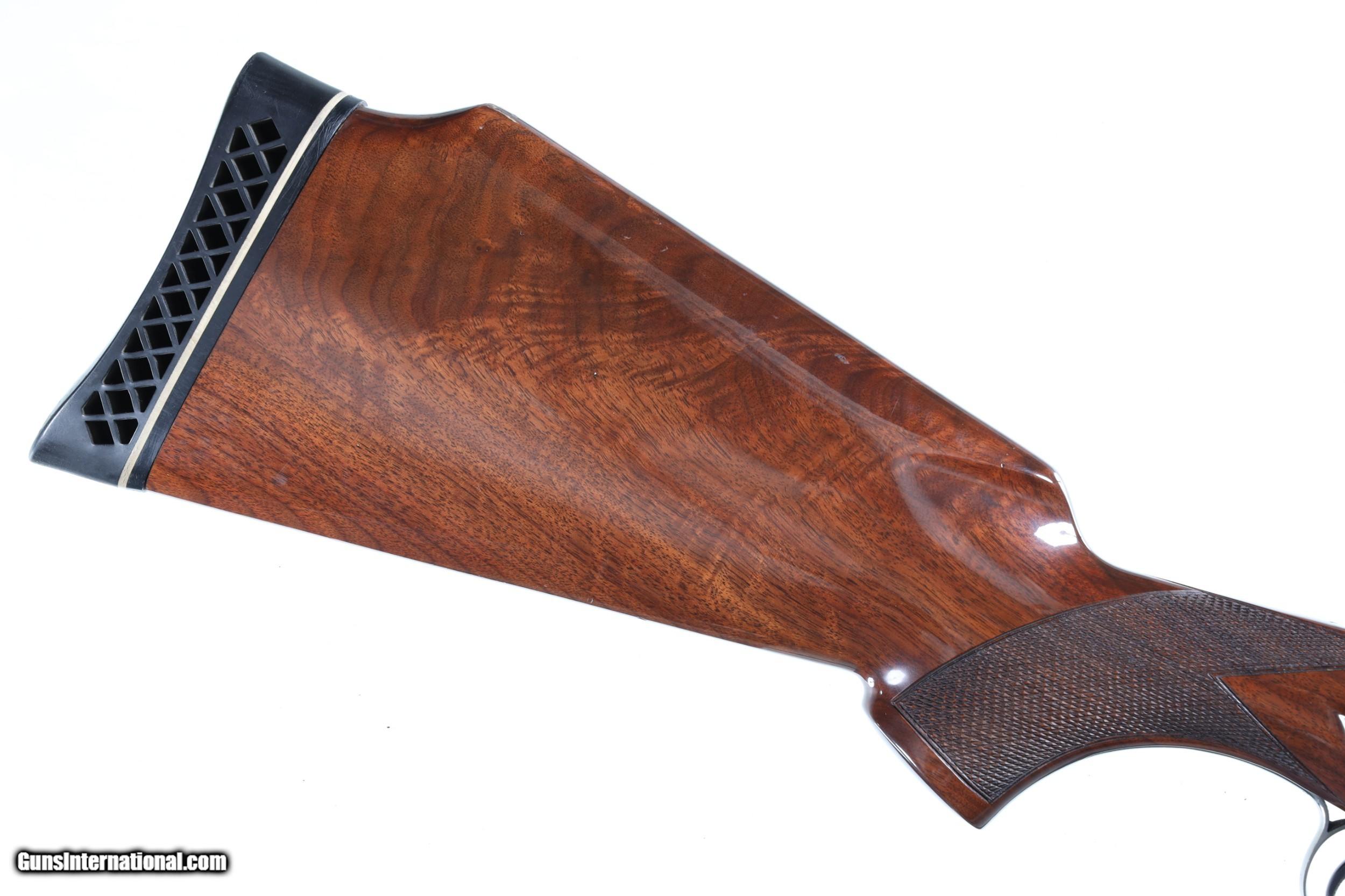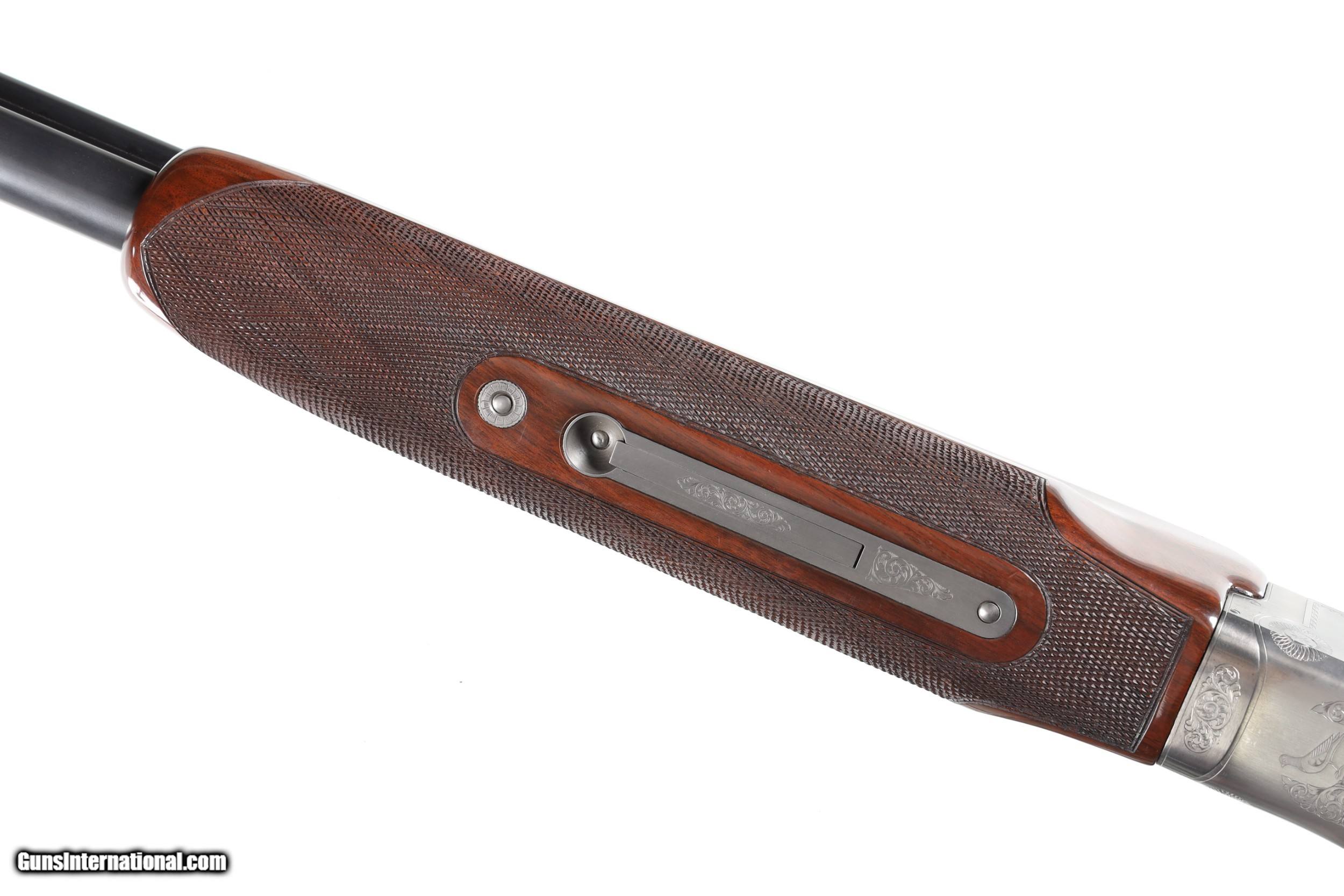 Description: Excellent overall condition. Dual white bead sights on the matted vent rib, chambers marked 2 3/4 inches with automatic ejectors, and WinChoke system (modified/full installed). The coin finished action displays attractive floral scroll engraving with a tasteful use of negative space and a standing pigeon on the underside. The gun features a single trigger and tang mounted safety/selector switch. Beautifully figured, multi-point checkered forend with engraved fittings and pistol grip stock with Pachmayr White-Line ventilated recoil pad. Includes a leather bound takedown case and two extra choke tubes (improved modified and extra full). Stock measurements: 1 3/8 inch drop at comb; 2 1/8 inch drop at heel; 13 3/4 inch length of pull; weight 8 lbs. 6 oz. • Free Shipping, No Credit Card Fees. • Lay-a-way available for this firearm. • 1/3 Down, a 1/3 in 30 Days 1/3 in 60 Days. SOLD Manufacturer: Winchester Model: 101 Pigeon Grade Serial Number: PK457528 Barrel Length: 30 |