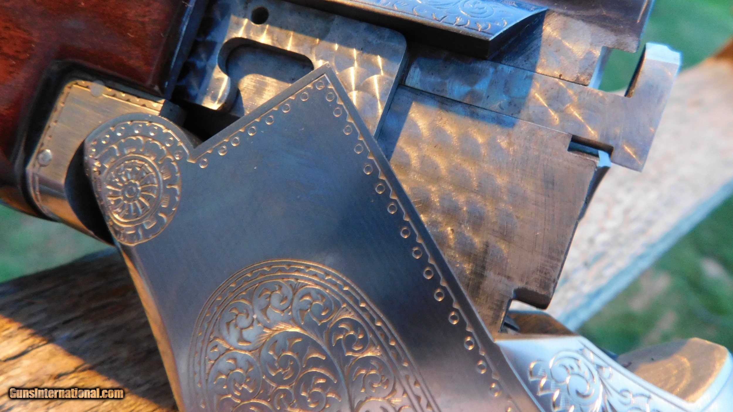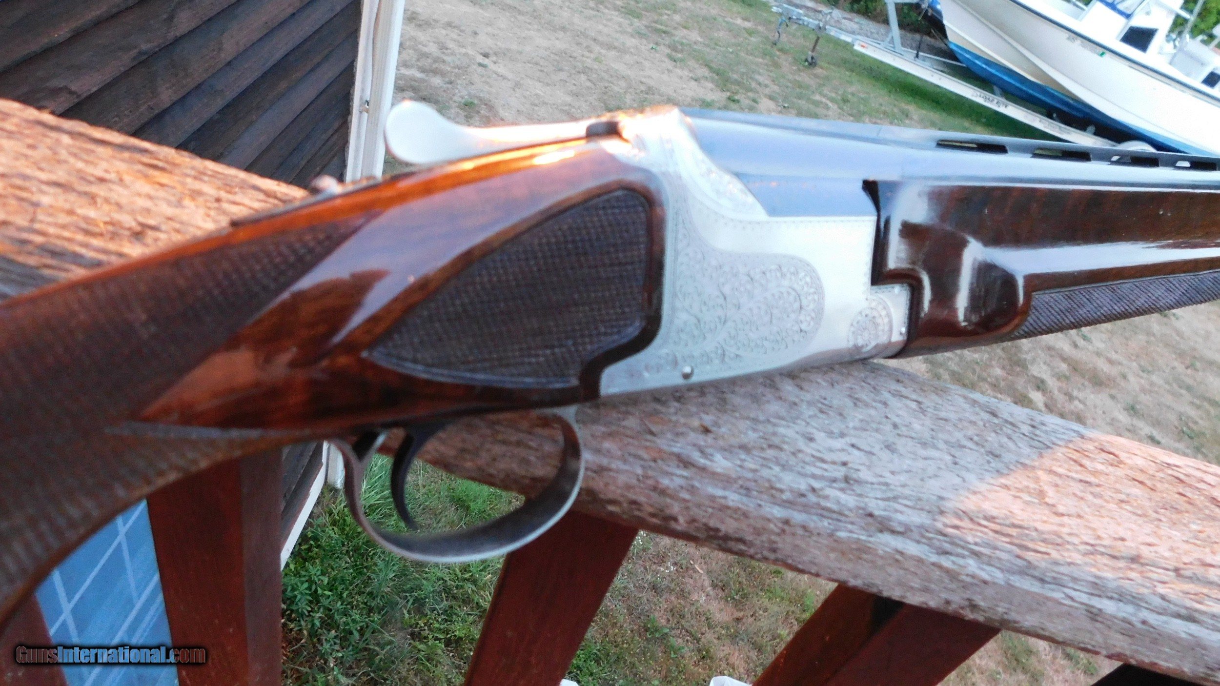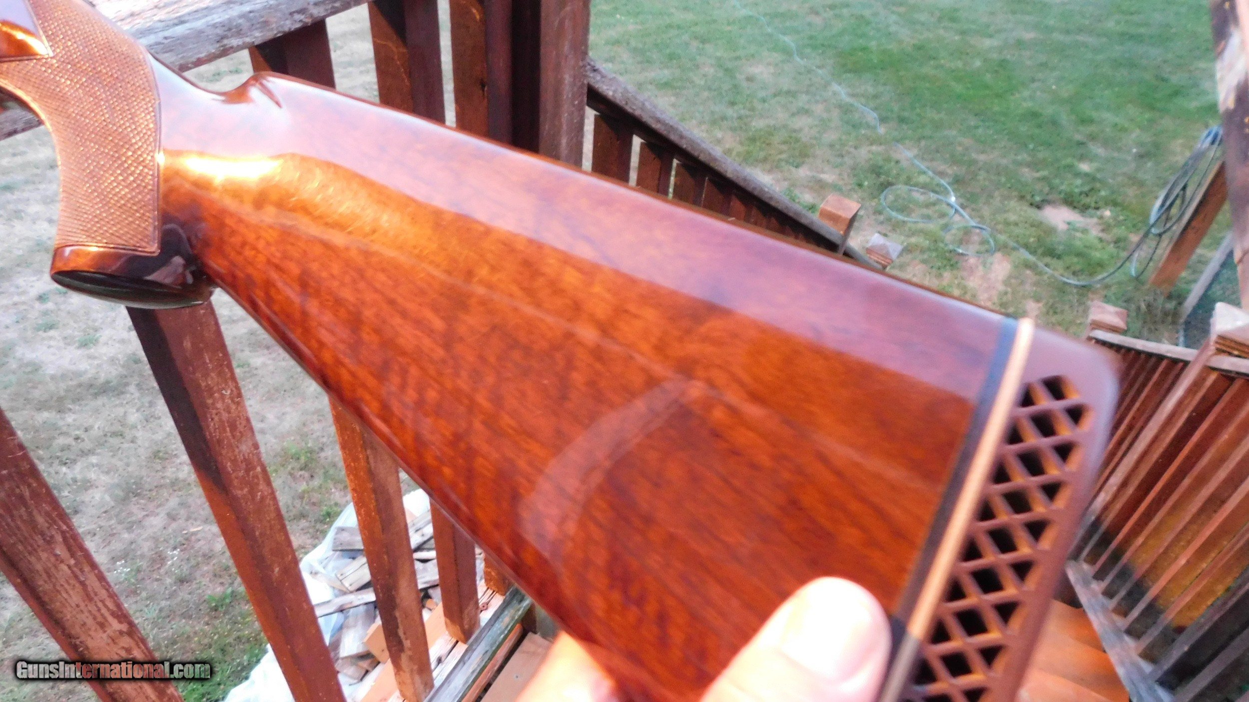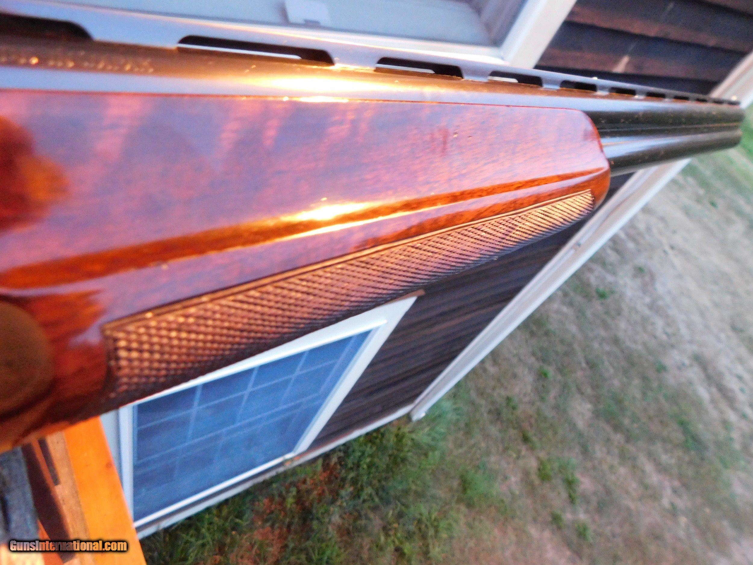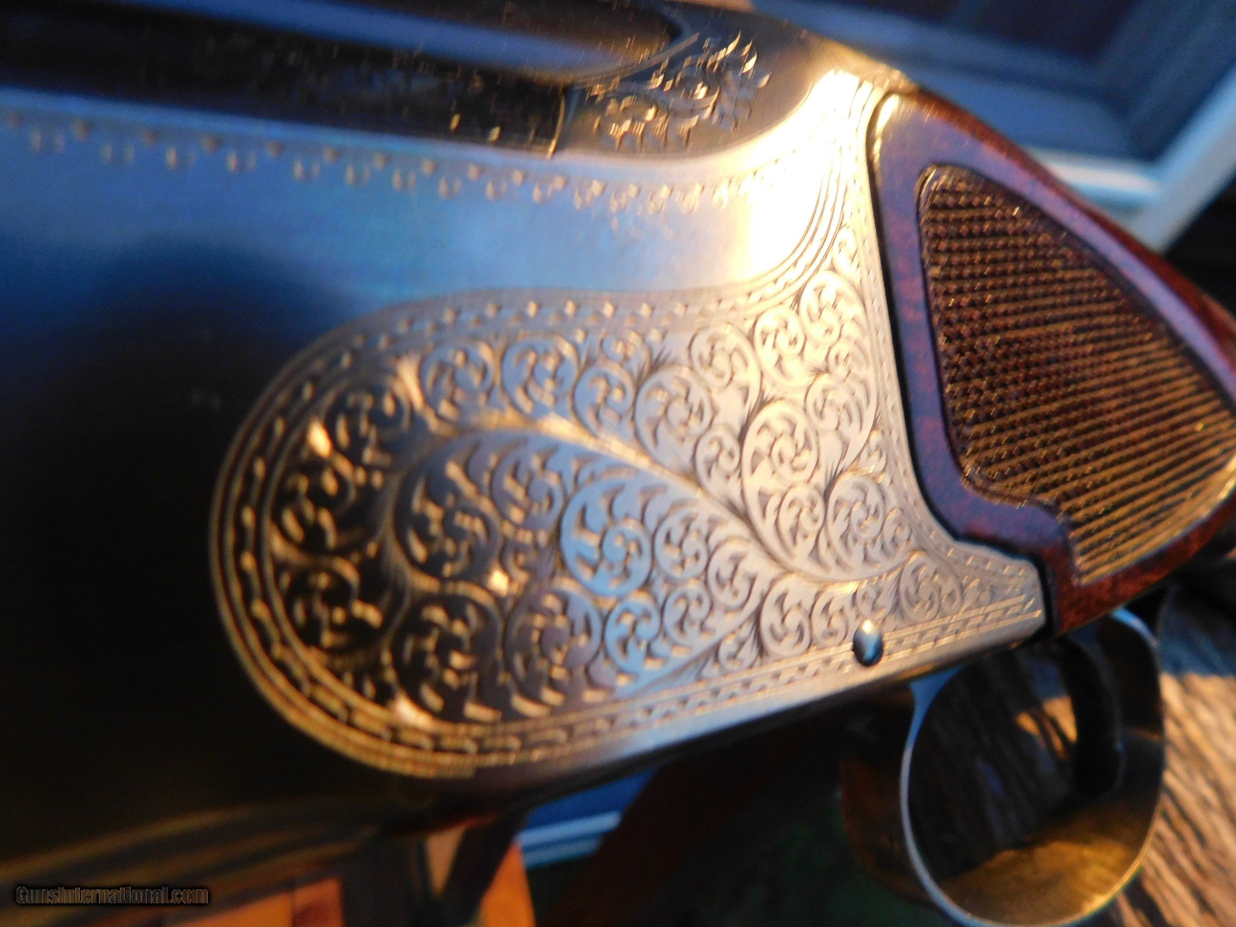 Description: Beautiful gun with beautiful stock set deep rich colors offset by extensive factory checkering on pistol grip and full forend that is so sharp it almost hurts your hand... Characteristic of the Pigeon Grade fully engraved reciever done bright and all the blued areas are also in excellent or better conditon reflecting careful handling and use Barrels are 27" skeet and skeet, and stock:lop 14 1/4 approx to end of pad. This would make an excellent bird or clays gun that anyone would be proud to own. Shipping $ 59.00 PLEASE READ EVERYTHING BELOW IN BOLD: IF IT DOES NOT SAY ."SALE PENDING, UNDER DEPOSIT or ON HOLD"...IT IS AVAILABLE. WE DO NOT REPLY TO INQUIRIES THAT SAY "INTERESTED IN THIS GUN" OR "IS IT AVAILABLE" IF YOU WOULD LIKE TO BUY THIS OR ANY OF OUR GUNS WE SUGGEST YOU PHONE US; WE ARE OFTEN AVAIALABLE LONG HOURS. IF YOU ARE INTERSTED IN A GUN THAT IS UNDER DEPOSIT AND WOULD LIKE TO BE NOTIFIED IF A SIMILAR GUN COMES IN DROP US A LINE AND WE WILL MAKE EFFORTS TO CONTACT YOU WHEN ONE DOES COME IN. WE HAVE OVER 2000 SALES ON ALL SITES WITH AN A+ RATING ON ALL WE ALSO KEEP AN INVENTORY OF OLDER PERIOD CORRECT SCOPES; CALL WITH NEEDS WE MOSTLY PICK VERY CLEAN AND LIGHLTY USED GUNS. WE ARE HAPPY TO TAKE CONSIGNMENT GUNS AND COLLECTIONS OR WILL BUY YOURS OUTRIGHT. WE SOMETIMES ARE EMPLOYED FOR ESTATE PURPOSES AND VALUATIONS. CT RESIDENTS MUST CONTACT US TO UNDERSTAND OUR IN STATE TRANSFER POLICIES. PAYMENT USPS MONEY ORDER ONLY AT THIS TIME. ( WE CAN TAKE A DEPOSIT WITH A CARD BUT THE GUN MUST BE PAID WITH A USPS MONEY ORDER) IT IS THE BUYERS RESPONSIBILITY TO GET US A COPY OF YOUR RECEIVING FFL'S LIC AND A COPY OF YOUR PHOTO ID BEFORE THE GUN SHIPS YOU MUST CALL OR CONTACT YOUR FFL.WE DO NOT CALL FOR YOU UNLESS THEY RQUIRE IT. LAYAWAY PURCHASES NOT COMPLETED ON ANY RETURNED ITEM UNLESS NOT AS DESCRIBED OR DAMAGED ARE SUBJECT TO A 10% RELISTING/RESTOCKING FEE AND MUST BE RETURNED WITH NO NEW MARKS OR SCRATCHES, SENT BACK INSURED, PRIORITY SIGNATURE REQUIRED. ALL INFORMATION CONTAINED HEREIN IS BELIEVED TO BE ACCURATE BUT IS NOT GUARANTEED. WITH ANY OLDER OR USED GUN IT SHOULD BE EXAMINED BY A GUNSMITH OR QUALIFIED EXPERT PRIOR TO USE SOLD |