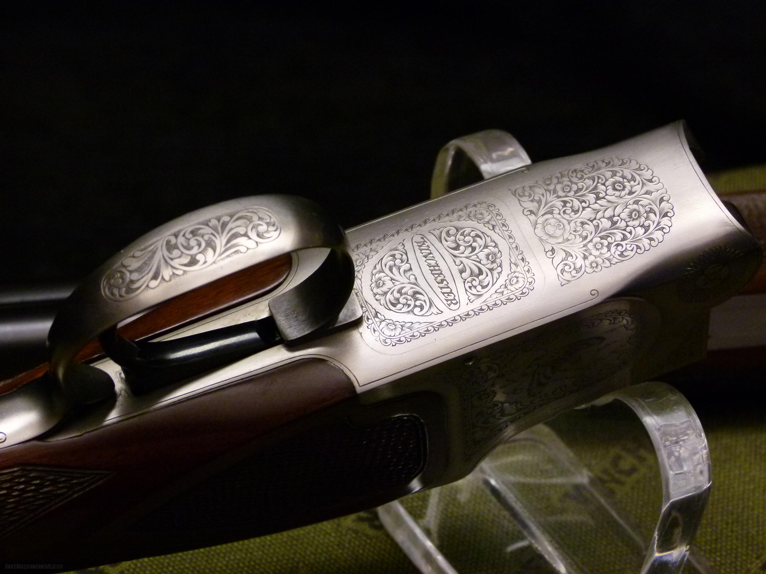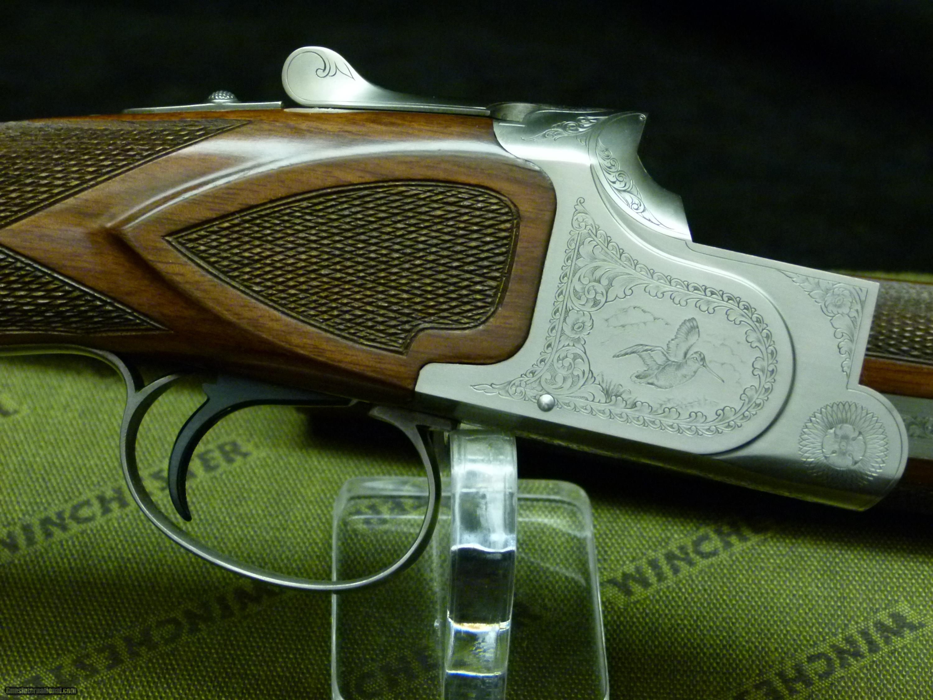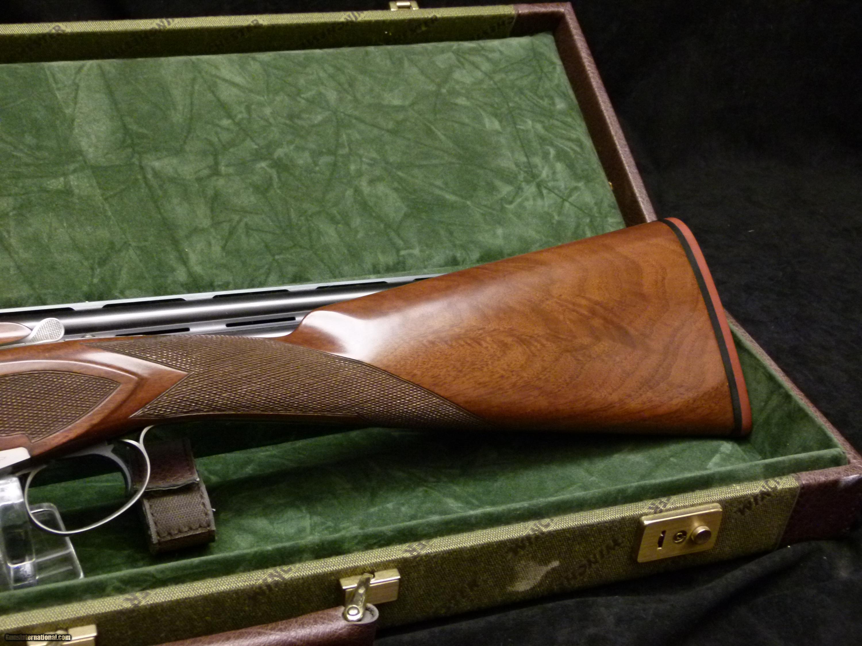 Description: Winchester Model 101 XTR Featherweight 20ga, 25 1/2" choked M/IC w/ vent top and side ribs, nice walnut checkered straight hand grip w/ checkered side panels, checkered Schnabel forend, coined finish receiver with game scenes. 97% overall with some handling marks in stock, but metal is near perfect. SOLD Manufacturer: Winchester Model: 1010 XTR Featherweight Serial Number: PK277xxxC Chambers: 3 Ejectors: yes Condition: 97% overall Metal Condition: 100% Wood Condition: 97% Bore Condition: excellent Barrels: 25 1/2 Barrel Type: mono-bloc Action: BLE Triggers: SST Gauge Info: 20ga Stock: straight hand Stock Drop: 1 7/16 Stock Heel: 2 3/16 Stock Cast: neutral Fore End: Schnabel Butt Pad: thin red factory pad LOP: 14 1/8 Rib: vent Finish: coined Weight: 6 lbs. 5 oz. Sights: single white bead Manufacture Date: disc. 1987 Chokes: fixed Choke Left: IC Choke Right: M Engraving: game scenes Case: factory |