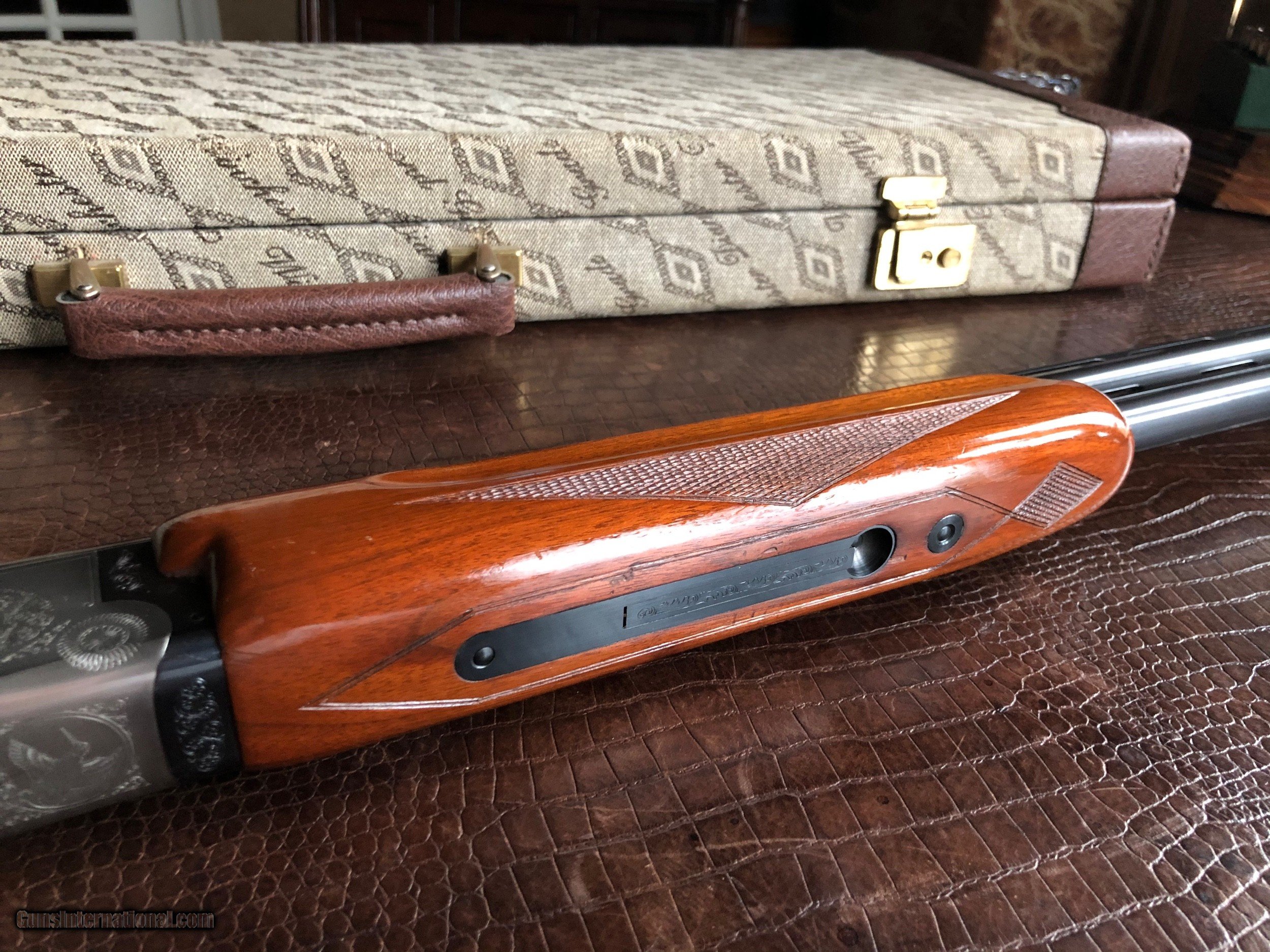 Description: Winchester 101 XTR Lightweight 20ga - 27” - Win Chokes F,M, IC, SK,SK - Winchester Diamond Grade Case - 14 1/8 x 1 3/8 x 2 1/8 - 6 lbs 10 ozs - field evidence on wood - metal and bluing look great - Lever Right of Center - mid bead and sight bead are white - in great shape! *****SPECIAL NOTE***** 1. I am a reasonable man – I encourage you to make reasonable offers on my listings. At times, there is some flexibility in pricing – other times there is not. I have been collecting guns since 1988 – so I have amassed quite a covey of what I consider to be some very fine guns and some utility guns. Feel free to call me, unlike most gun dealers – I am easy to talk to and will answer the phone on weekends and late evenings (not after 9PM CST). 2. I DO NOT ACCEPT TRADES 3. I do provide LAY-A-WAY plan, please inquire about my terms if you have a need – glad to do it when I can. 4. My collection consists of many guns that were bought from individuals – that means **I BUY GUNS** but I only buy clean used guns with collectibility. In particular - **I BUY SHOTGUNS** 5. ALL OF MY TRANSACTIONS ARE DONE THROUGH MY FFL with whom I have a very solid relationship. If you buy a guns from me, you’ll pay them, they will ship to your FFL of choice and all dealings will be with them post receipt of funds. They are a high end boutique gun dealer in the Texas Hill Country and can accommodate the entire transaction. If you live in Texas and want to drive to see one of my guns, reach out to me to discuss making an appointment with my FFL – I do not show guns at my home nor do I meet guys at public locations for viewings or sales. ALL GUNS ARE LEGALLY TRANSFERRED through my FFL – there are NO EXCEPTIONS. 6. Certified funds are preferred – if you send a personal check for payment the FFL ships one week after receipt. Certified funds payments – shipments are done next business day. NO CREDIT CARD payments are accepted. 7. I encourage you to shoot the guns you buy from me – so during your 3 day inspection – shoot the gun. Make sure it is operating in the manner you expected. If you are not happy – return the gun for a full refund except shipping costs. SOLD |