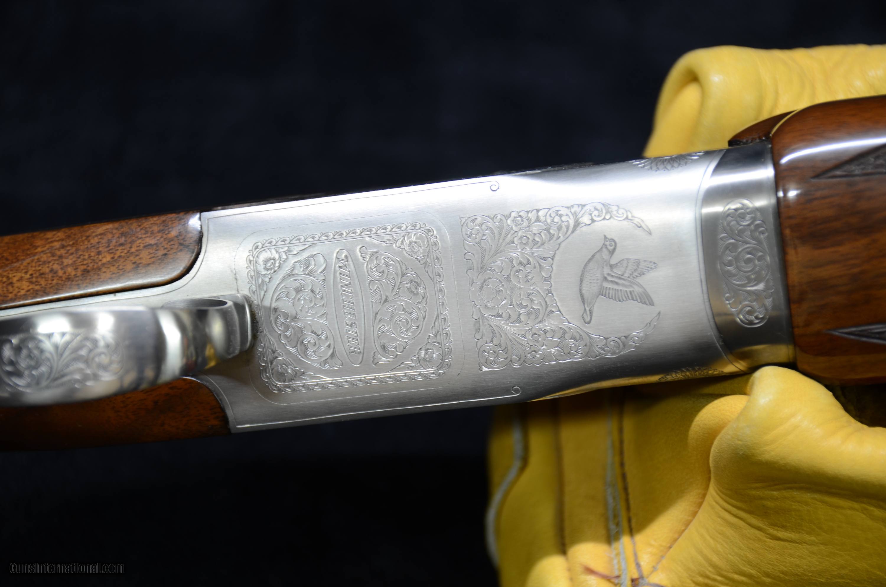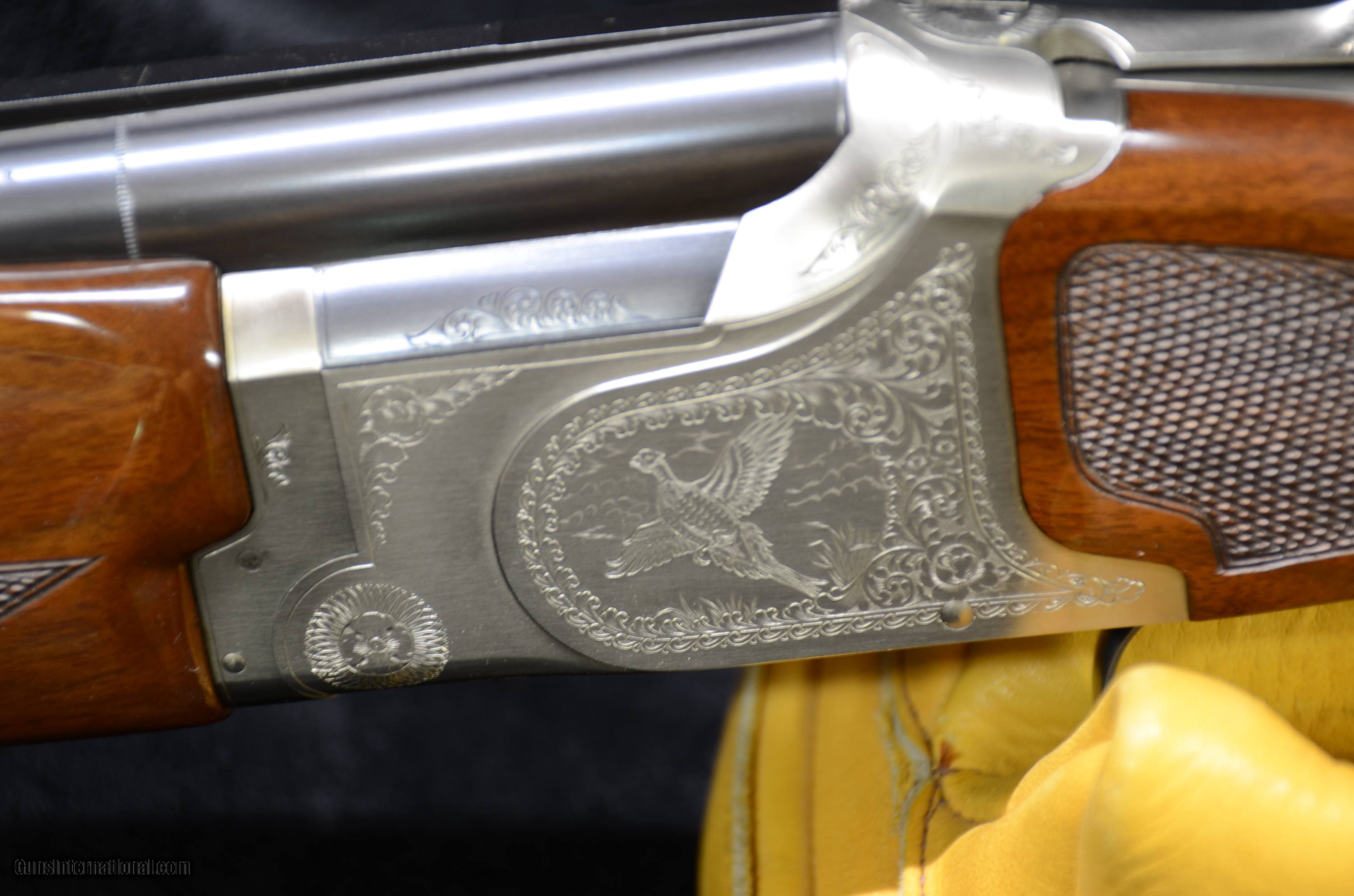 Description: Winchester collectors & Bird hunters a beautiful Winchester Pigeon Grade XTR Lightweight - Winchoke Field Gun. This shotgun handles both 2 3/4 & 3" shells, also included are the original factory box & hang tags + original hard case + extra set of Winchokes and 3 Carlson's extended ported chokes. 1- LM, 2- SK Condition is 99%+ , action locks up tight. SOLD Manufacturer: Winchester Model: PL27FW Chambers: 2 3/4" & 3 Ejectors: yes Condition: 99%+ Metal Condition: Excellent Wood Condition: Excellent Bore Condition: Excellent Barrels: 27 Gauge Info: 12ga Stock Comb: 1 1/2 Stock Heel: 2 1/4 Butt Pad: Winchester LOP: 14 1/8 Rib: yes Finish: Silver & Blue Weight: 7lbs Sights: 2 Beads Chokes: Winchoke Engraving: Yes Extras: Chokes Case: Winchester |