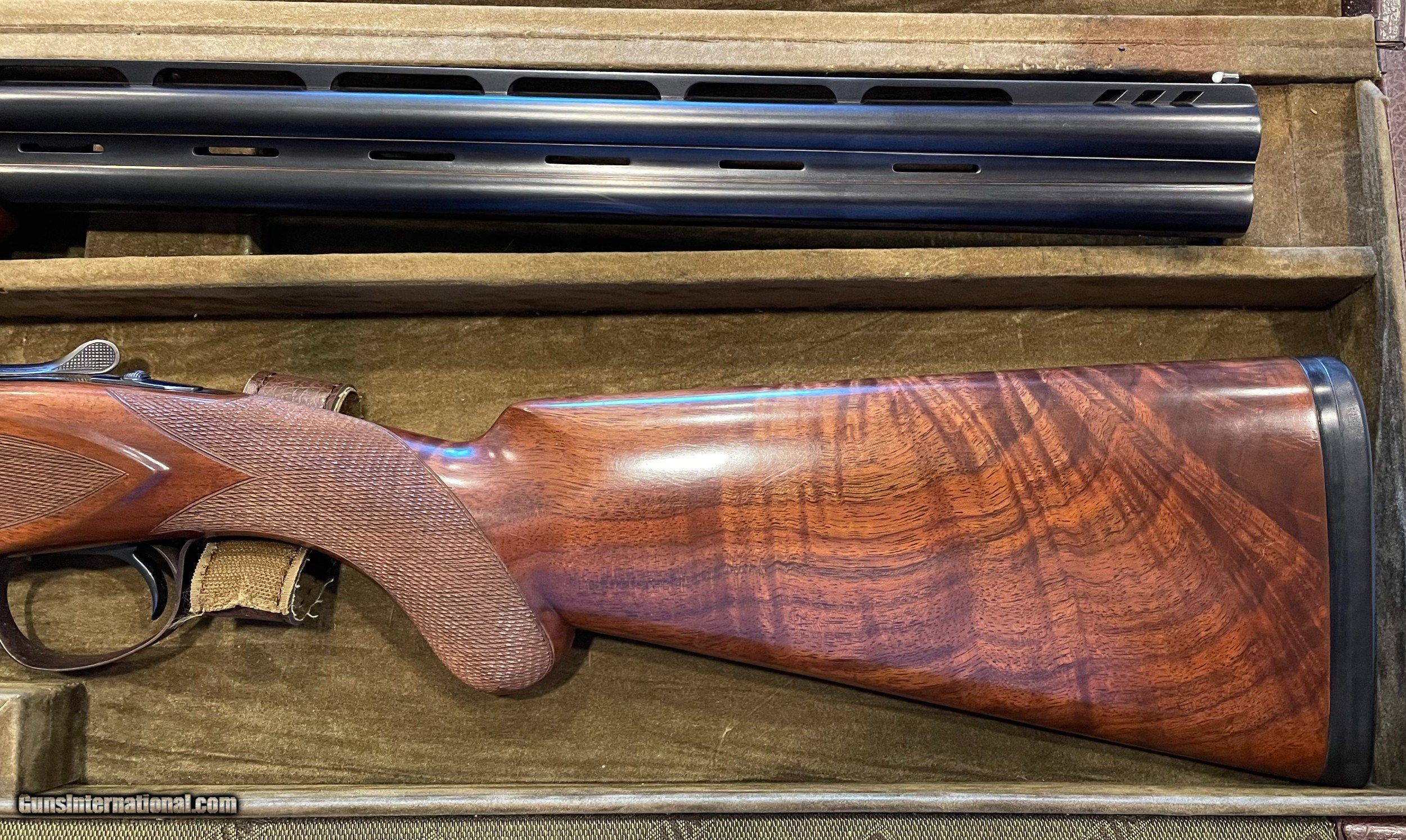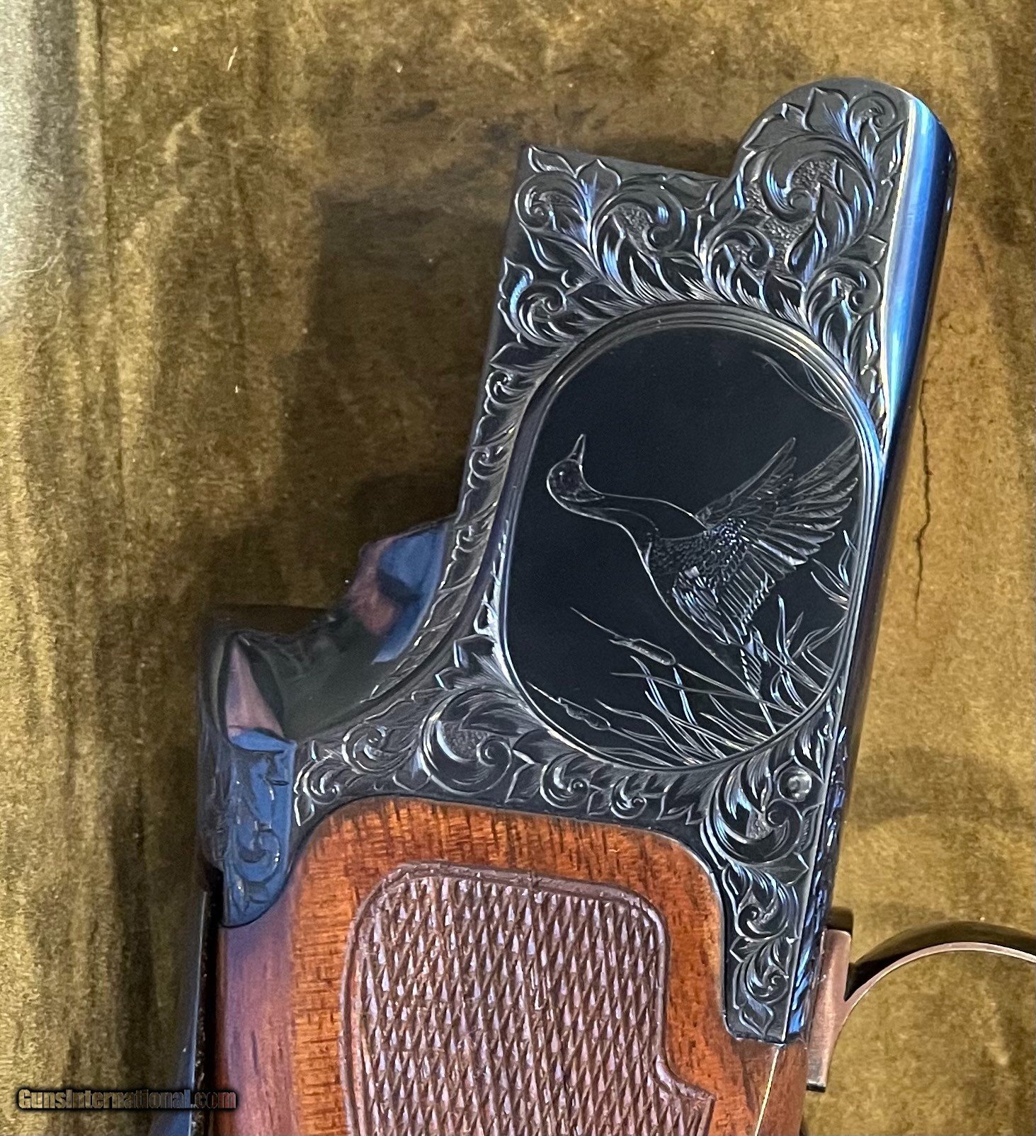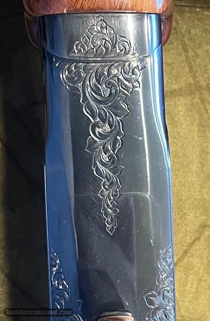 Description: Winchester Model 101 Pigeon Grade XTR Lightweight 20ga. This gun has a blued reciever with one of a kind engraving. It has very deep scroll engraving on both sides with a flying duck on the right side. This was one of the last 101's produced by Winchester. It was one of the few guns to have been sold in the white. It was later custom engraved and blued. The engraver did not sign the gun and I have no paperwork to show who engraved the gun. Round knob pistol grip stock with but pad. Full vent rib barrels with winchocks. Comes with Winchester hardcase. For more information call or text 229-567-1002. SOLD Shotgun Gauge: 20 Gauge |