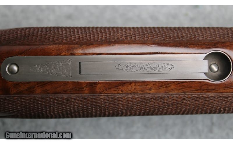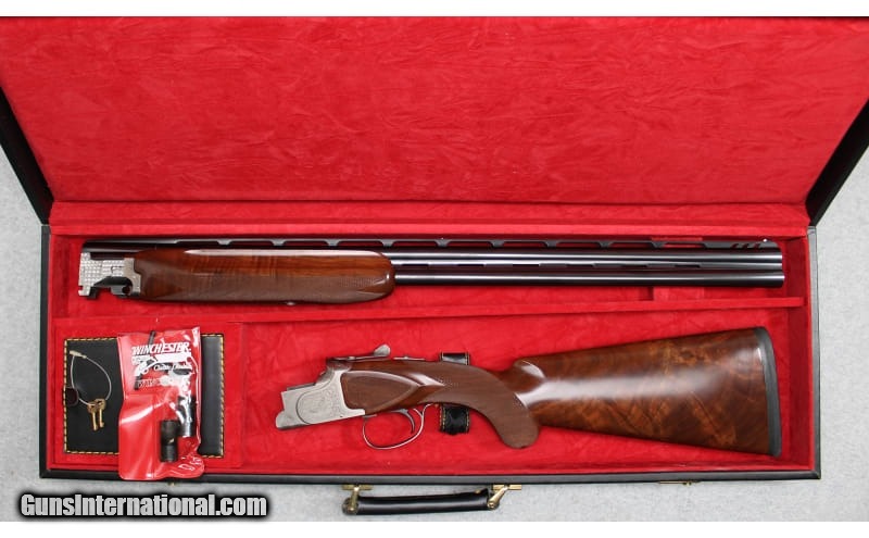 Description: Winchester Model 101 Pigeon Grade "Lightweight" over/under shotgun chambered in 20 gauge. Features include white front and mid-bead sights on a ventilated full rib and 2-3/4 or 3 inch chambers with automatic ejectors. Removeable Winchokes with Improved Cylinder and Skeet installed. Standard Pigeon Grade engraving on the receiver with a single selective trigger and tang mounted safety/selector switch. Checkered forearm and buttstock with a solid rubber Winchester recoil pad. Comes with a Winchester hard case and extra chokes. 20 Gauge SOLD Chambers: 3 inch Metal Condition: Very Good with Minor Handling Marks Wood Condition: Very Good with Minor Handling Marks Bore Condition: Bright And Clear with No Pitting Barrels: 27 inch Triggers: Single Stock Dimensions: 14 inch LoP Fore End: Checkered Beavertail Butt Pad: Solid Rubber Weight: 6 lbs 13 oz Item Location: Fort Worth, TX |
