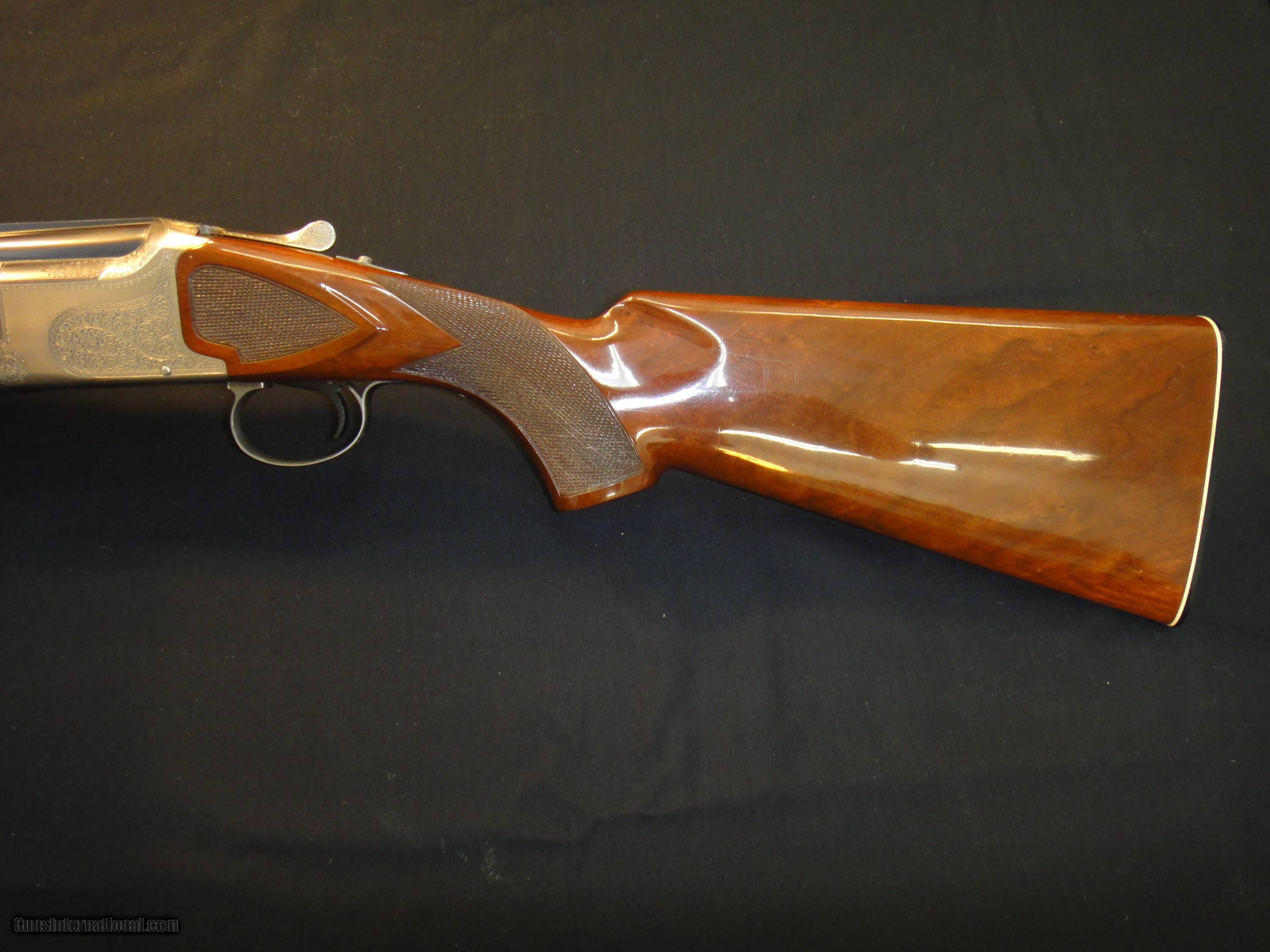 Description: Ready to buy yourself a nice Christmas present? This may be it...Winchester 101 Pigeon Grade Skeet. 12 gauge, 27" barrels, chokes fixed skeet and skeet. This Japanese made gun has been fired very little. The action is still stiff and tight like new. Barely broke in. Bores shine like mirrors. Checkering is sharp. Wood is beautiful, and coin finished frame is immaculate. Great engraving. 14 1/4" LOP, Checkered trigger retains 99% of its original factory bluing. Ejectors and single selective trigger function flawlessly. Barrels wear dual white beads on the ventilated rib. Wood grain is stunning. Barrels and wood show minor handling and rack marks. No significant wear on any finishes. Buyer contributes $50 toward cost of insured USPS ground shipping. 3 day inspection period runs from time of delivery to your FFL, and inspection period ends upon removal of gun from your FFL's shop. Feel free to ask any questions. More pics and cell phone video available upon request. Shotgun Gauge: 12 Gauge Price: $1,100.00 Contact Seller |
