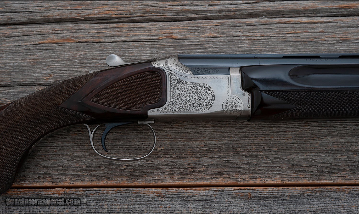 Description: Winchester - Pigeon Grade - 20 ga - Item Number: WINPK260528 Shotgun type: O&U Action: Boxlock Ejectors: Yes Trigger: Single Grip: Rounded Pistol Grip Forend: Checkered Lop: 14 " Pad thickness: " Type of butt: Factory Drop comb: 1 1/2 " Drop heel: 2 5/8 " Cast amount: 1/8 " Cast: OFF Weight: 6 lbs, 8 oz Manufactured in: Japan Manufacture Year:Finish: Coin Overall condition: Very Good Stock condition: Very Good Metal condition: Very Good Stock: Original finish Metal: Original finish Type of Case: none Extra barrels: 0 Barrel info: Gauge: 20 ga Chamber: 3 " Length: 26 " Chokes: IC/M Rib type: Ventilated Comments : Clean gun with a few light blemishes. SG-139 SOLD |
