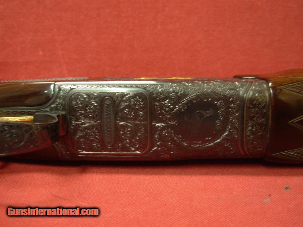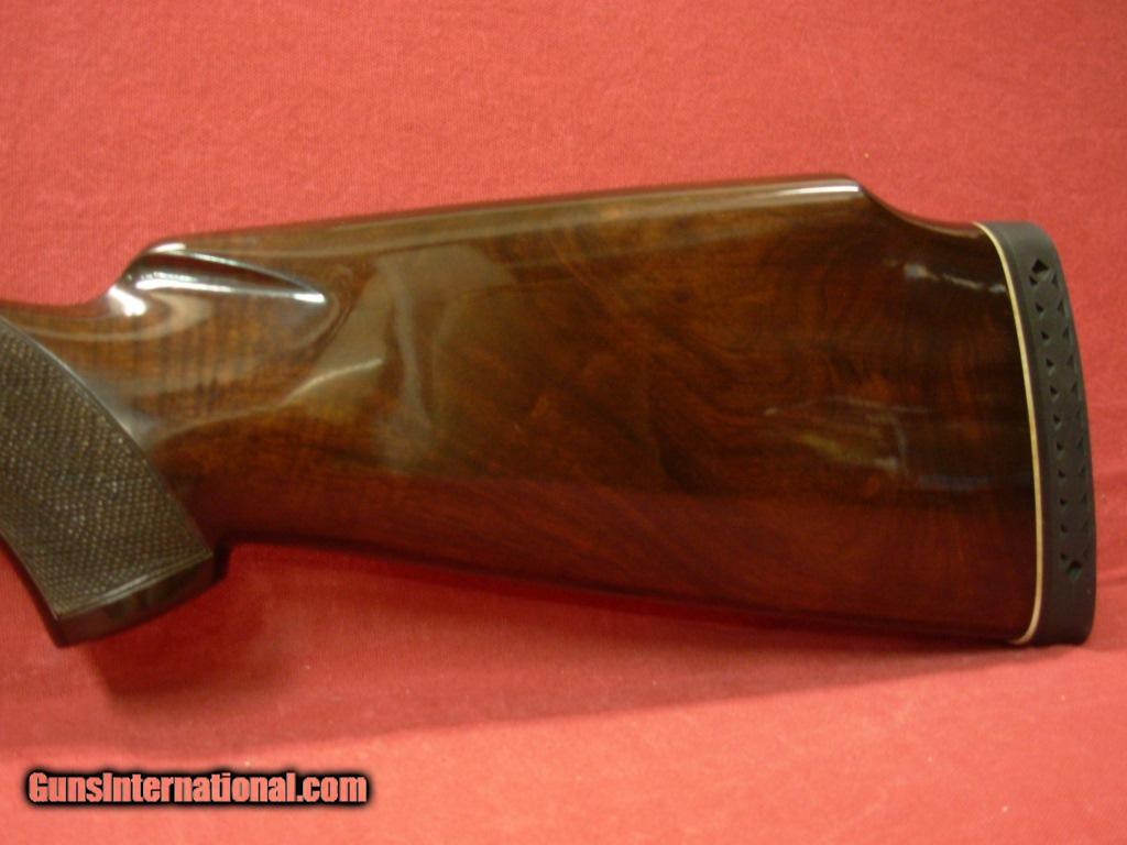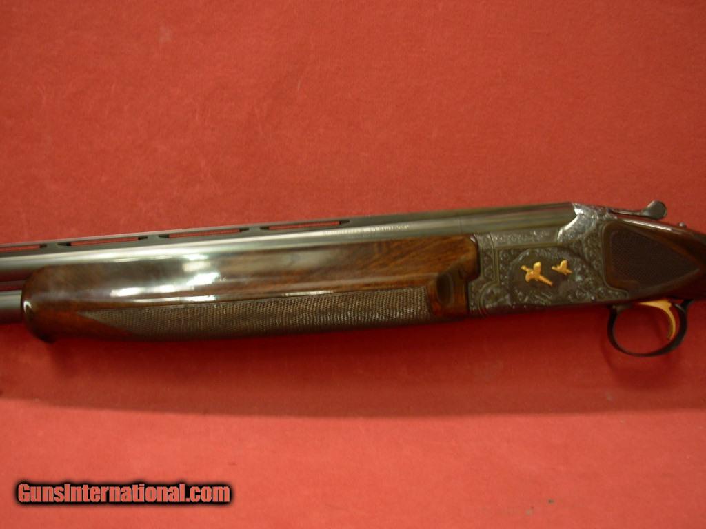Description: 12ga, serial number PK3855XX. Made in Japan. 30" barrels. VR, marked Pigeon Grade. Overall excellent condition, shows very minor use. Monte Carlo stock with Winchester recoil pad. Nice grain, shows minor handling marks. Checkered forend and pistol grip. Receiver heavily engraved with gold inlay game scene. Silver border inlay present but tarnished. Extra wide rib, dual white beads. Bottom of receiver engraved with Winchester pigeon in oval, Winchester in oval with high percentage factory open scroll engraving. Fixed choke, upper barrel full, bottom barrel improved modified. Bores excellent. Mechanically excellent, tight lock-up. More photos on request. Sold AS-IS, NO RETURNS. Please add $50.00 for shipping and insurance. SOLD |