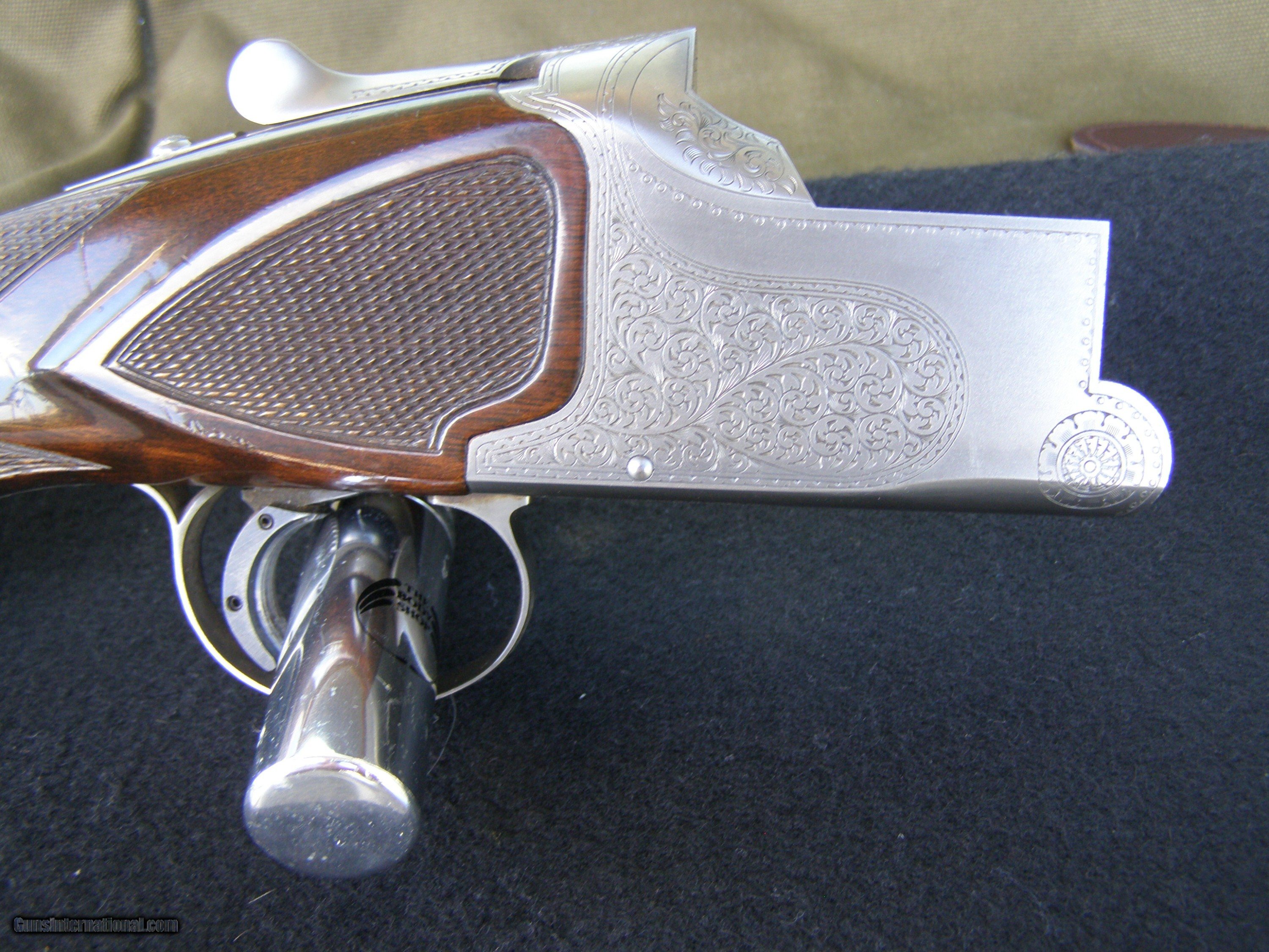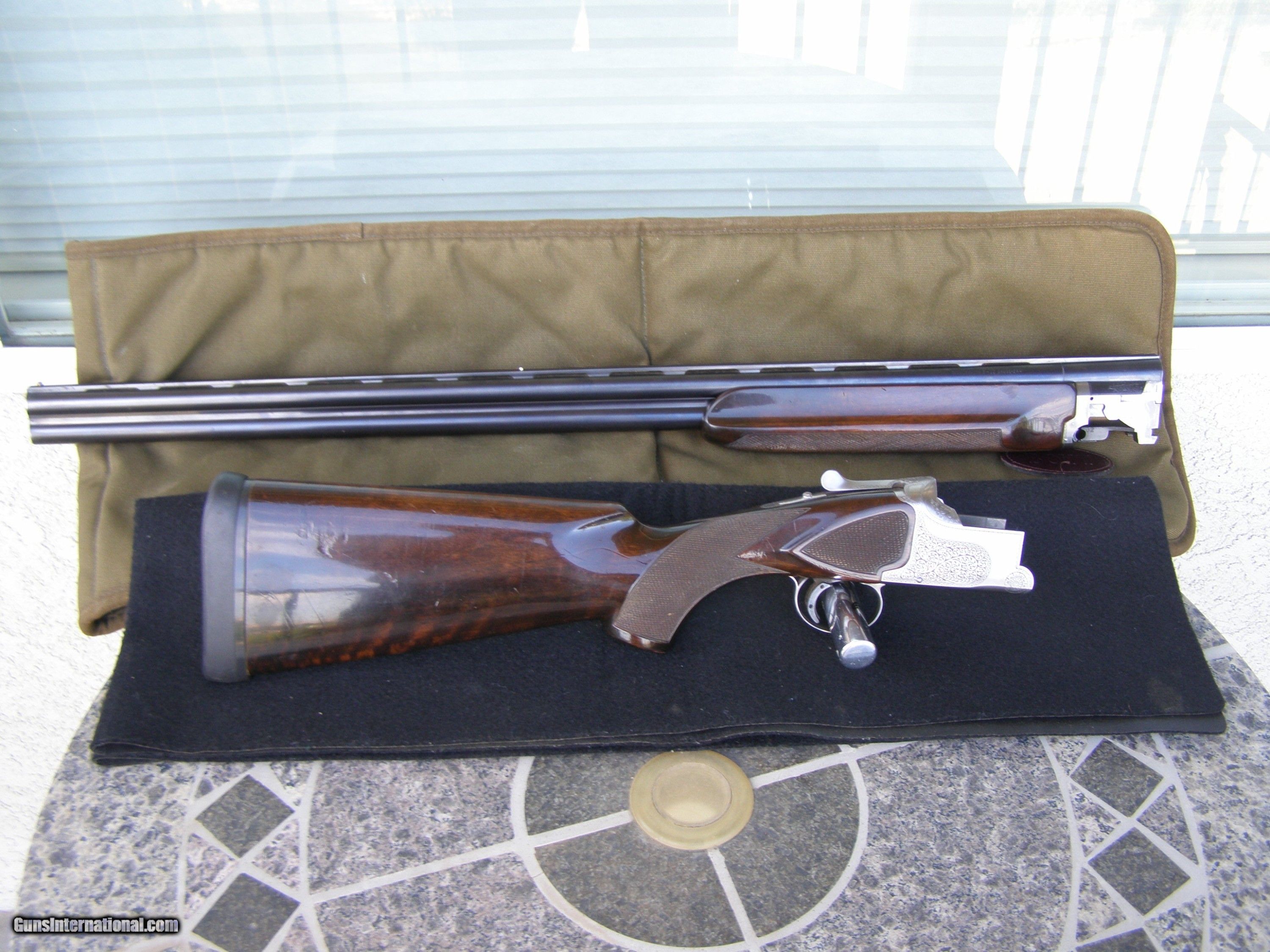 Description: WINCHESTER 101 PIGEON TRAP 12 GA. O/U shotgun. Thirty two (32) inch bbls., IM/FULL chokes. 14 3/8 " LOP. Kick EEZ pad. Trigger shoe. Snap caps. Weight in buttstock. Good condition. Please add $65 for shipping & insurance to your lower 48 FFL dealer. SOLD |