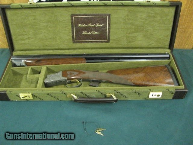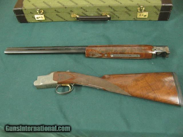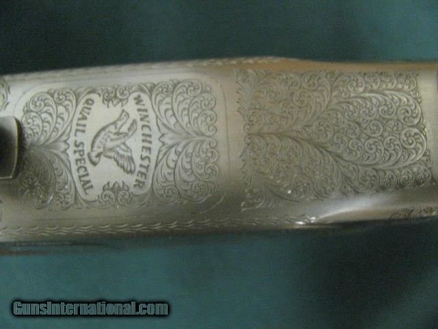 Description: 7218 Winchester 101 Quail Special BABY FRAME, 28 gauge 26 inch barrels 3 winchokes(rare) ic mod full, STRAIGHT GRIP only 500 mfg this is # 320.AAA++FANCY HEAVILY FIGURED WALNUT. vent rib single select trigger quail/dogs engraved coin silver receiver.fleur-des-lies checkered side panels, Winchester case Winchester pamphlet, NONER FINER SOLD Shotgun Gauge: 28 Gauge |