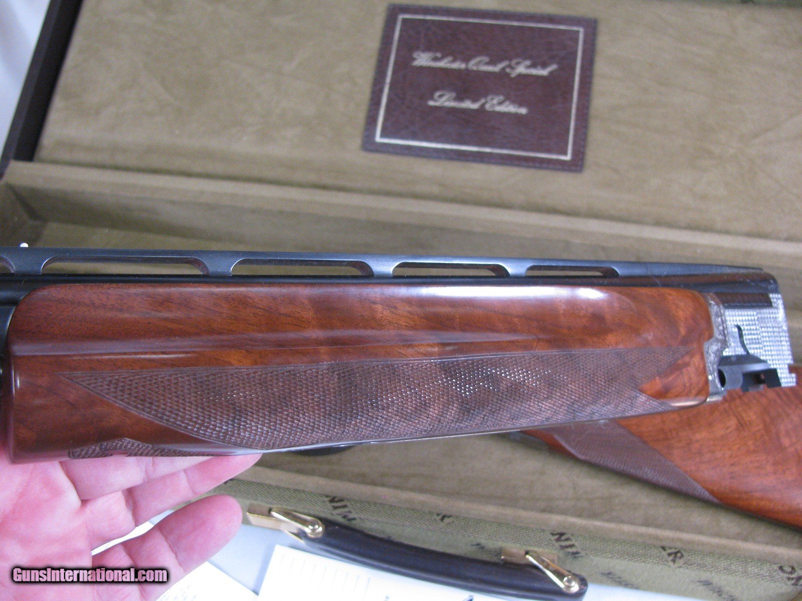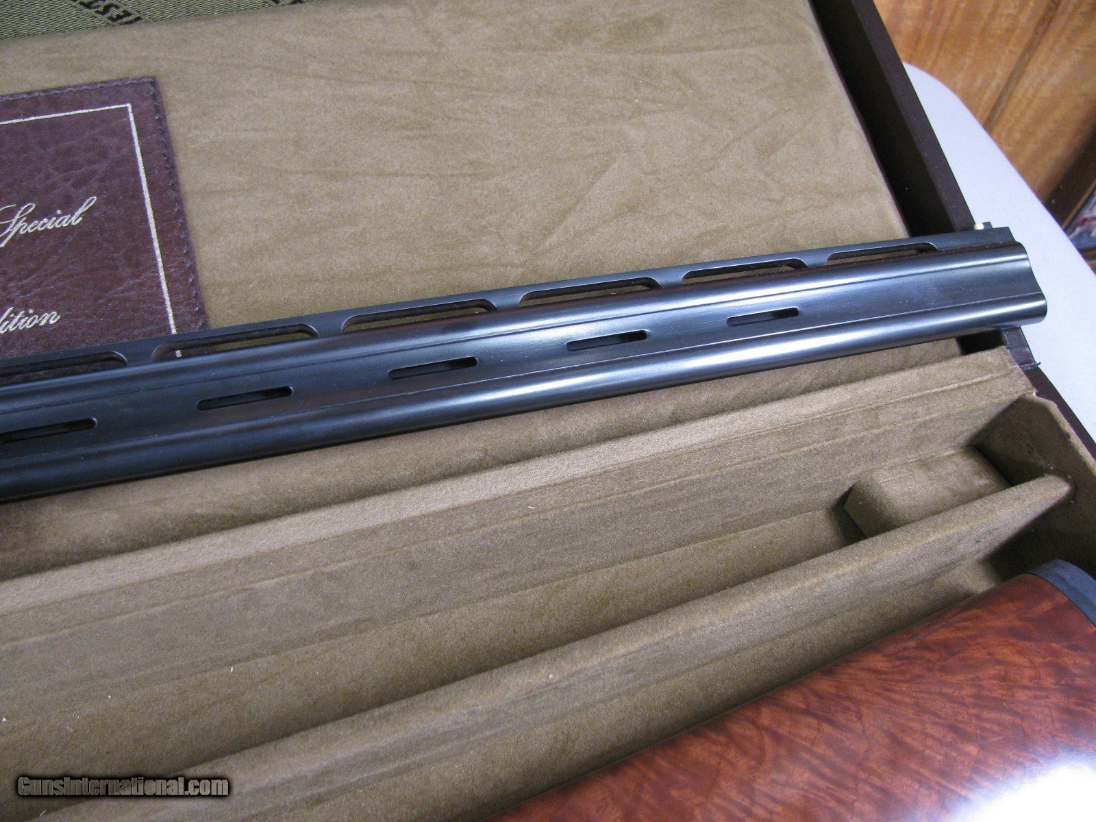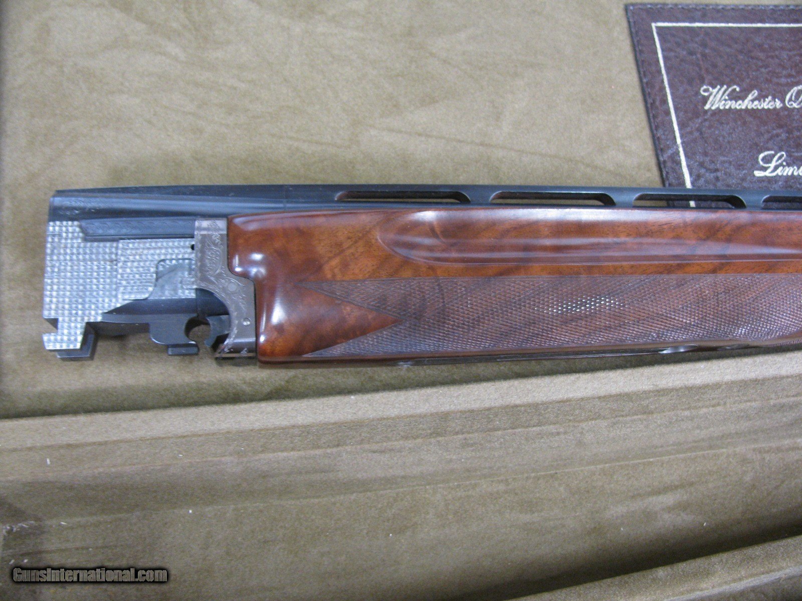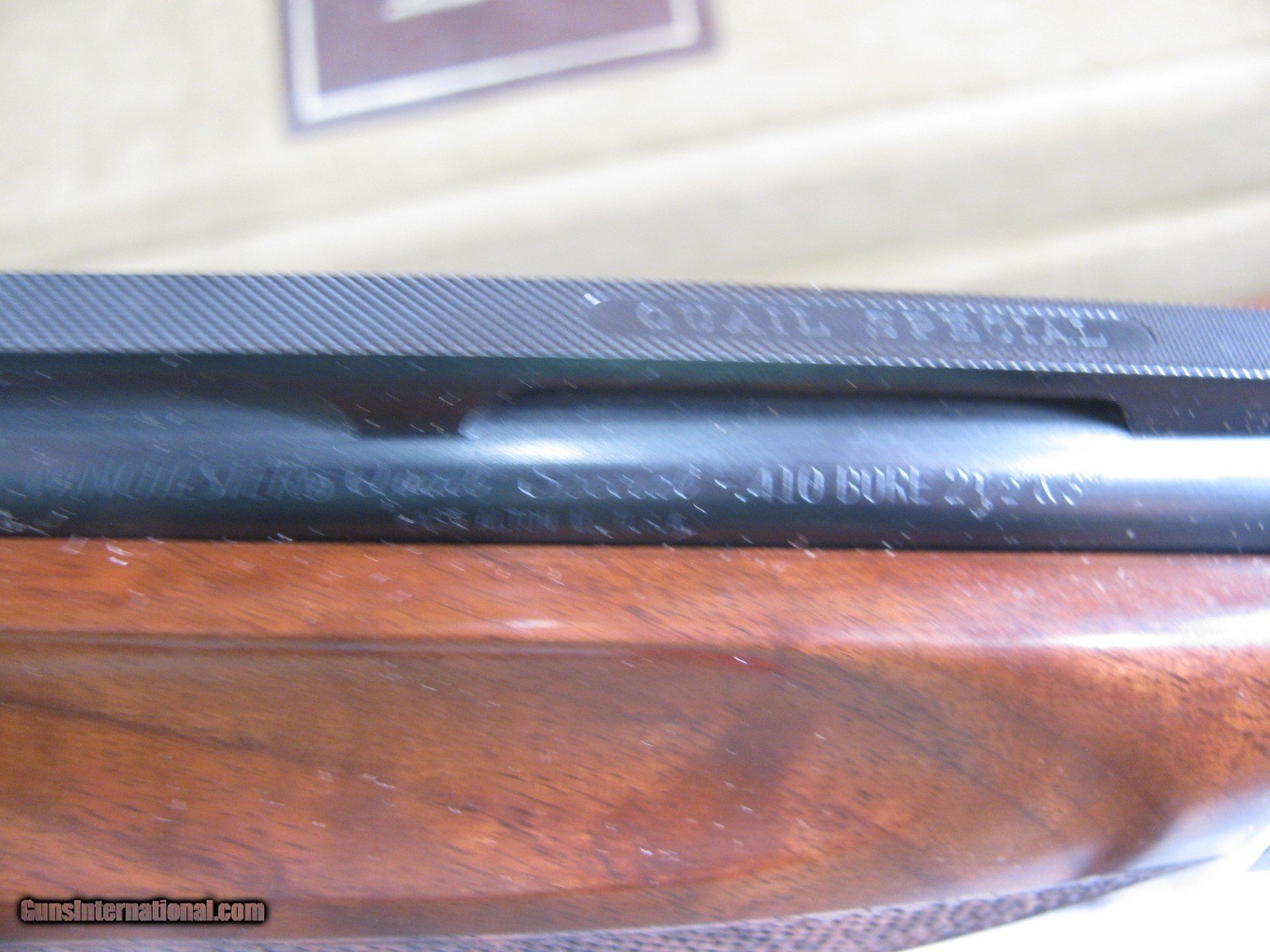 Description: 7853 Winchester 101 QUAIL SPECIAL 410 gauge 26 barrels mod/full, AS NEW IN CORRECT Case and with Matching correct serialized box!, ALL PAPERWORK is there is well, a true time capsule and collectors gun, AAA++Fancy FEATHERCROTCH WALNUT, vent rib, ejectors, Winchester pad, 99.9% condition. bird dog and 4 quail coin silver engraved receiver. none finer this is #460 out of 500. 6 POUNDS, LITE QUICK AND FAST, AS NEW IN CASE NONE FINER SOLD Shotgun Gauge: .410 Gauge |