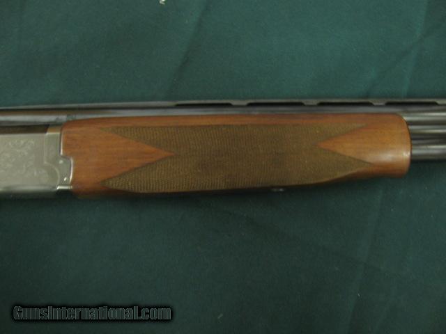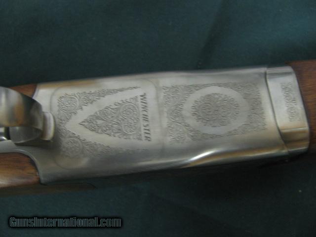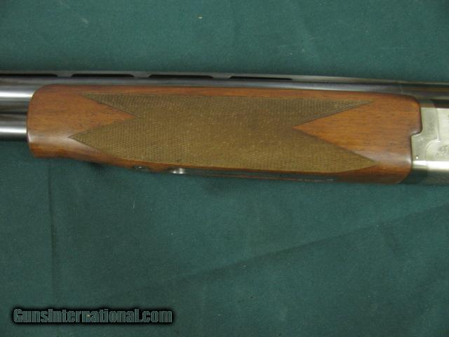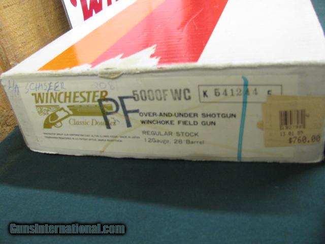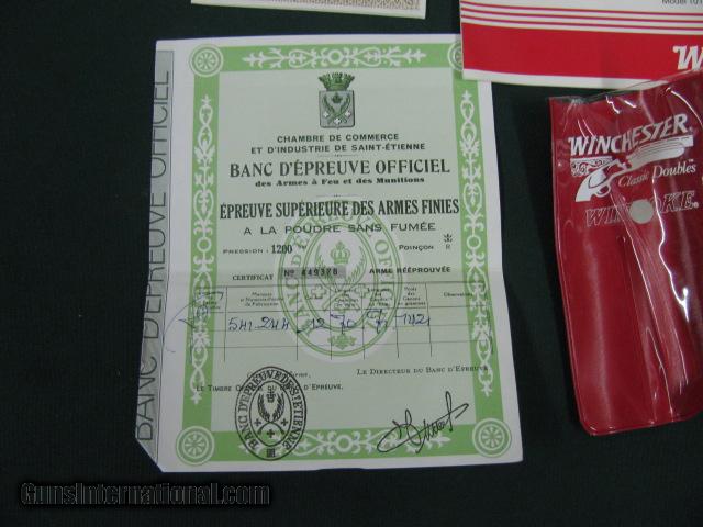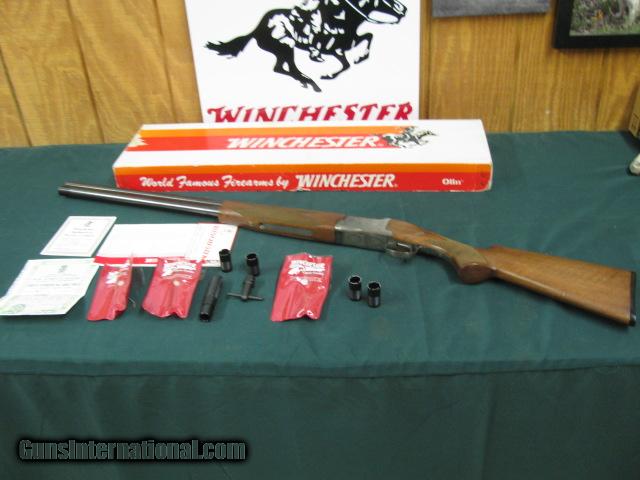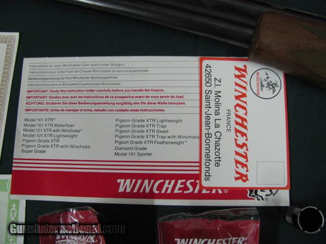 Description: 5164 Winchester 5000 European model designated 101, 12 gauge 28bls Winchokes,sk ic im, mod/full xf,wrench, 3 pouches,1987 mfg. thread cleaner, 2 pieces of French Winchester paper work,CORRECT WINCHESTER SERIALIZED BOX, tapered 8mm to 6mm wide vent rib, 2 3/4" chambers, brass front bead, chromed .735 bores, standard forcing cones. Slim semi-schnabel forend. Moderately engraved silver receiver, selective mechanical trigger. Flat knob,light tiger striped stock, 14 1/2" pull over original buttplate, 1 3/8 x 2 3/16 cast-on, original oil finish.DONT MISS THIS ONE SOLD |