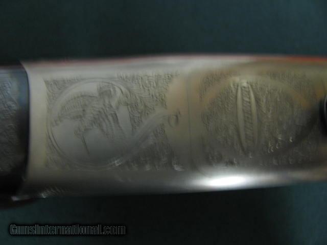 Description: 6224 Winchester 101 Lightweight 20 gauge 27 inch barrels, 2 screw in chokes sk/ic,more chokes for $30, coin silver receiver,quail engraved,pistol grip, all original, 98-99% AS NEW IN BOX. CORRECT SERIALIZED BOX. very hard to find SOLD |