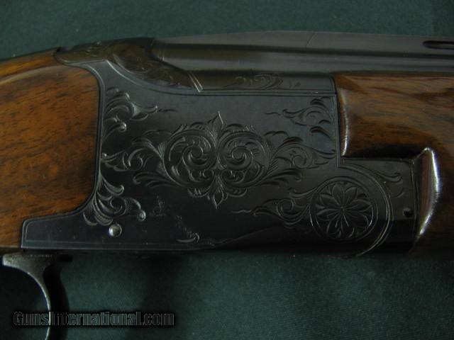 Description: 6633 Winchester field 101 20 gauge 28 inch barrels, mod/full, 2 3/4& 3inch chambers, vent rib pistol grip with cap, Winchester butt plate, ejectors, all original,blue receiver with rose/scroll, opens closes tite, bores brite/shiny,98-99% very excellent condition, all original, a beautiful specimen.--210 602 6360 SOLD |